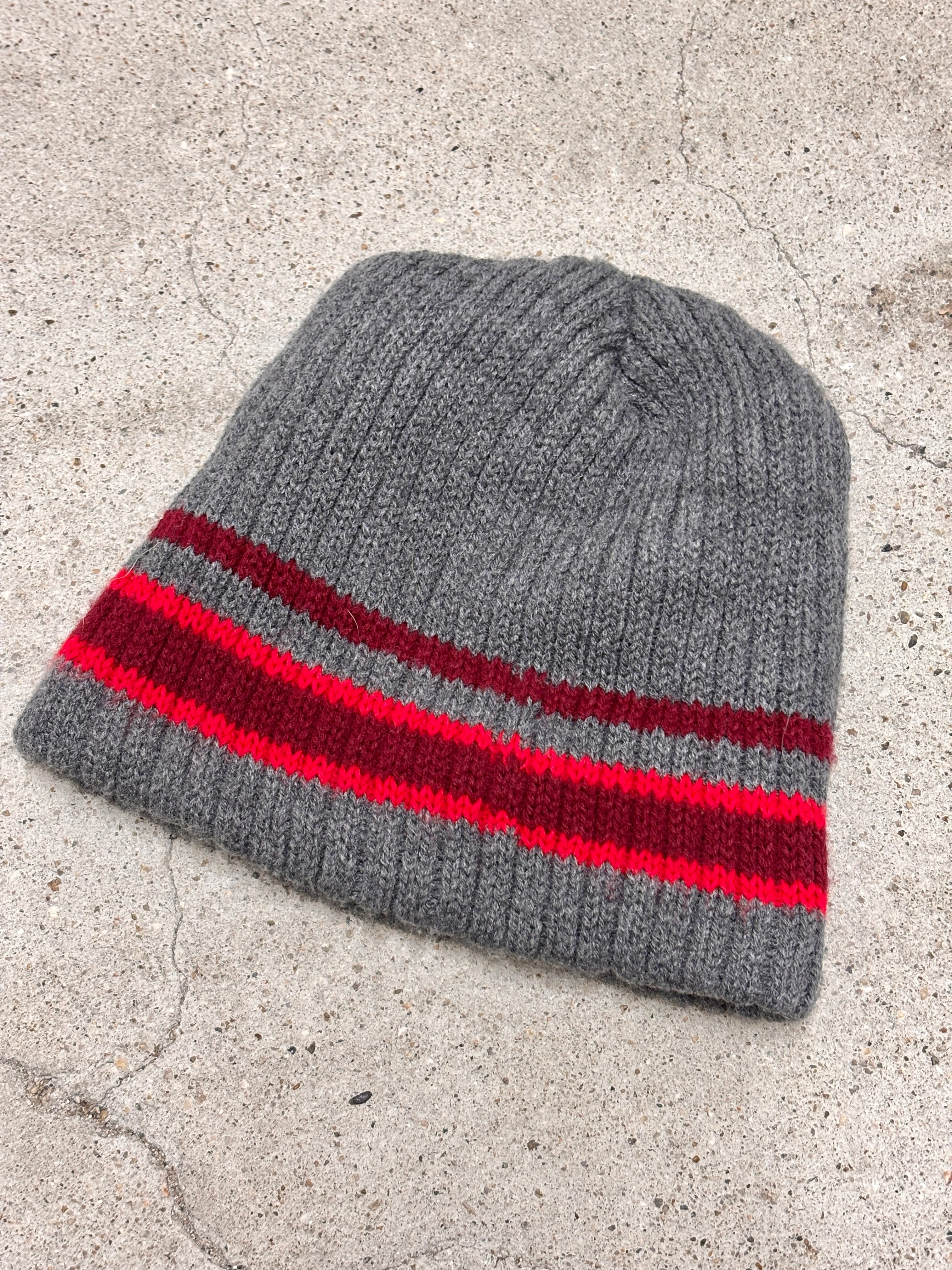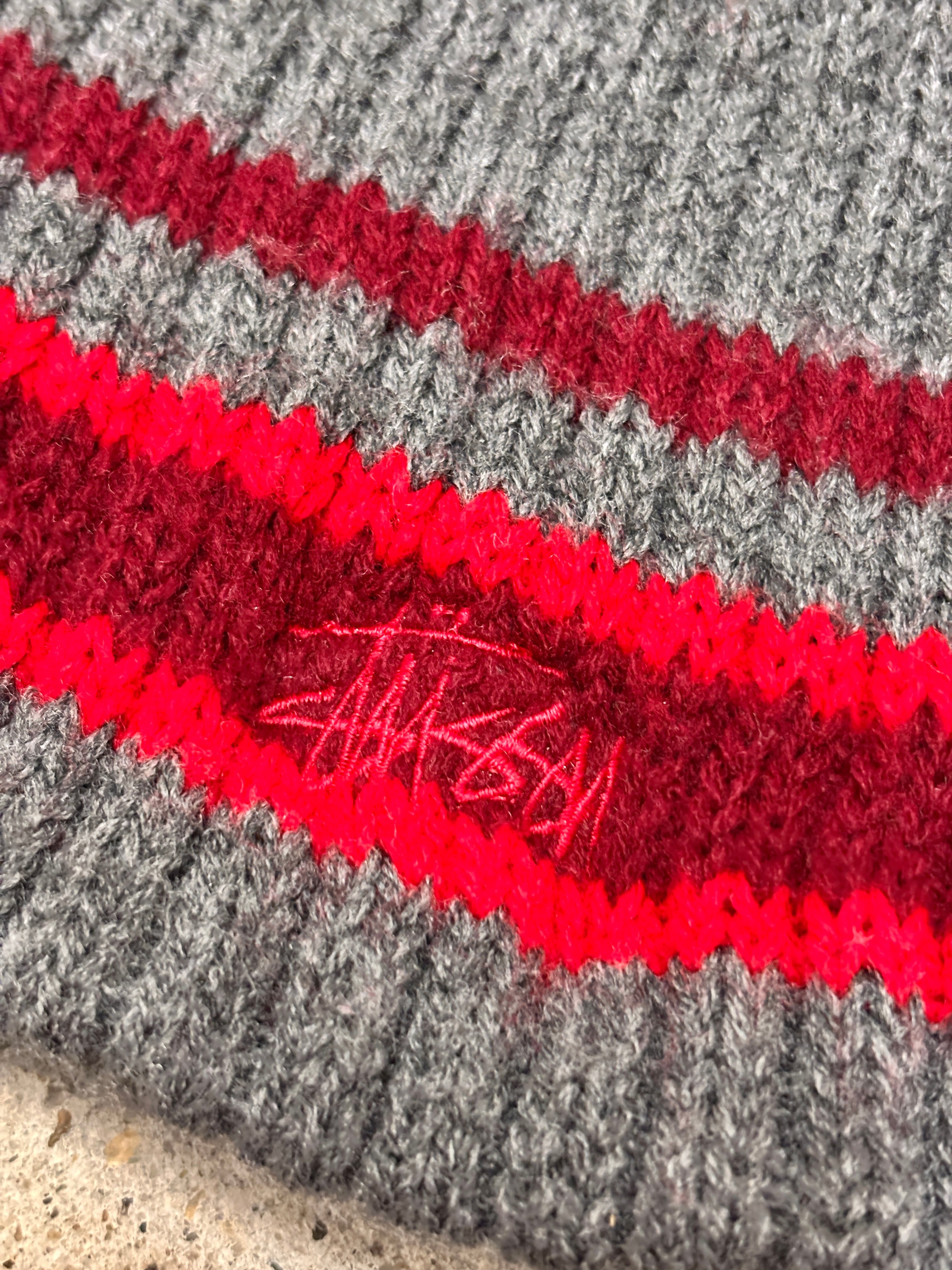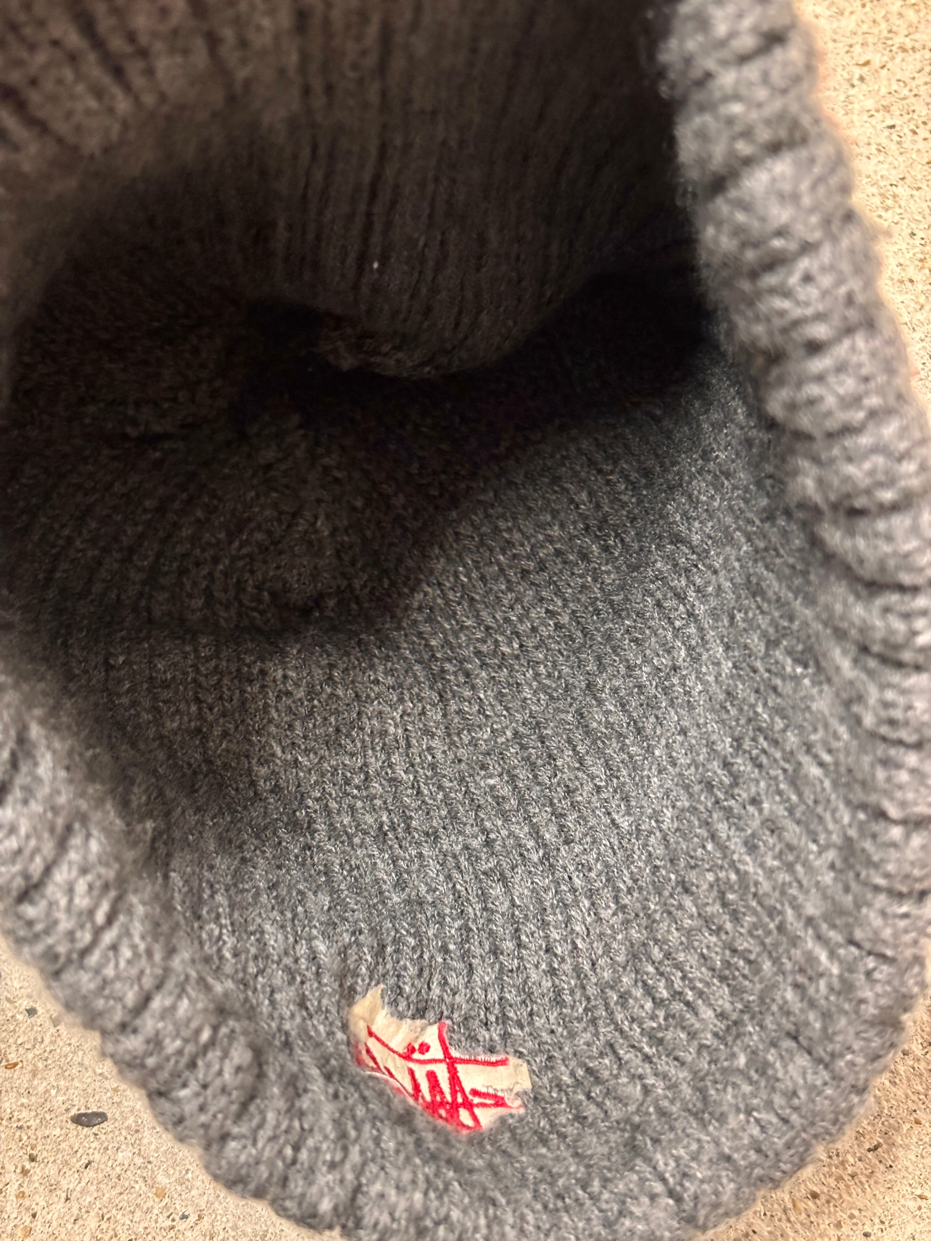 90~00s OLD STUSSY/Logo embroidery Beanie/Free/刺繍ロゴビ-ニ-/ボ-ダ-/ニット帽/グレ-/ステューシー/オ-ルドステューシー