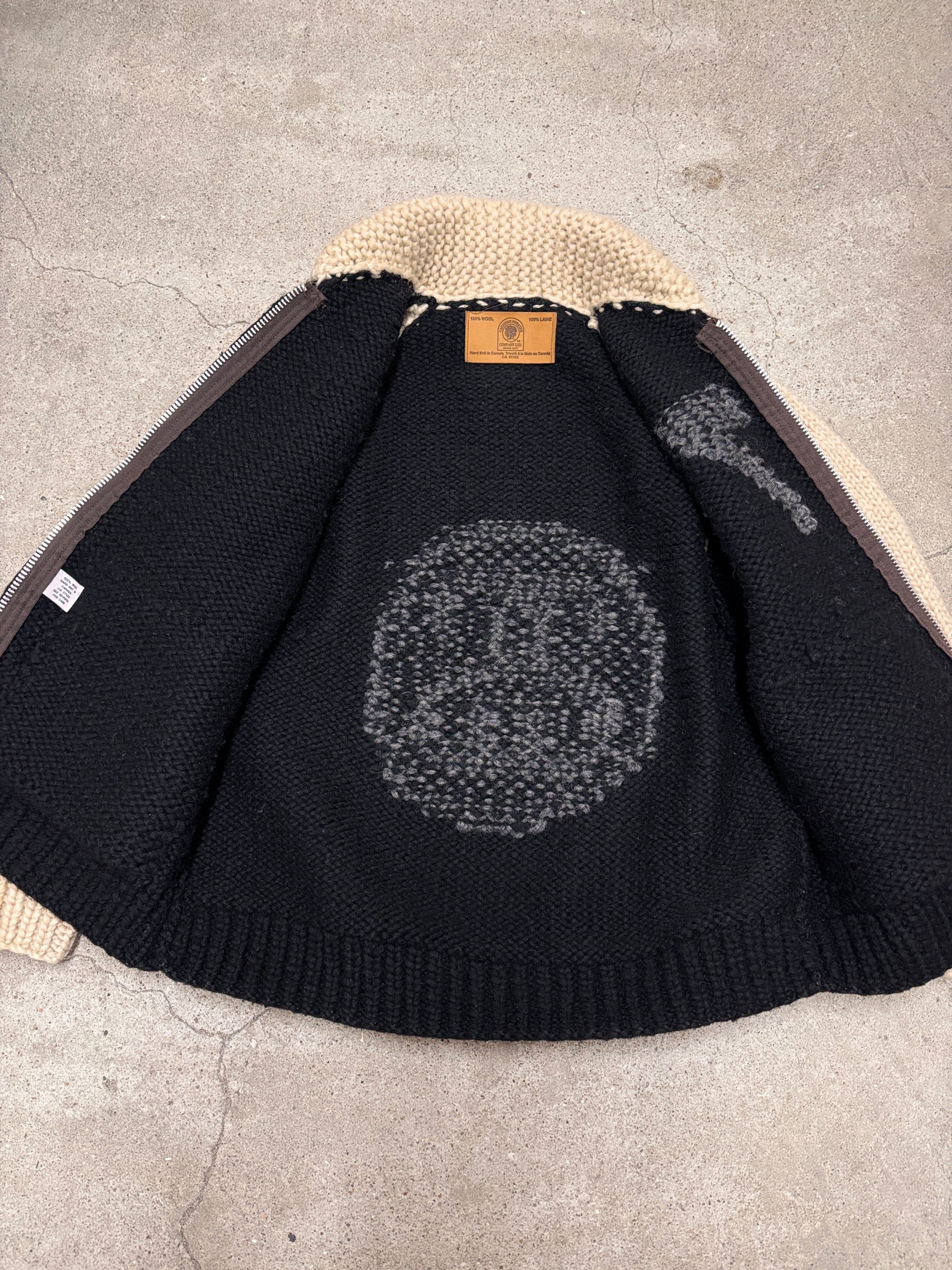 90s OLD STUSSY×CANADIAN SWEATER/Cowichan Sweater/Canada製/M相当/カウチンセ-タ-/カ-ディガン/SSリンクロゴ/ネイビ-/クリ-ム/カナディアンセ-タ-コラボ/ステューシー/オ-ルドステューシー