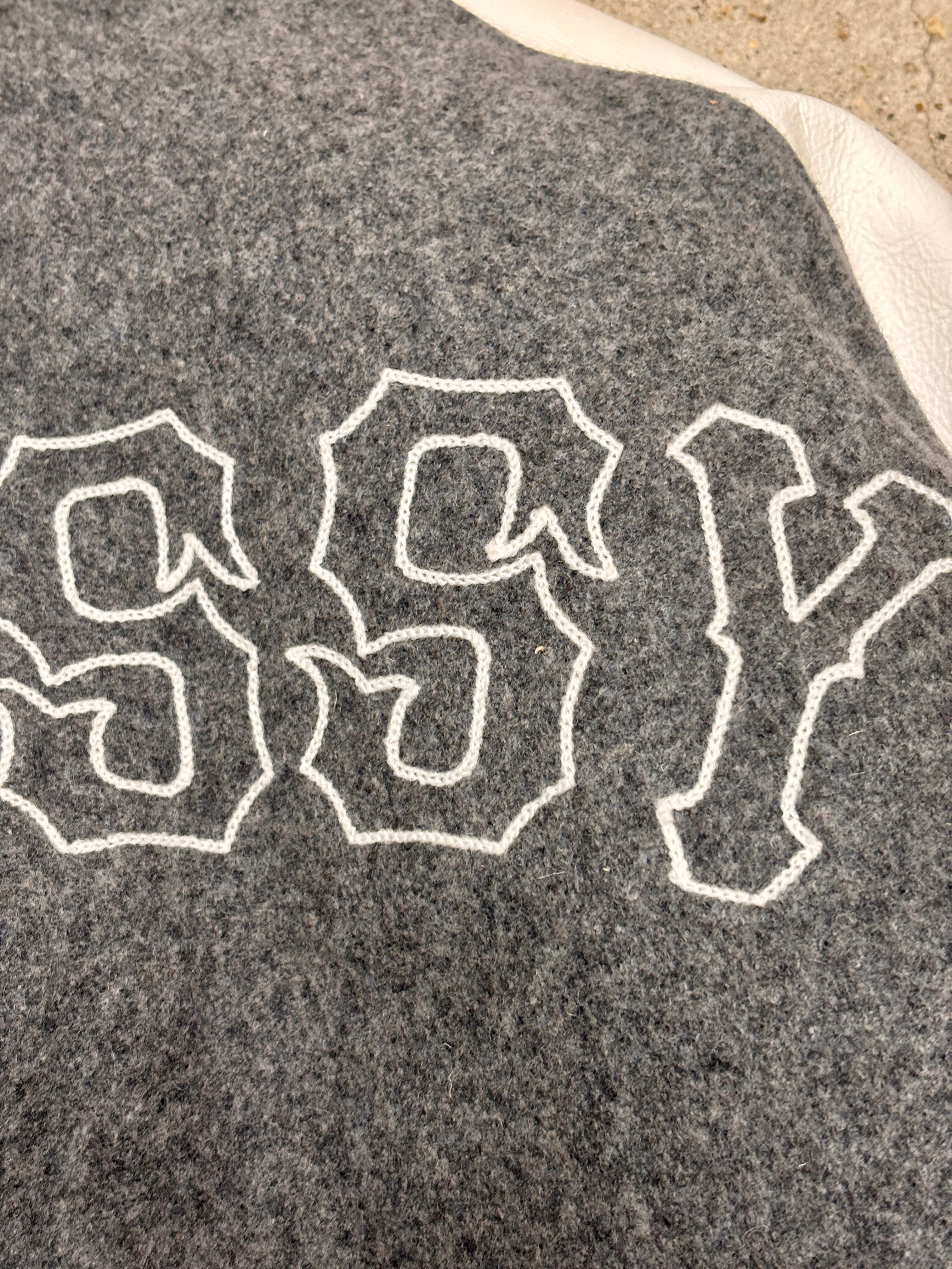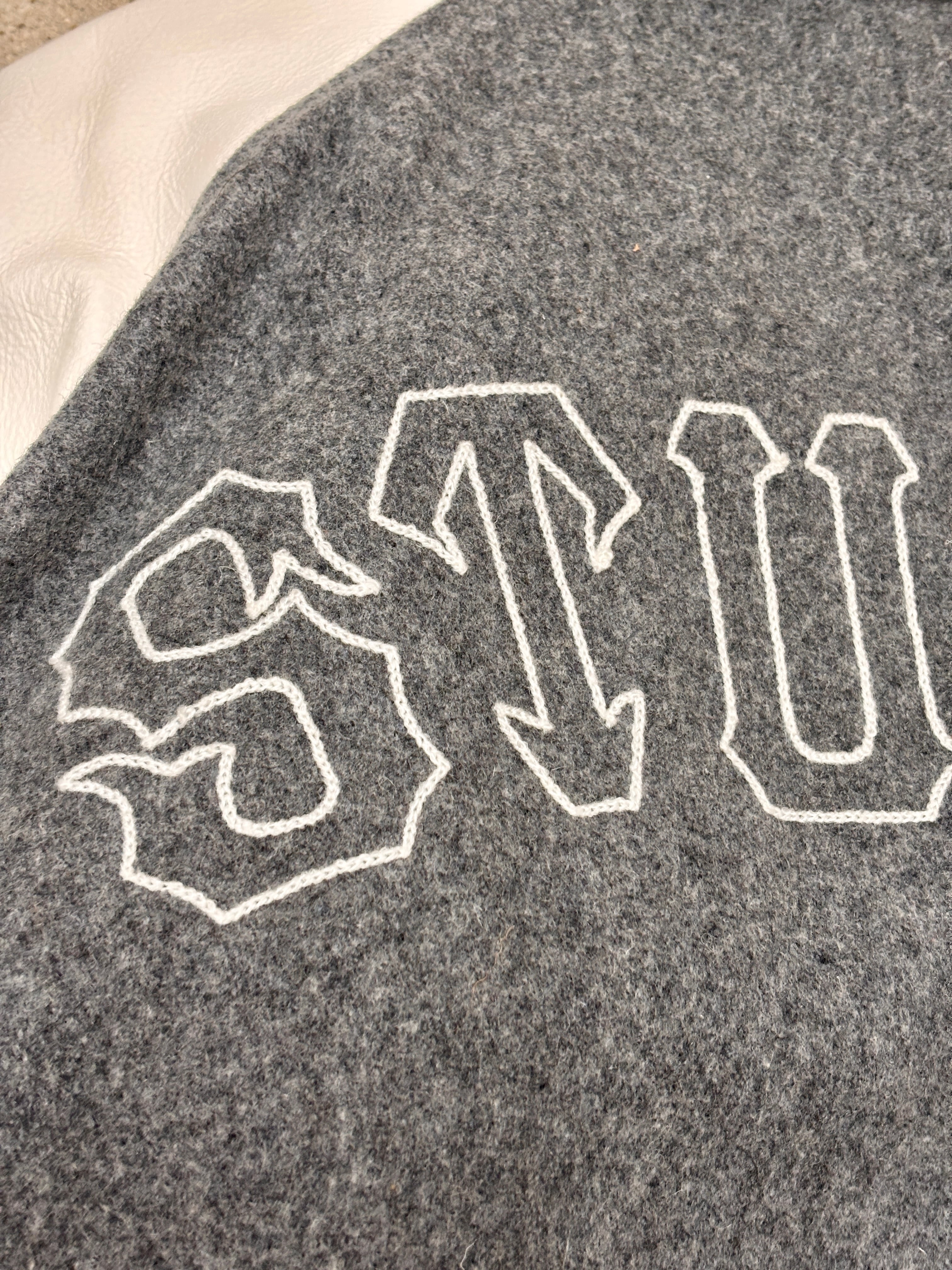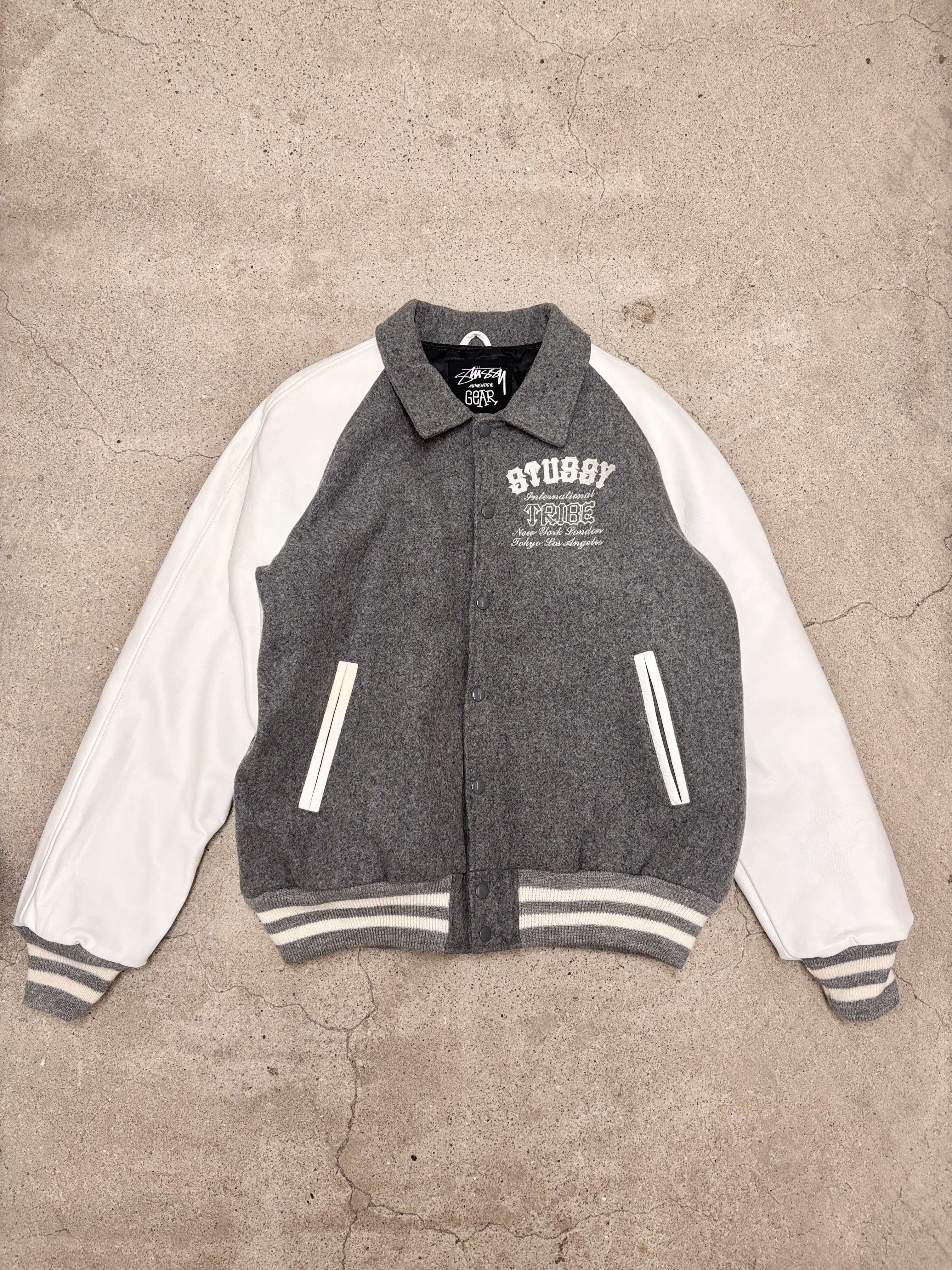 00~10s OLD STUSSY/25th Anniversary Varsity Jacket/USA製/XL/25周年記念/スタジャン/STUSSY TRIBE/グレ-/ホワイト/ステューシー/オ-ルドステューシー/古着/ア―カイブ