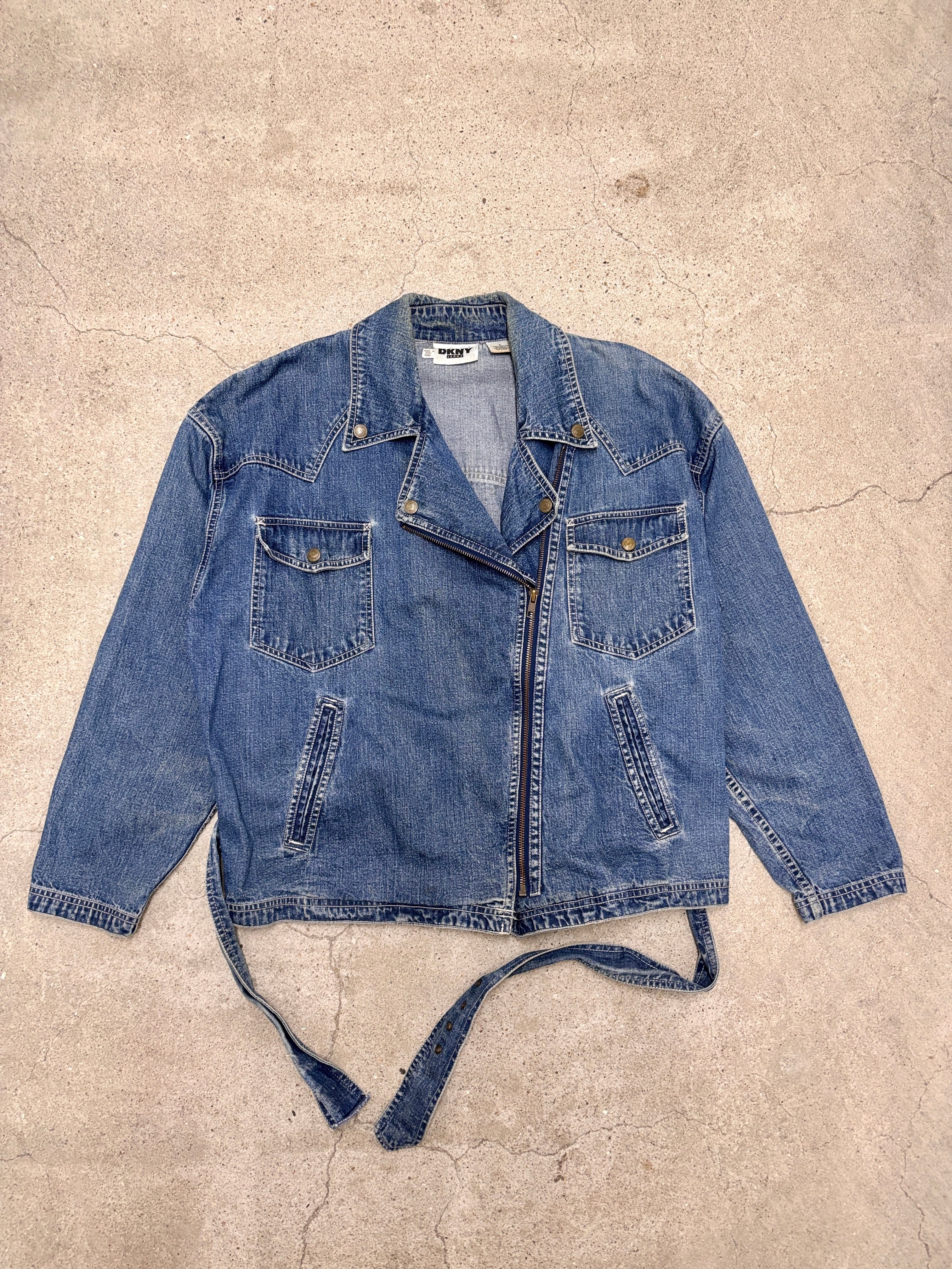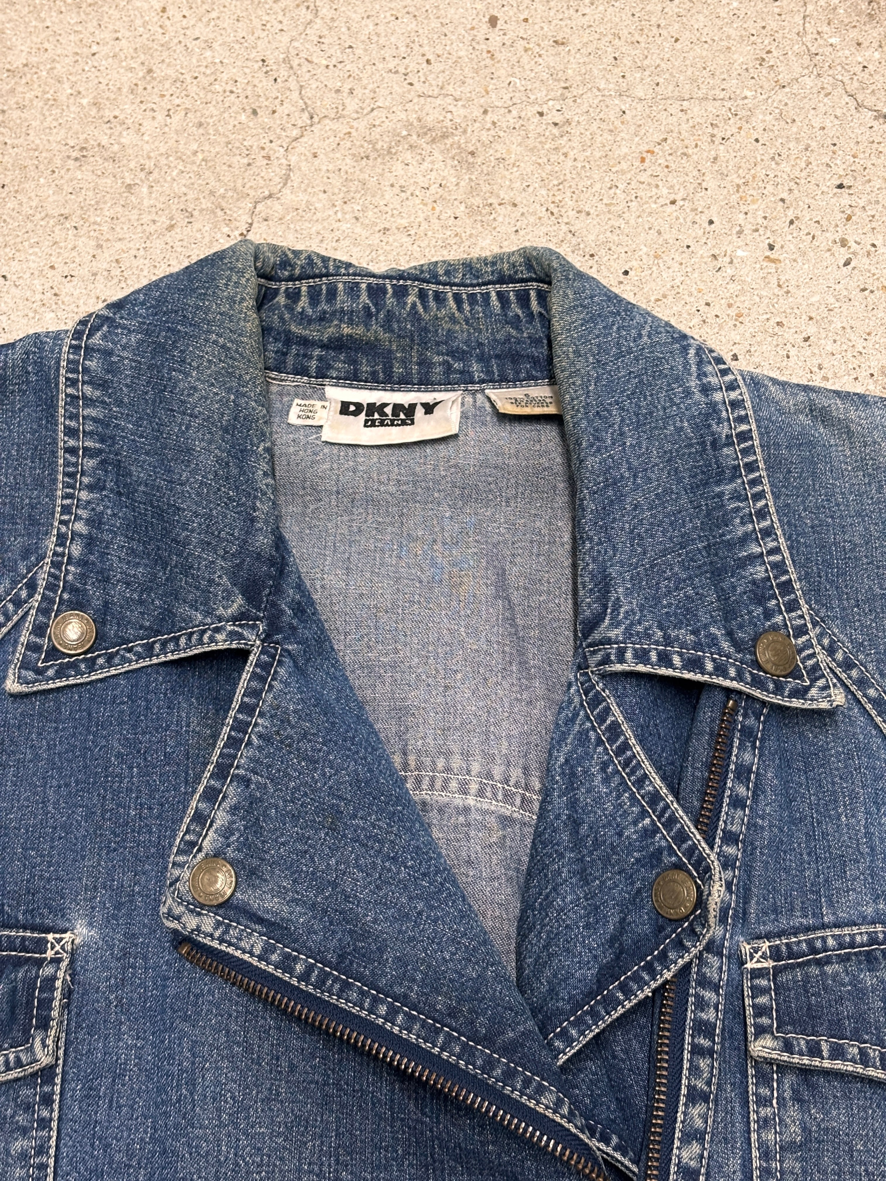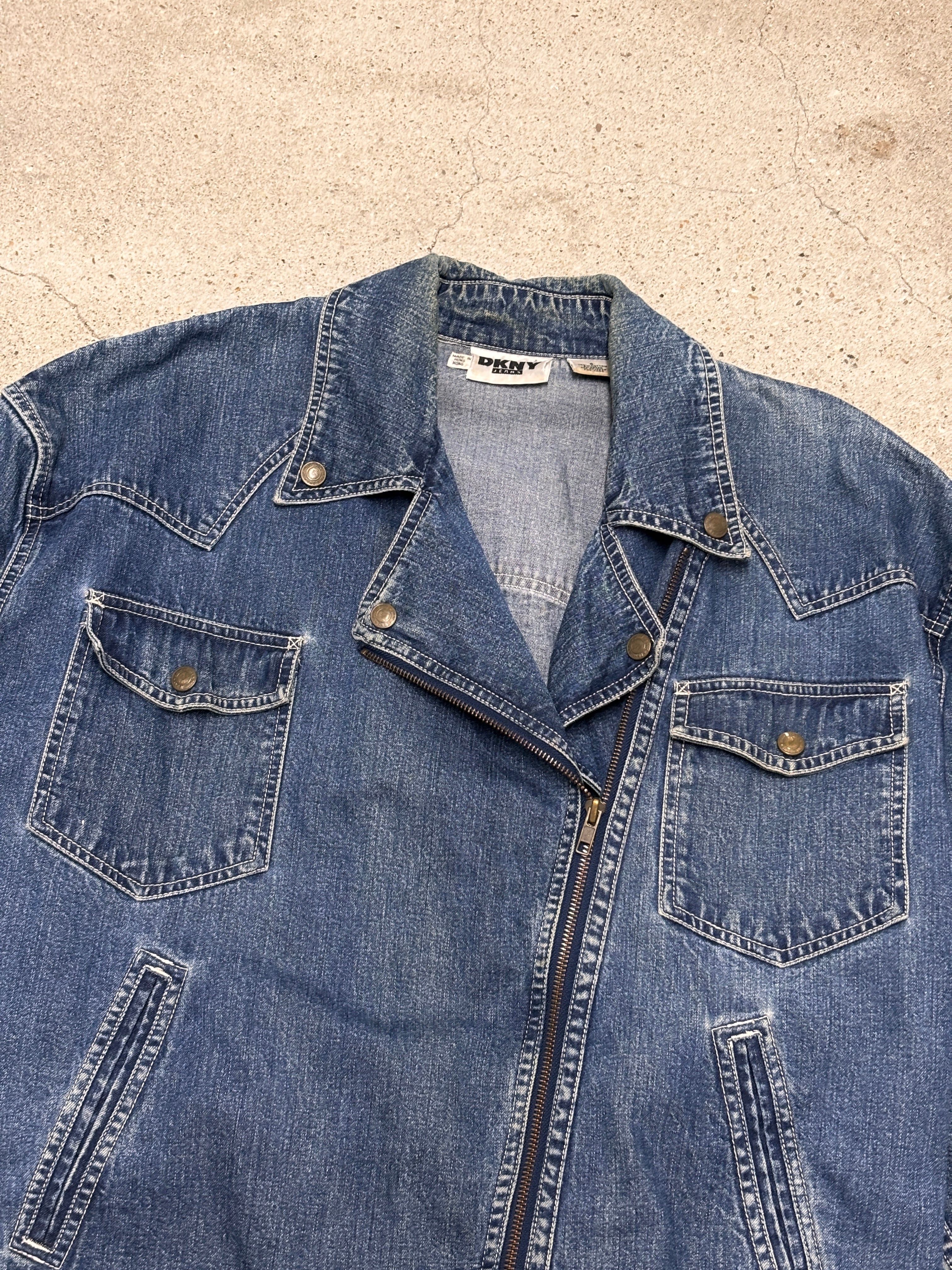 90~00s DKNY/Denim Riders Jacket/6(XL相当)/デニムライダ-スジャケット/インディゴ/ダナキャランニュ-ヨ-ク/古着