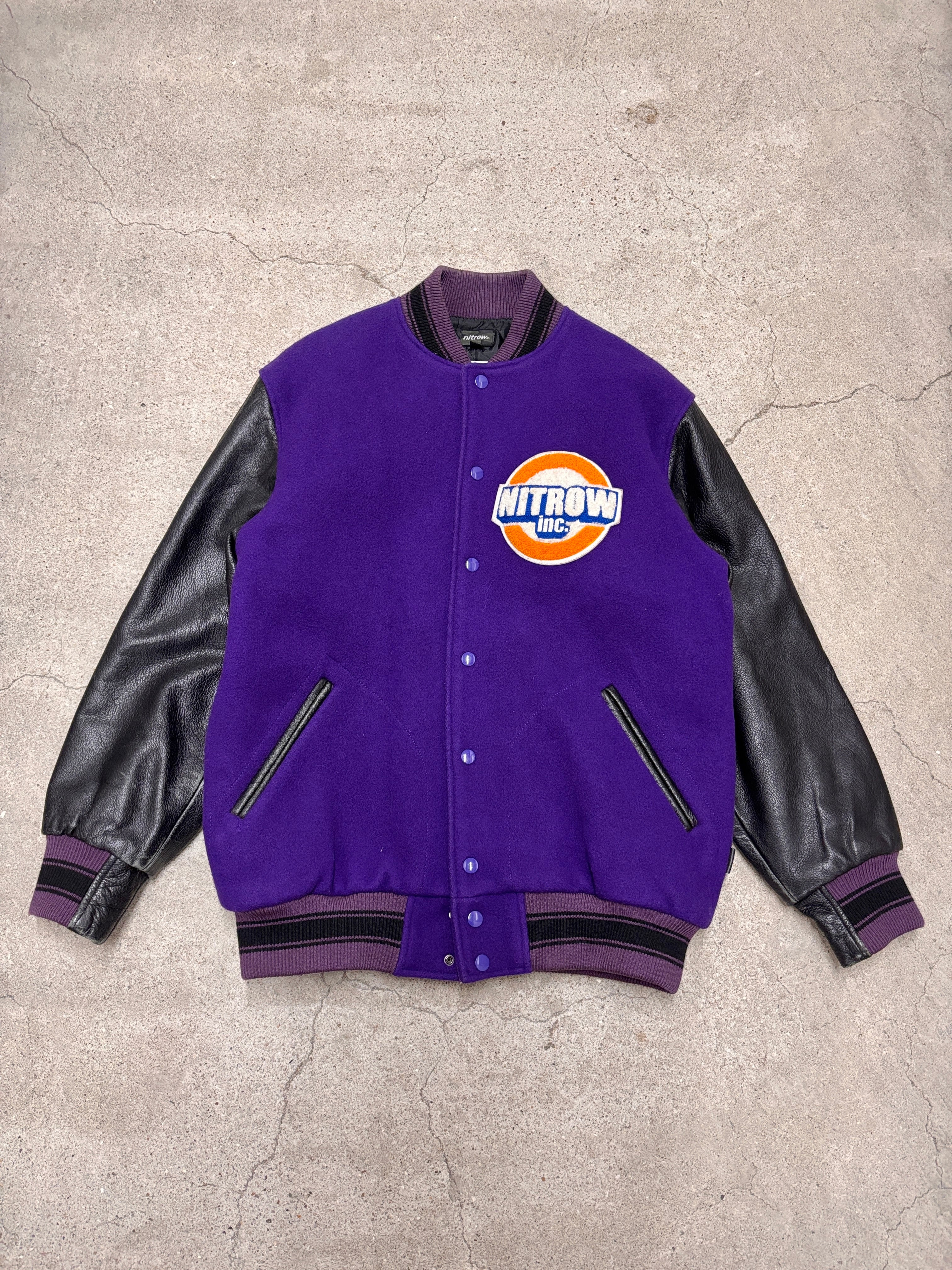 00s NITROW/3rd Anniversary Varsity Jacket/2004年/L/3周年記念スタジャン/ロゴワッペン/WORLD FAMOUS/パープル/ブラック/NITRAID/NITRO MICROPHONE UNDERGROUND/ナイトロウ