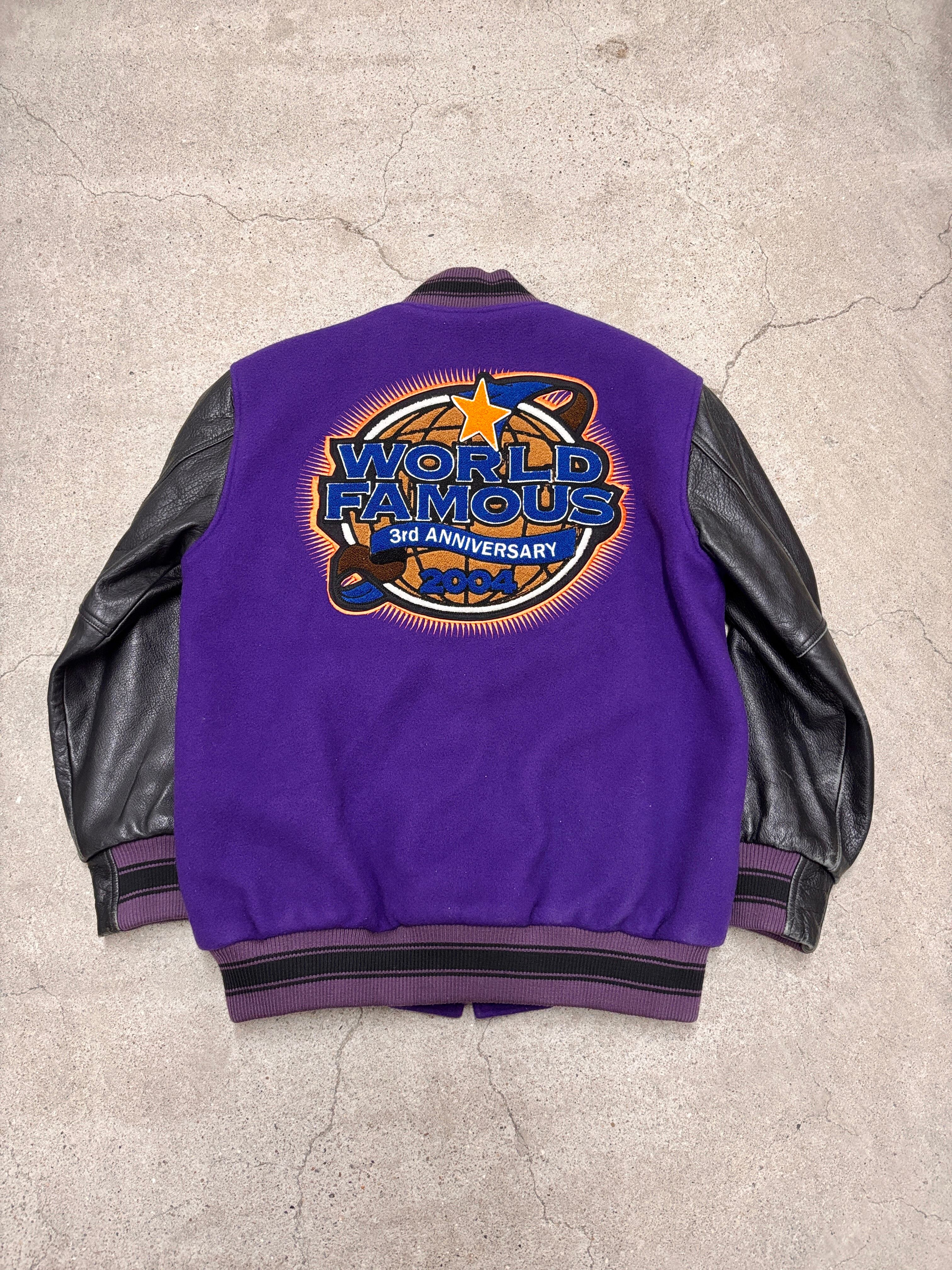 00s NITROW/3rd Anniversary Varsity Jacket/2004年/L/3周年記念スタジャン/ロゴワッペン/WORLD FAMOUS/パープル/ブラック/NITRAID/NITRO MICROPHONE UNDERGROUND/ナイトロウ/古着/ア―カイブ