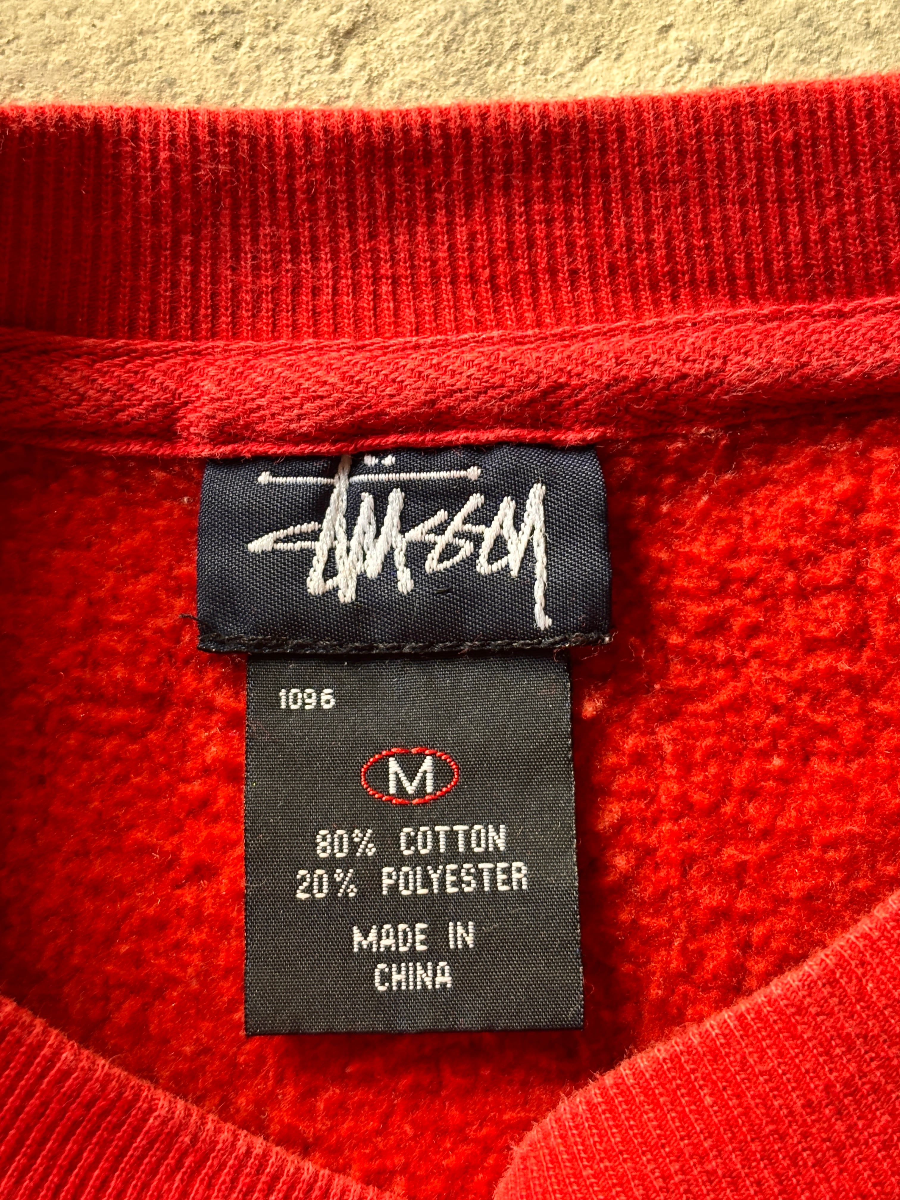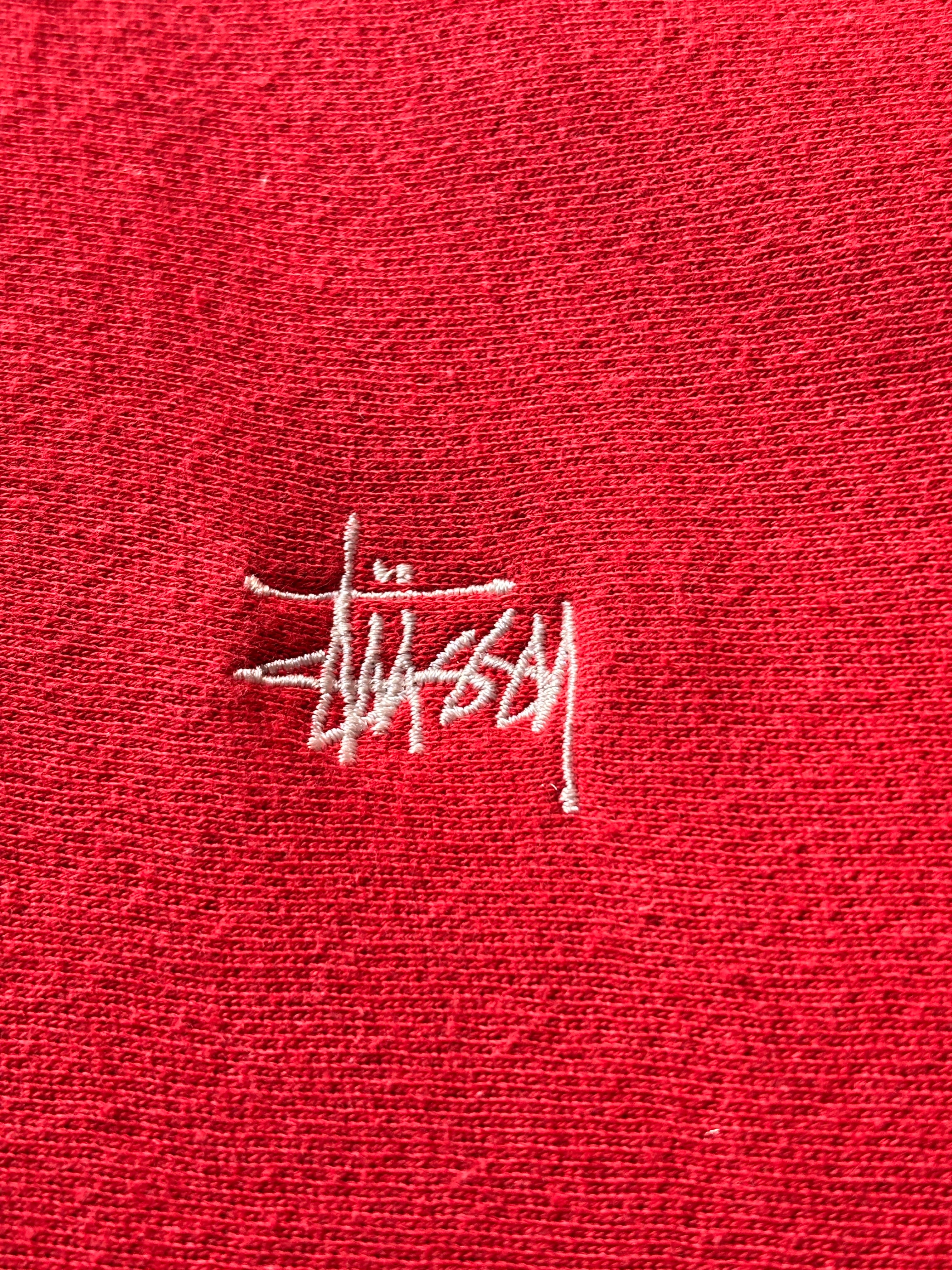 90s OLD STUSSY/Logo embroidery Sweat/紺タグ/1996年/M/刺繍ロゴスウェット/ストックロゴ/丸ポケット/レッド/ステューシー/オ-ルドステューシー/古着/ア―カイブ