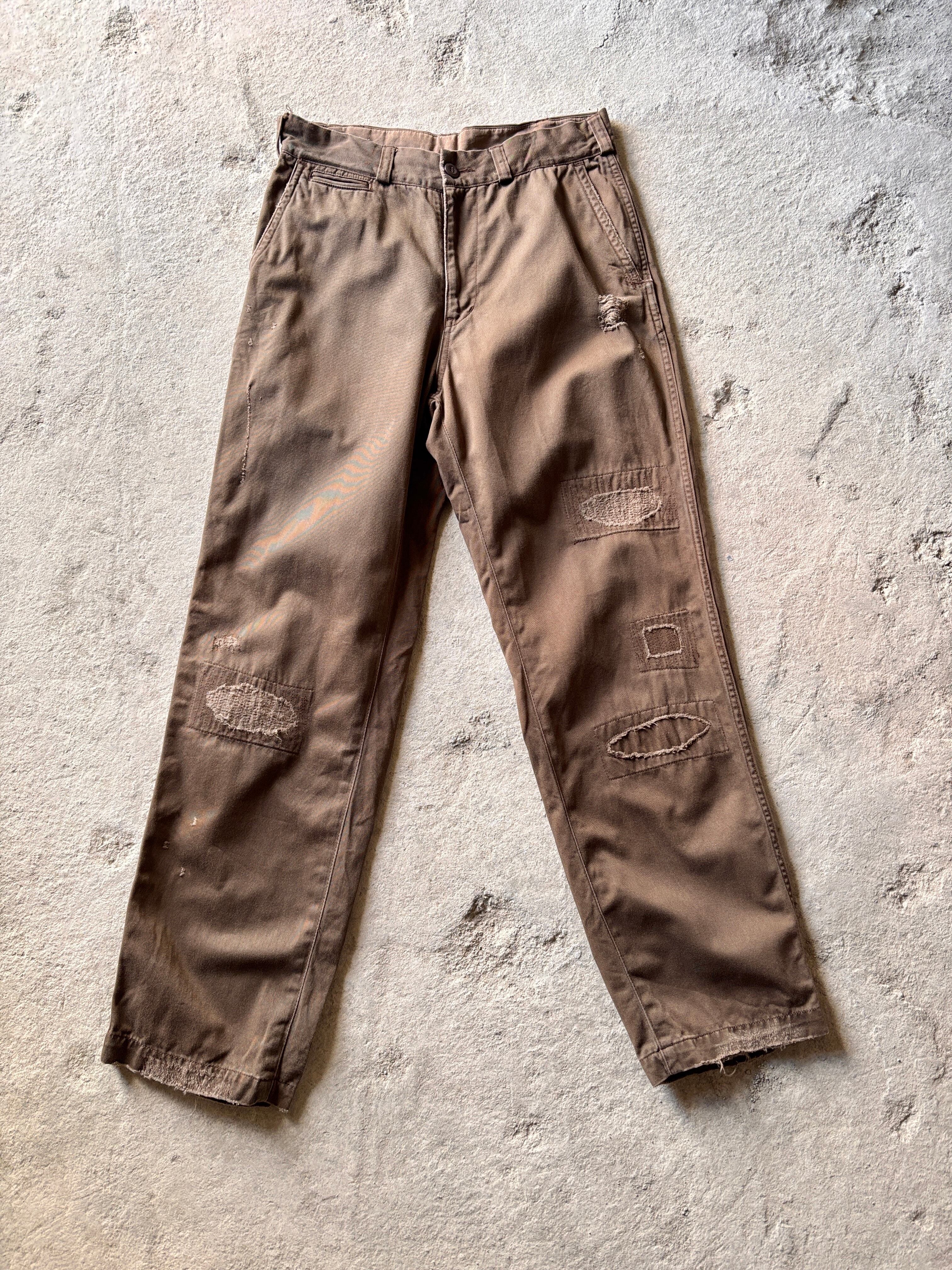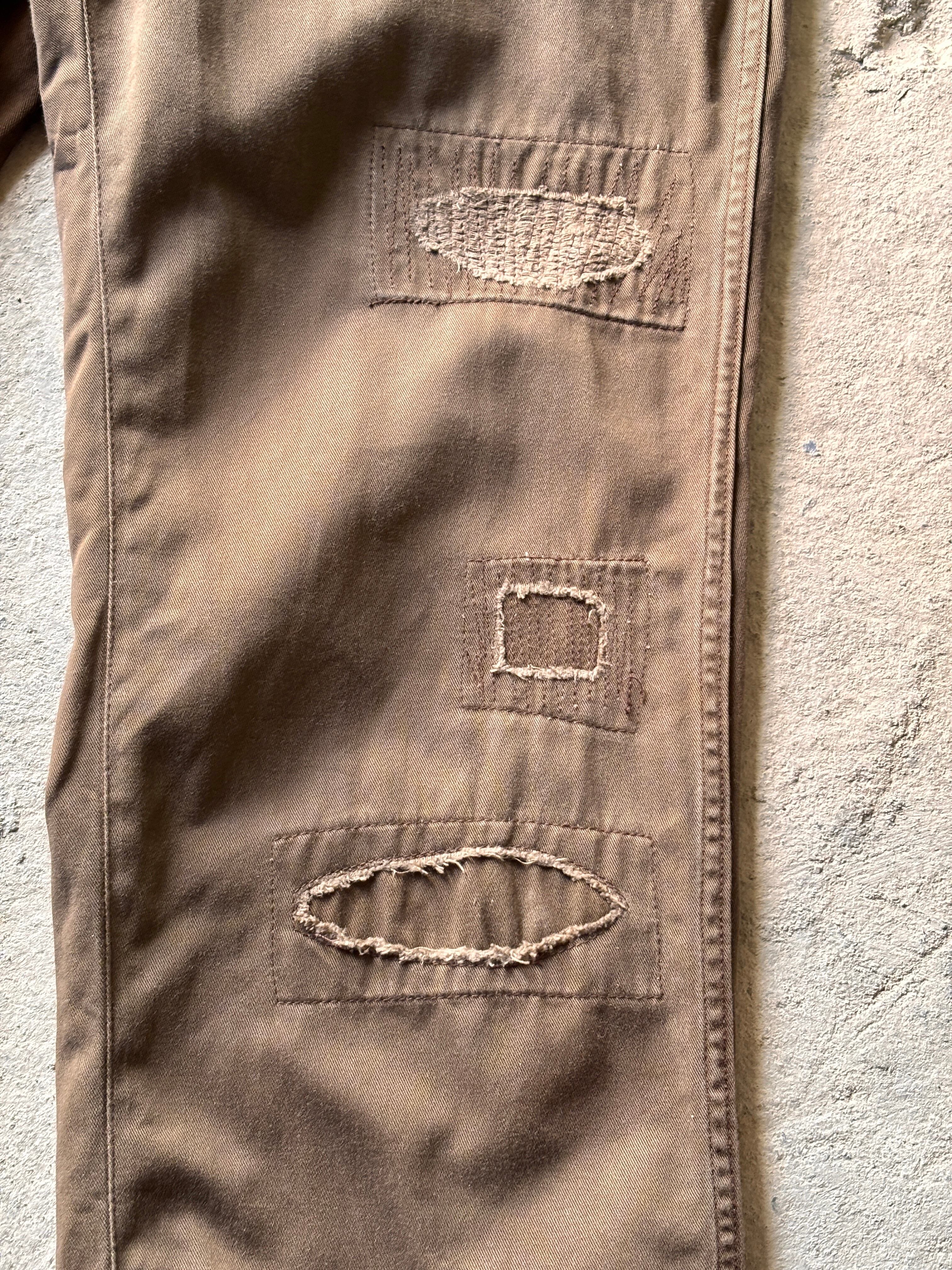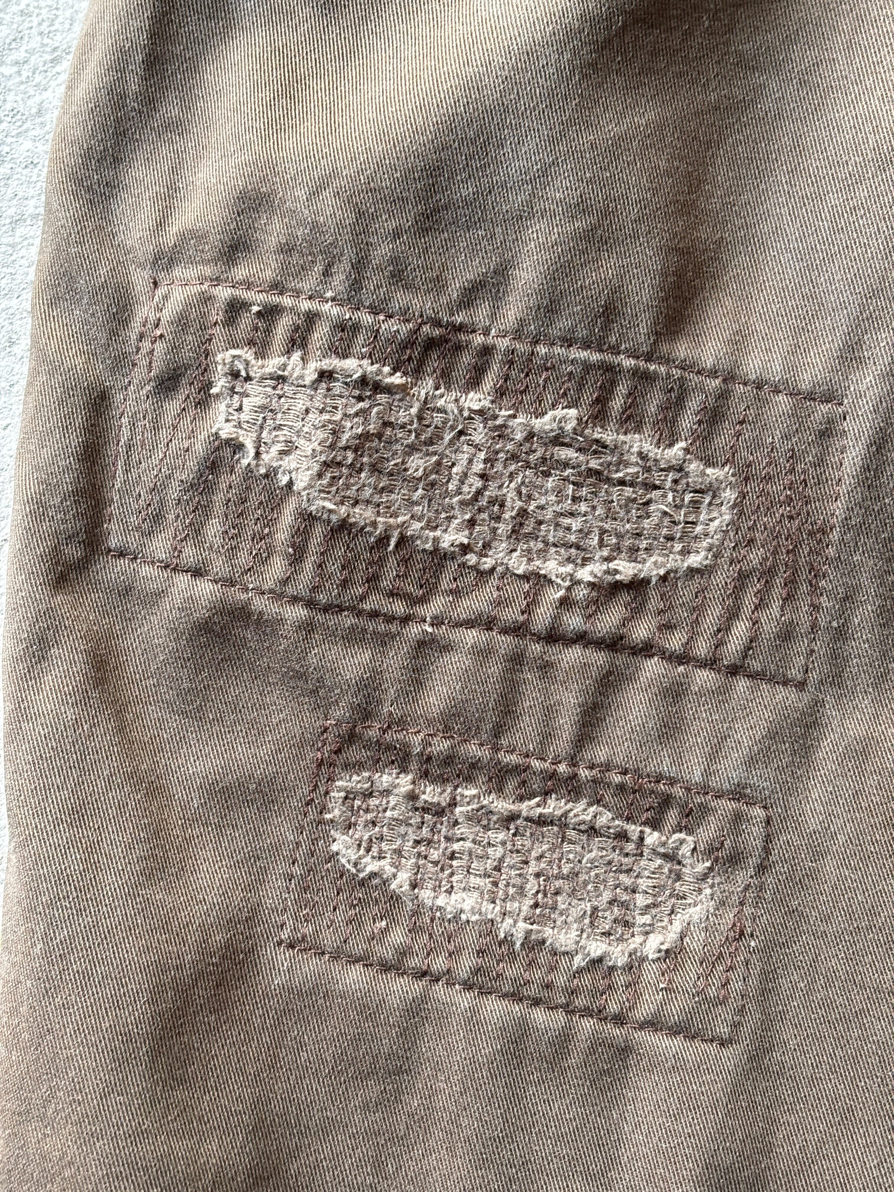 00s GOODENOUGH/Damage pants/M/ダメ-ジ/リペア加工パンツ/チノパン/ストレ-トパンツ/カ-キ/GDEH/グッドイナフ