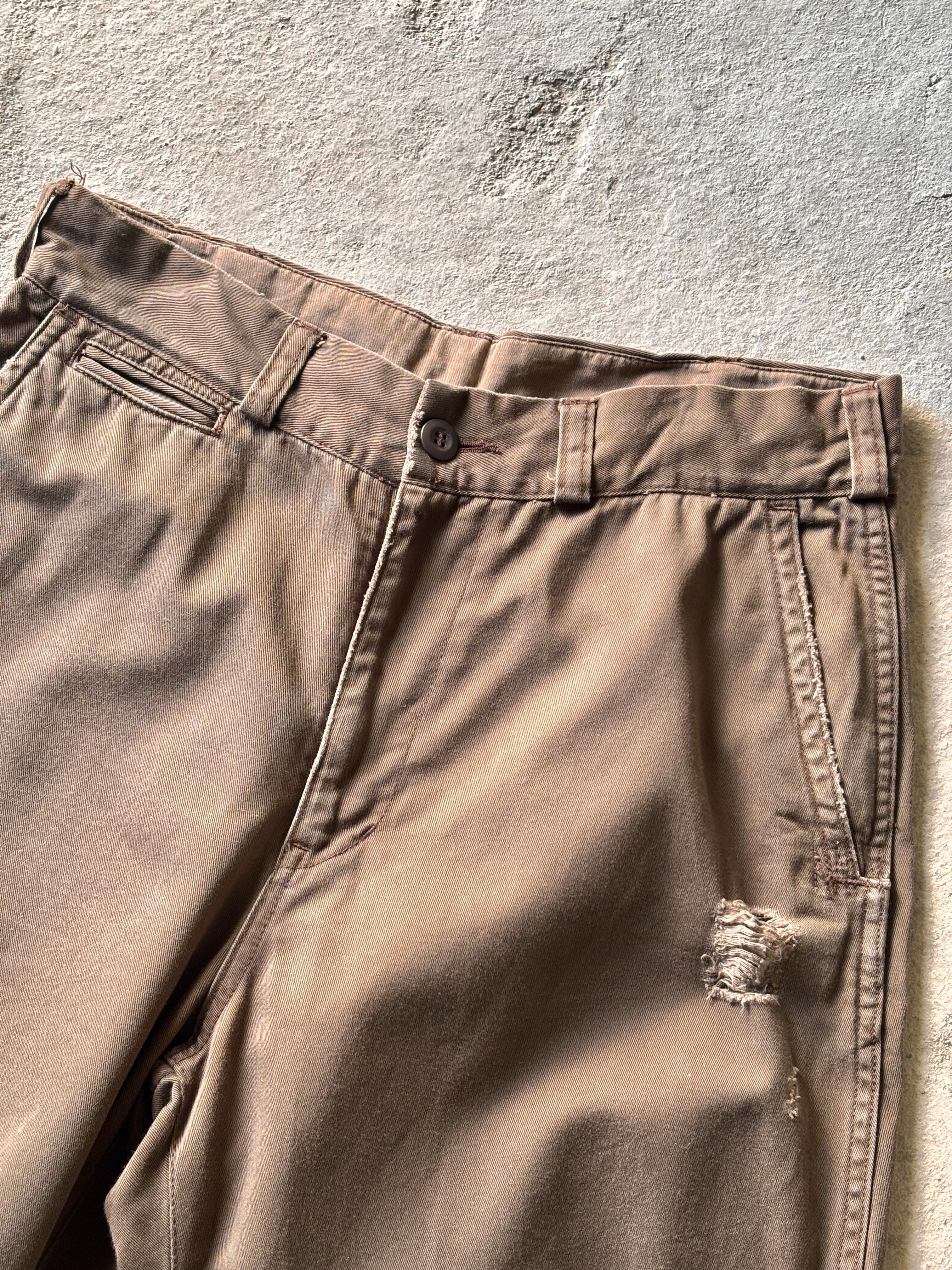 00s GOODENOUGH/Damage pants/M/ダメ-ジ/リペア加工パンツ/チノパン/ストレ-トパンツ/カ-キ/GDEH/グッドイナフ/裏原/古着/ア―カイブ