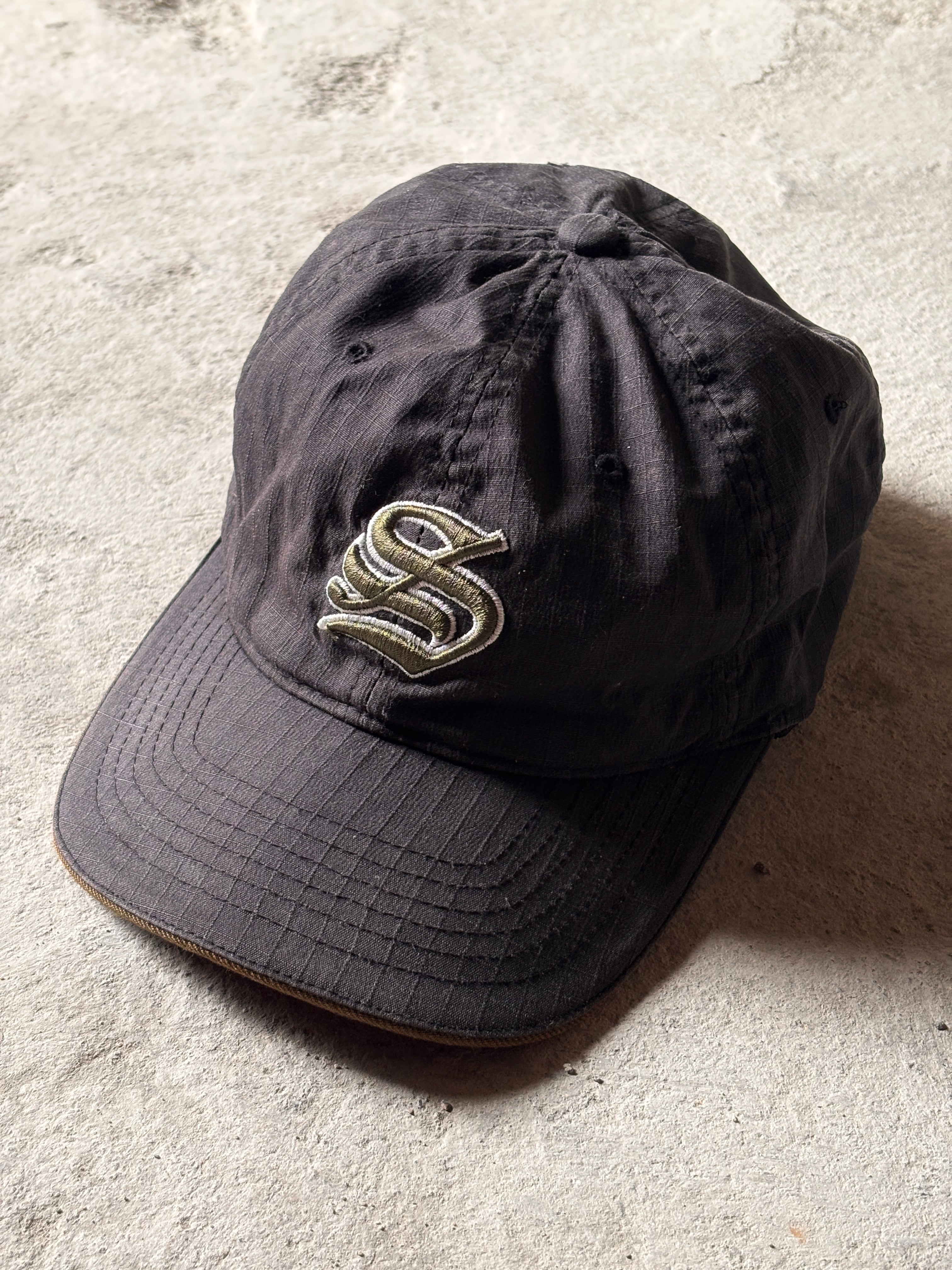 90~00s OLD STUSSY/S Logo patch Cap/紺タグ/L-XL/Sロゴパッチキャップ/ワッペン/刺繍ロゴ/ストックロゴ/ブラック/ステューシー/オ-ルドステューシー/帽子/ア―カイブ