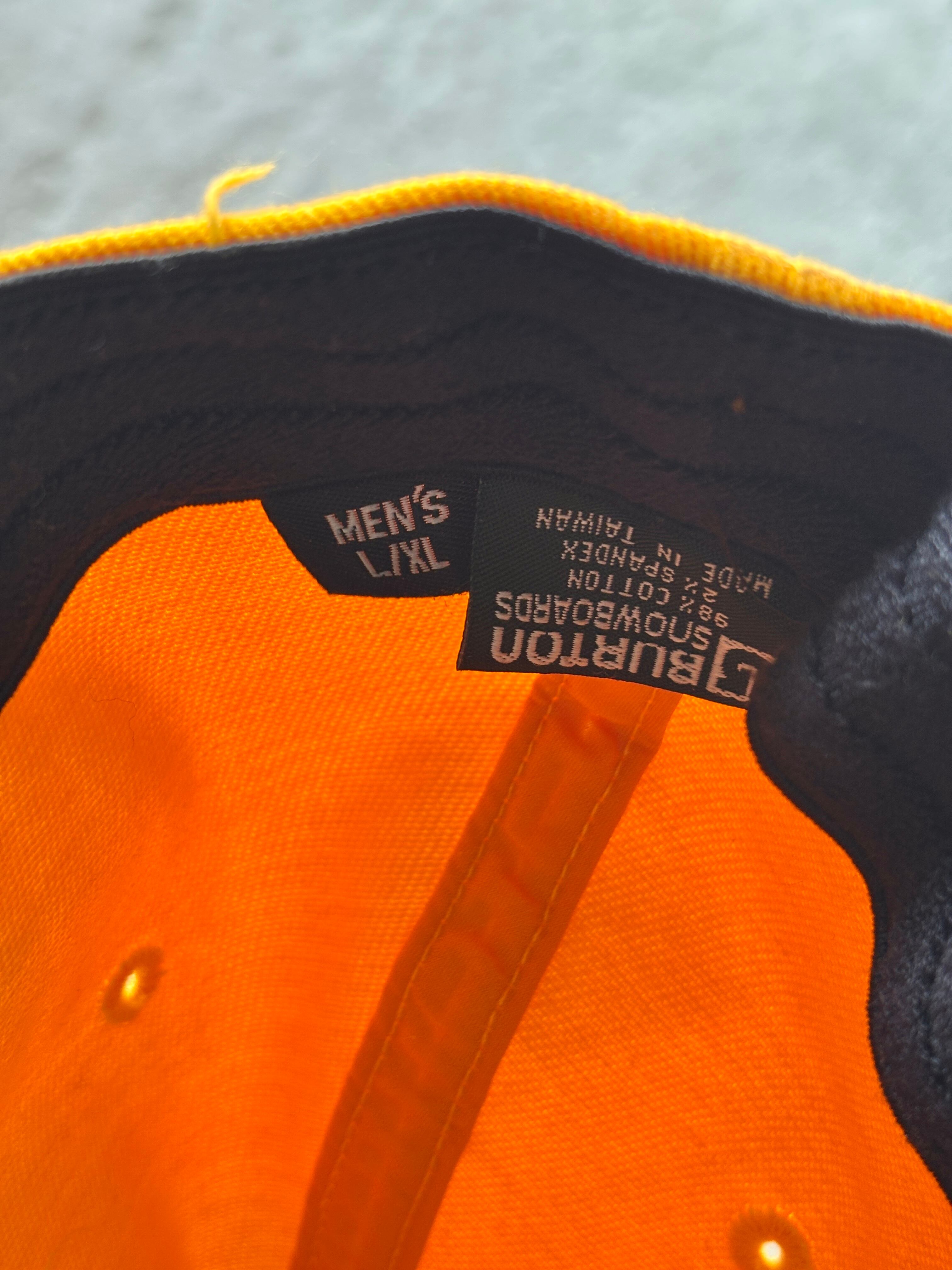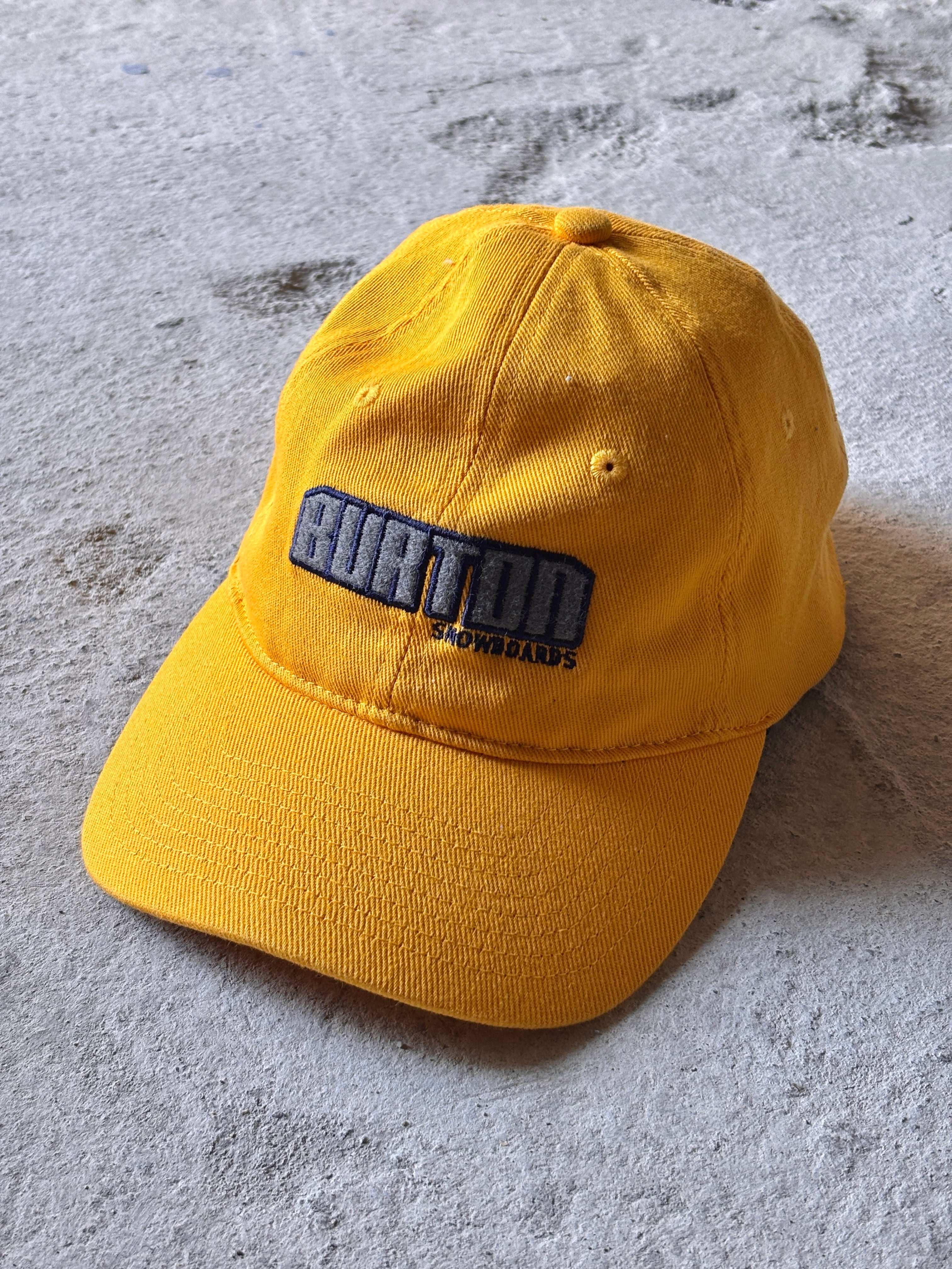 00s BURTON/Logo embroidery Cap/台湾製/L-XL/刺繡ロゴキャップ/6パネル/イエロ-/バ-トン/スノーボード/帽子/ア―カイブ
