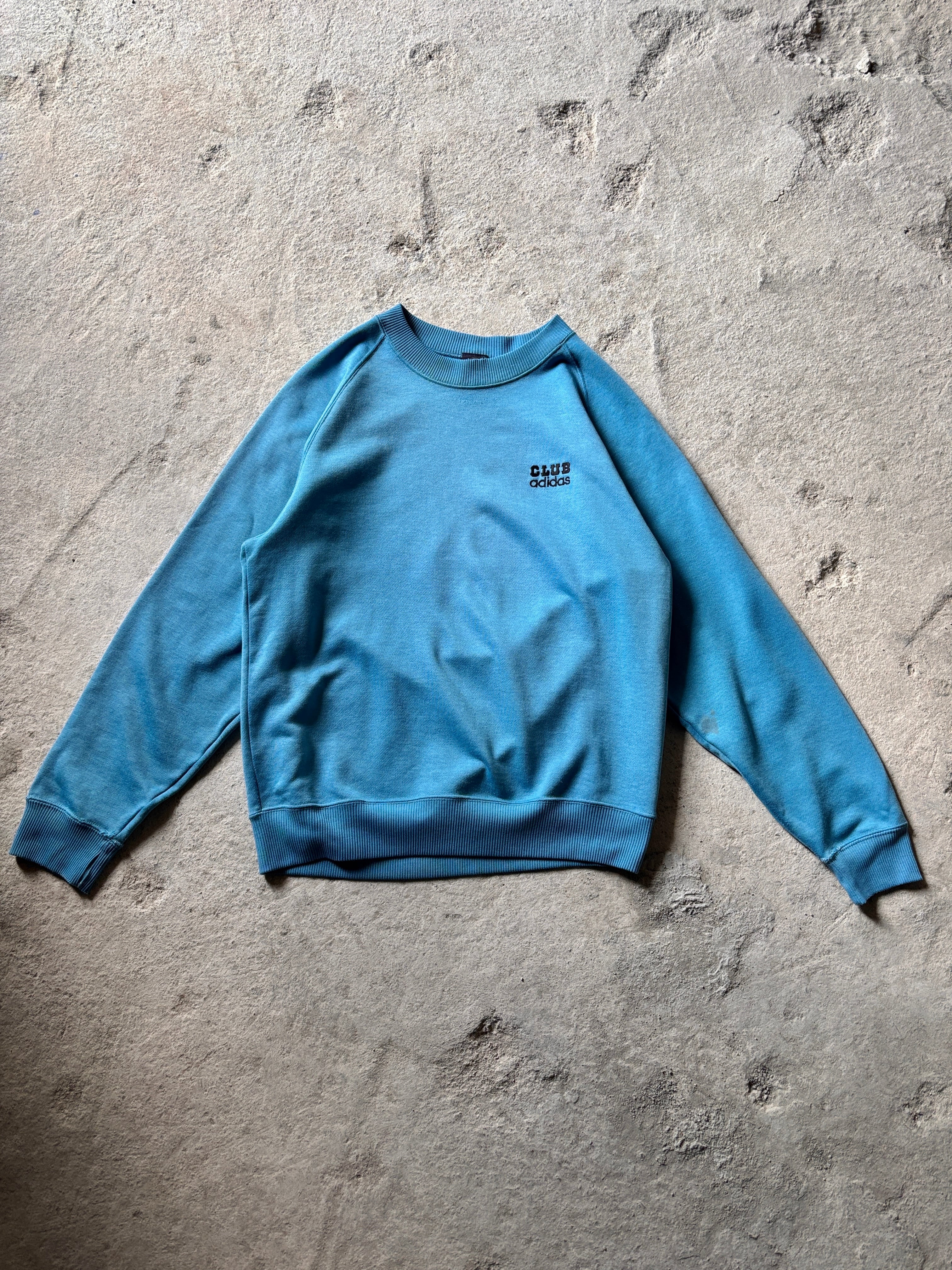 80s~adidas/CLUB adidas Sweat/デサント社製/S相当/刺繍ロゴスウェット/ブル-/アディダス/古着