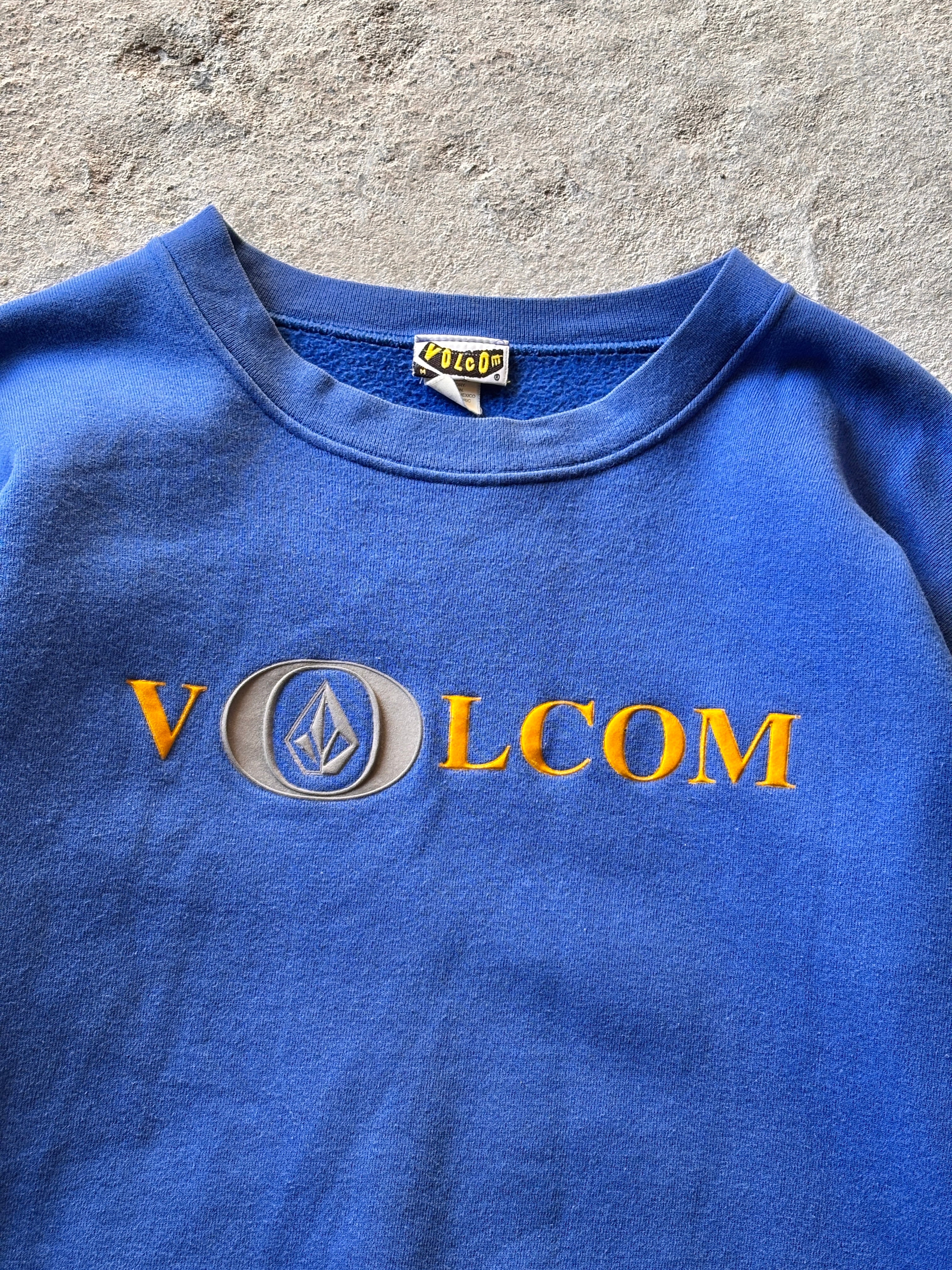 00s VOLCOM/Logo print Sweat/M(L-XL相当)/ロゴプリントスウェット/フロッキープリント/ブル-/ボルコム