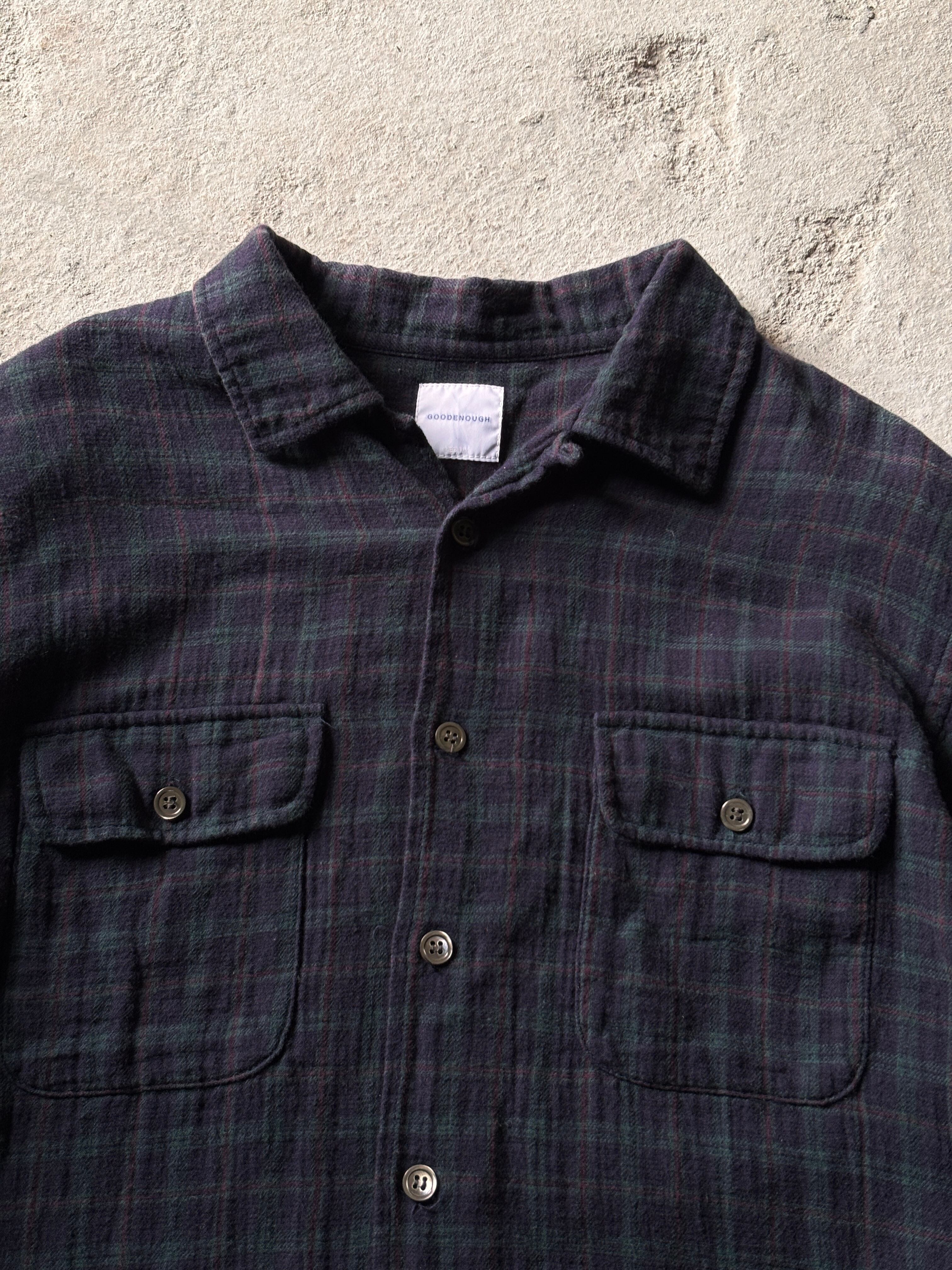 00s GOODENOUGH/Bleach Flannel Shirt/M/ブリ-チ加工フランネルシャル/チェック柄長袖シャツ/ネイビ-/ベ-ジュ/GDEH/グッドイナフ