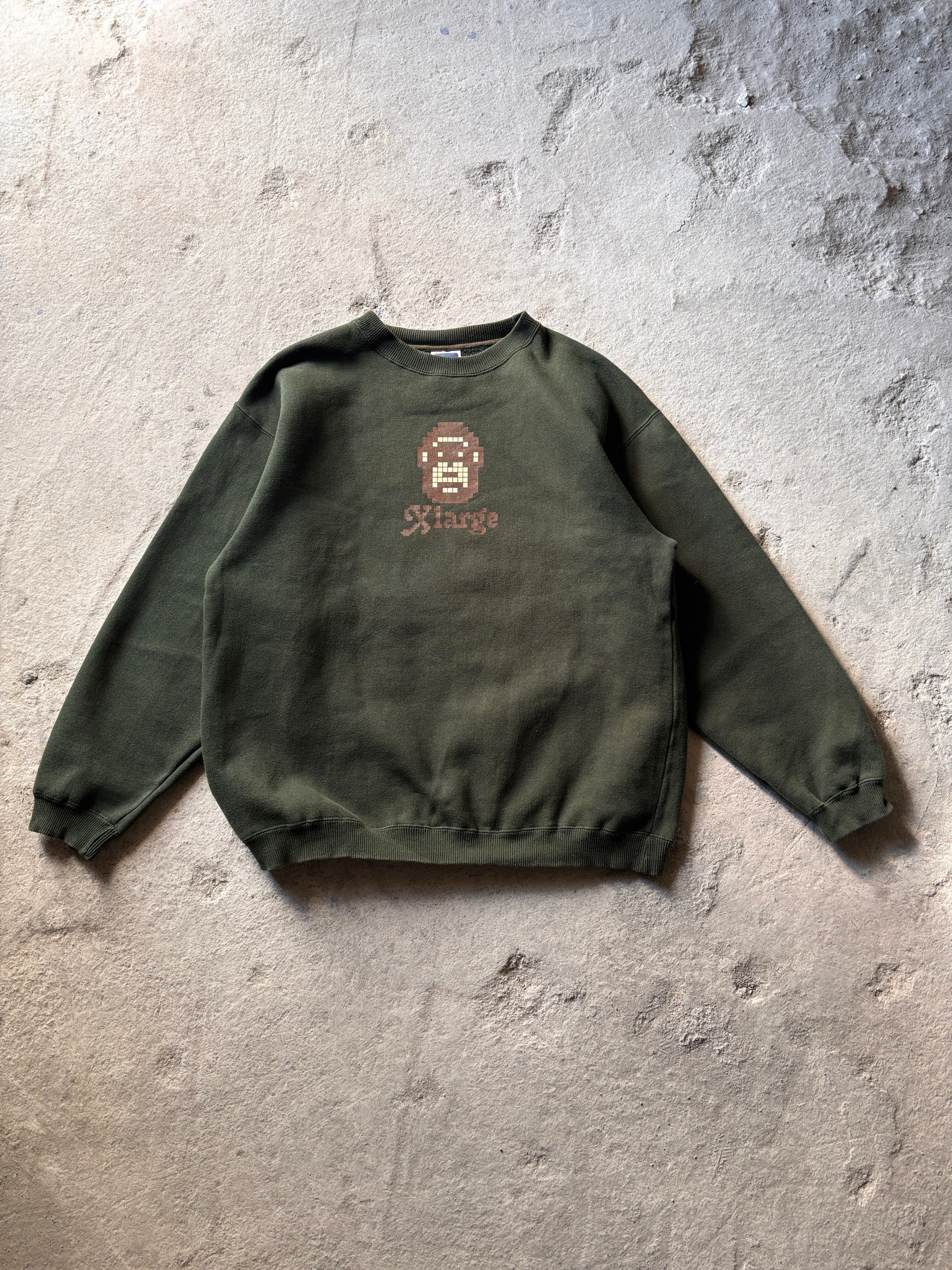 00s XLARGE/Logo print Sweat/USA製/M/ロゴプリントスウェット/ピクセルアート/カーキ/エクストララージ/古着/ア-カイブ