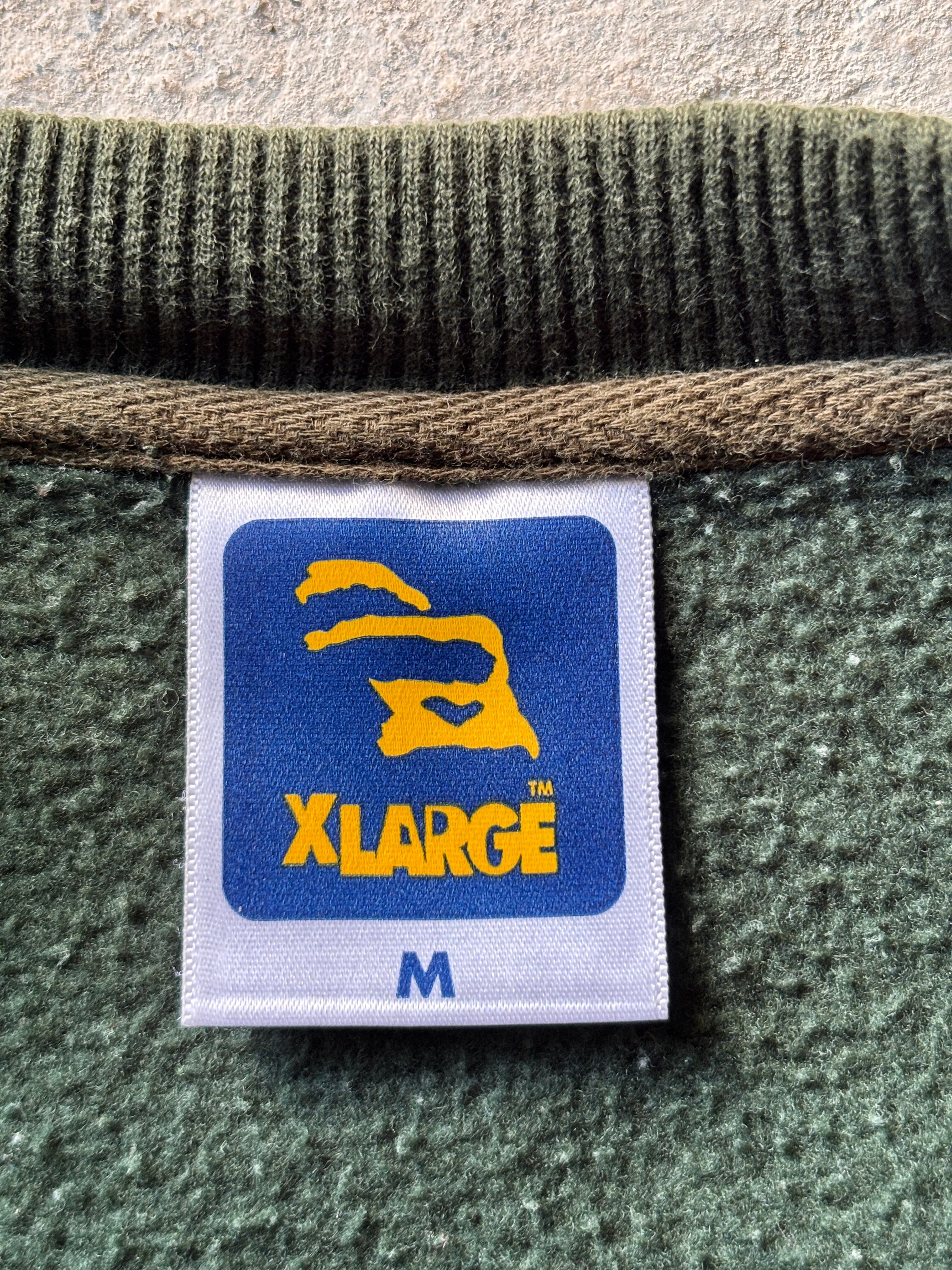00s XLARGE/Logo print Sweat/USA製/M/ロゴプリントスウェット/ピクセルアート/カーキ/エクストララージ