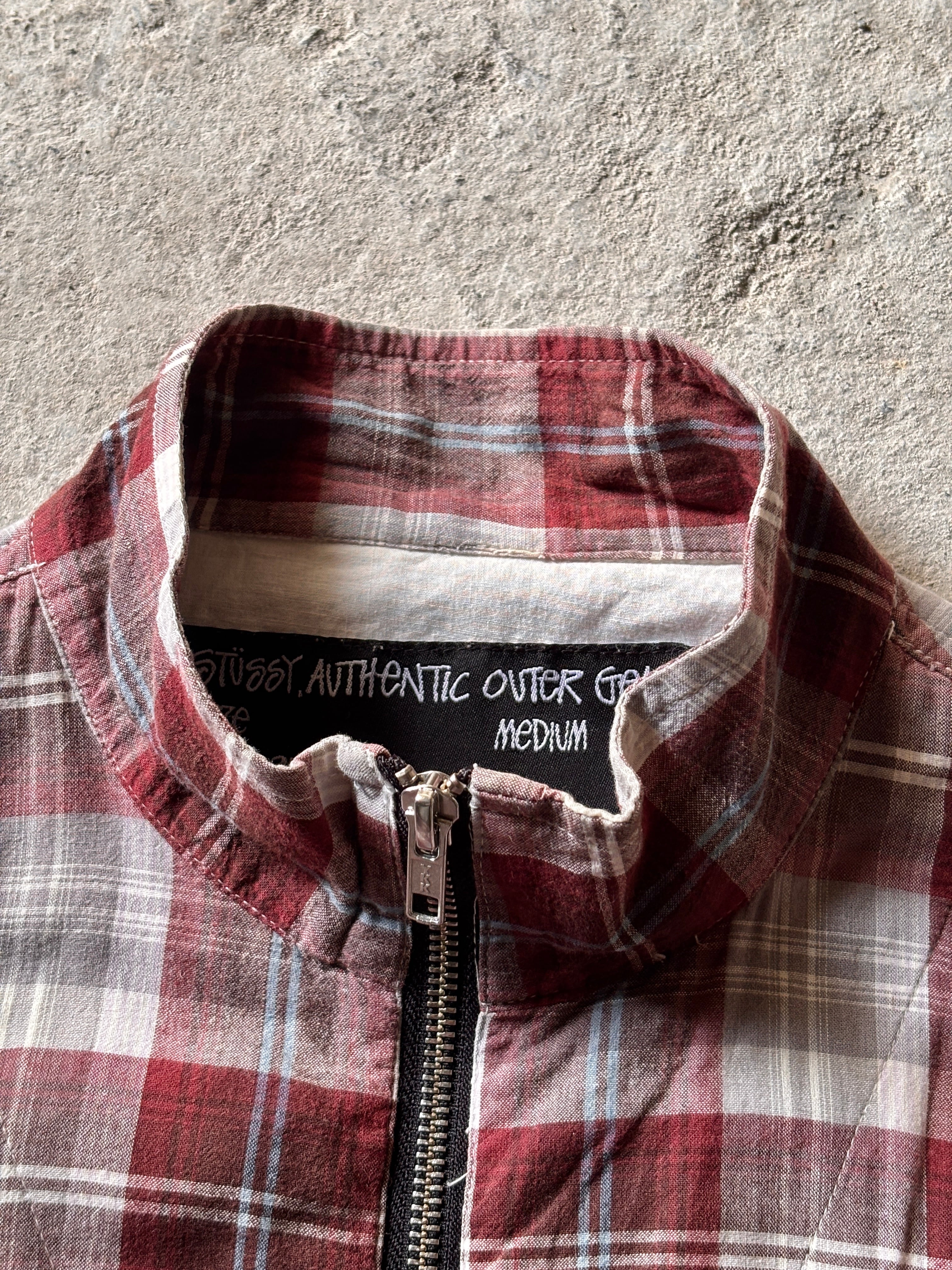 00~10s STUSSY/Check Field Jacket/M/チェック柄フィ-ルドジャケット/バ-ガンディ-/グレ-/ステューシ-
