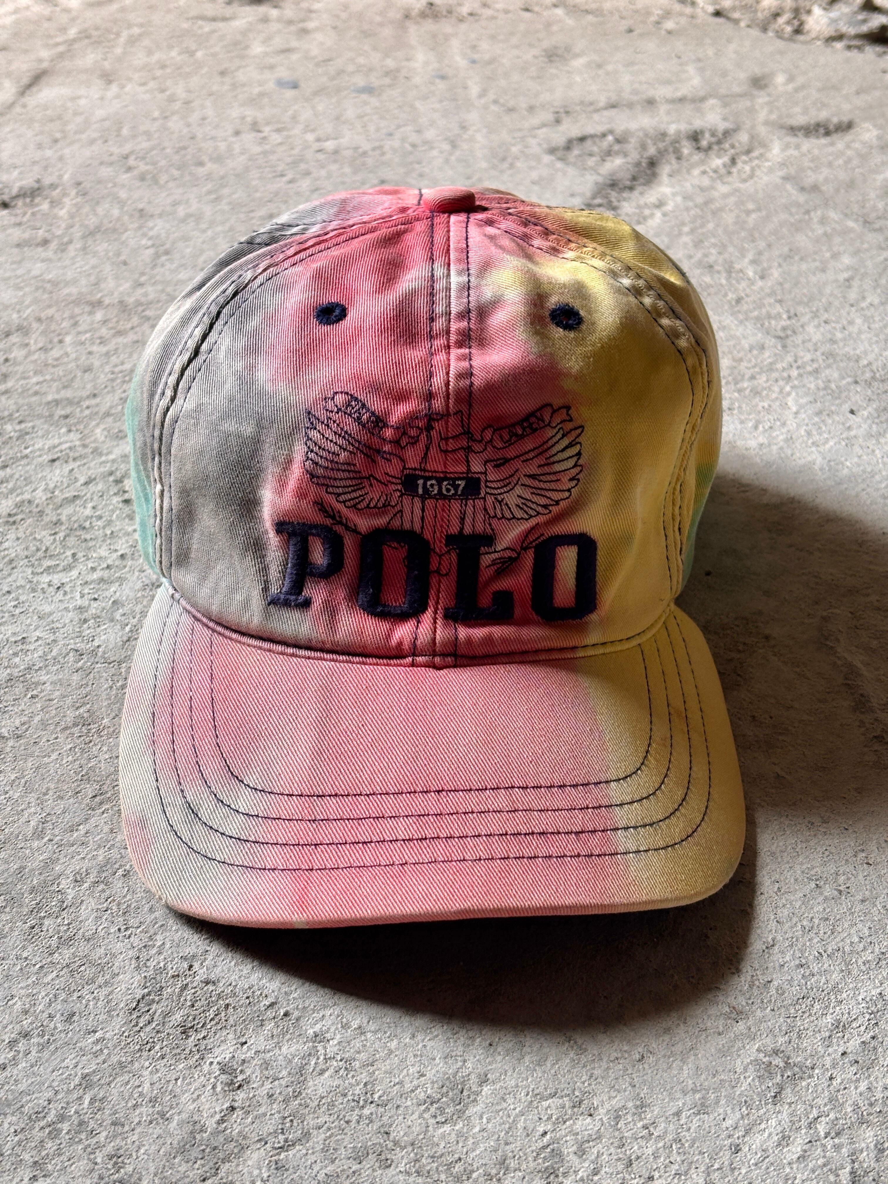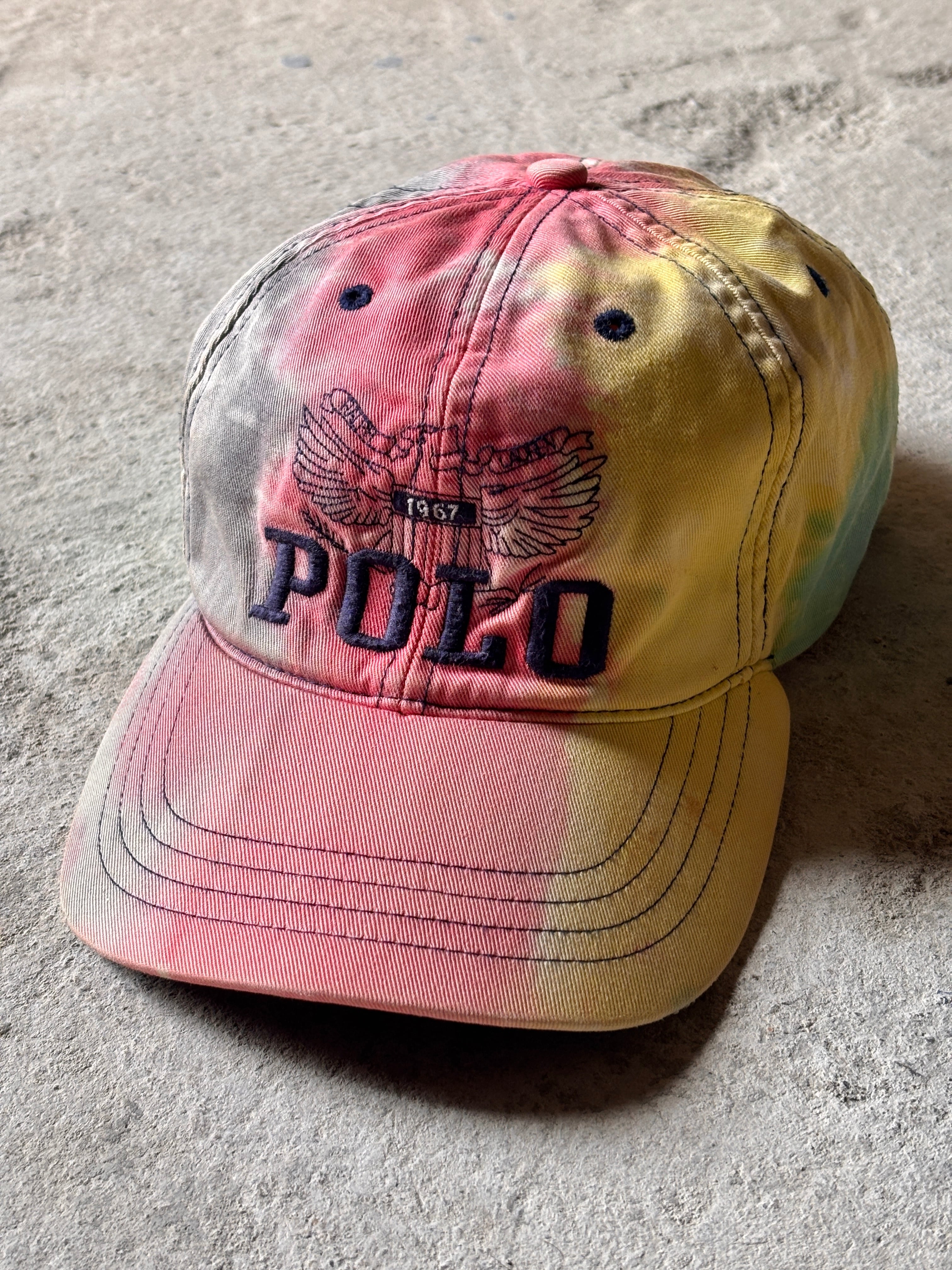 90~00s POLO RALPH LAUREN/Tie die Cap/台湾製/Free/タイダイ柄キャップ/刺繍ロゴ/総柄/ポロラルフローレン/アメカジ/帽子