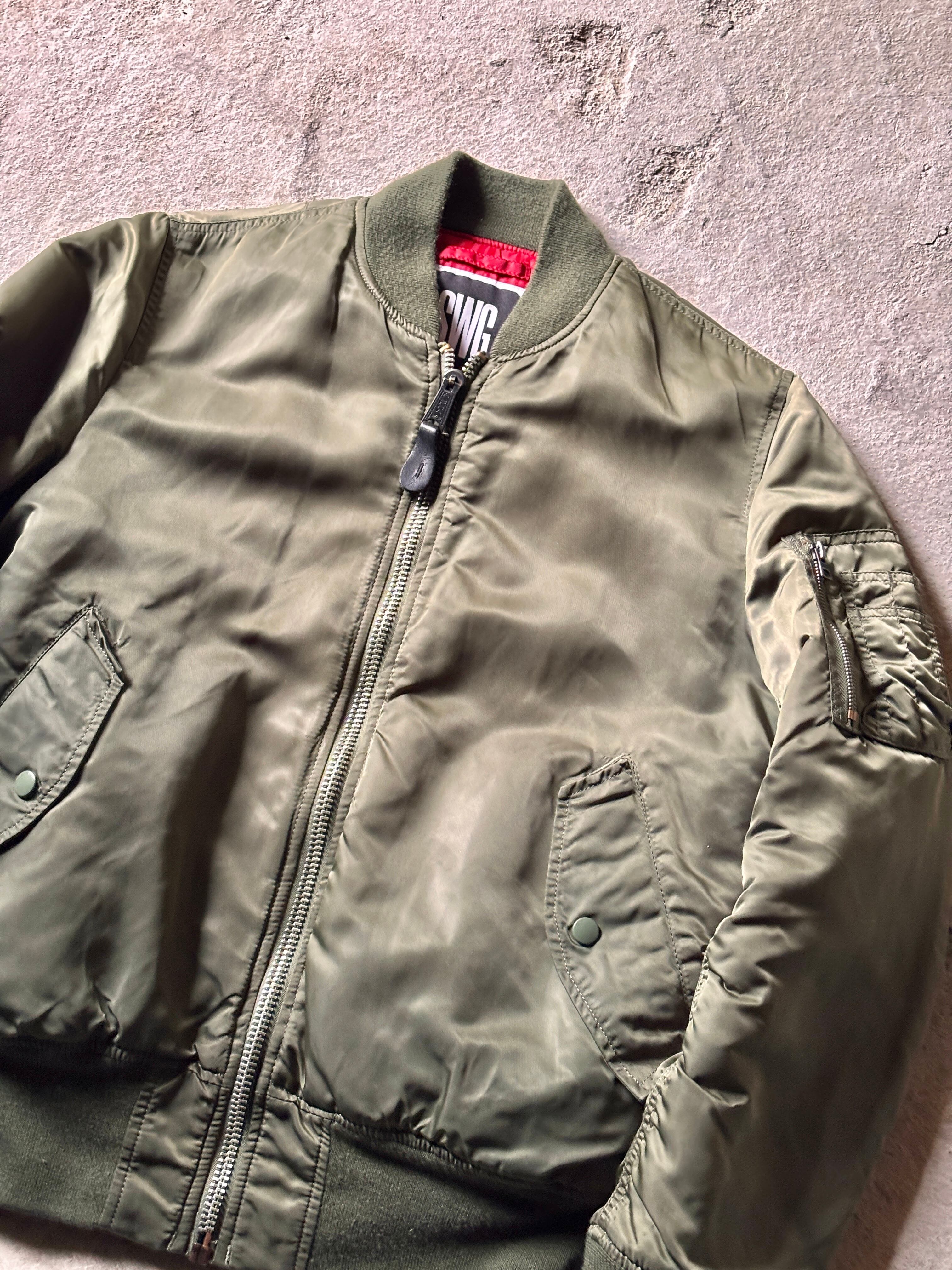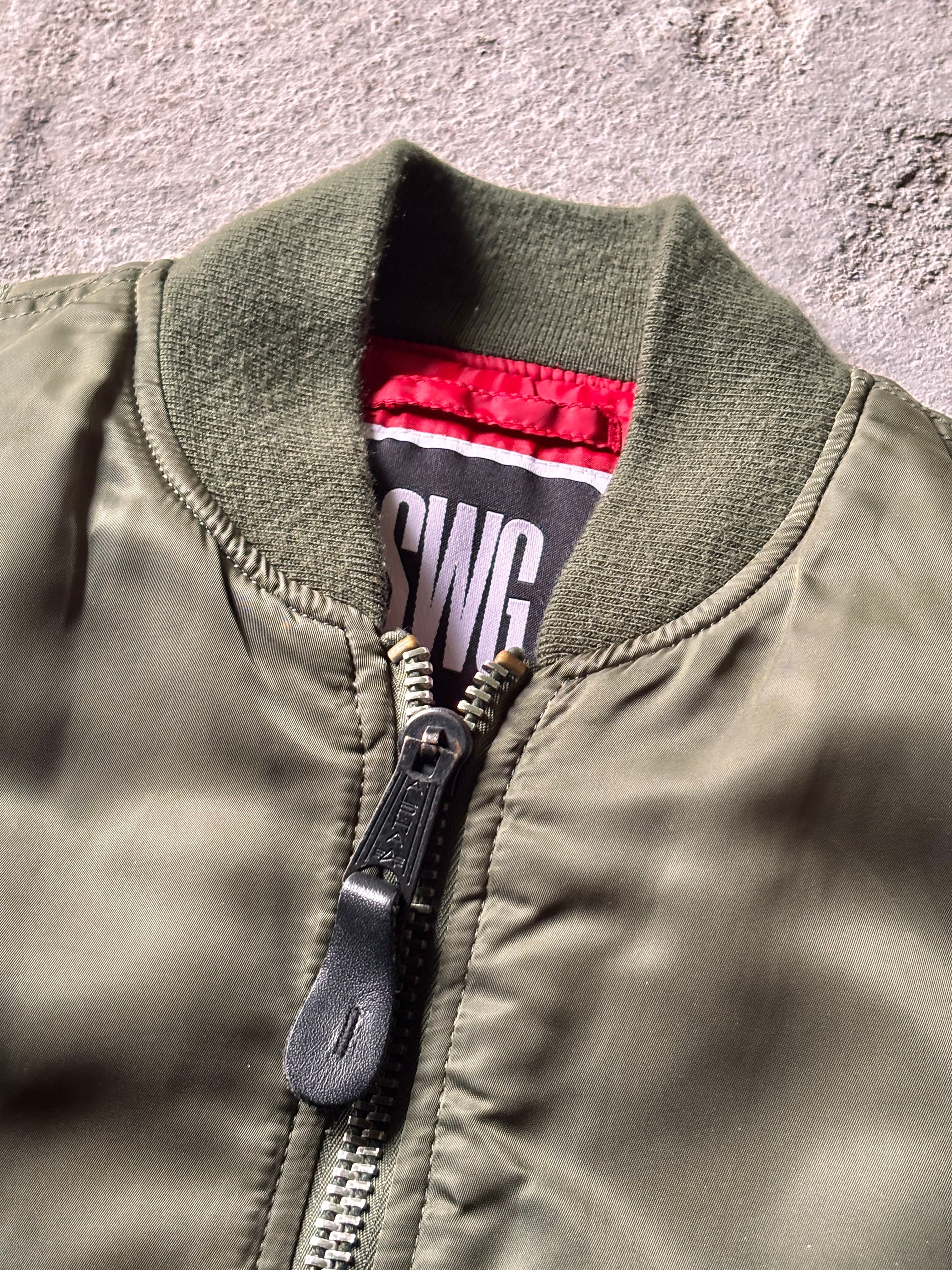 00s SWAGGER × ALPHA/MA-1 Flight Jacket/L/リバ-シブルフライトジャケットカーキ/ミリタリ-/アルファコラボ/スワッガー