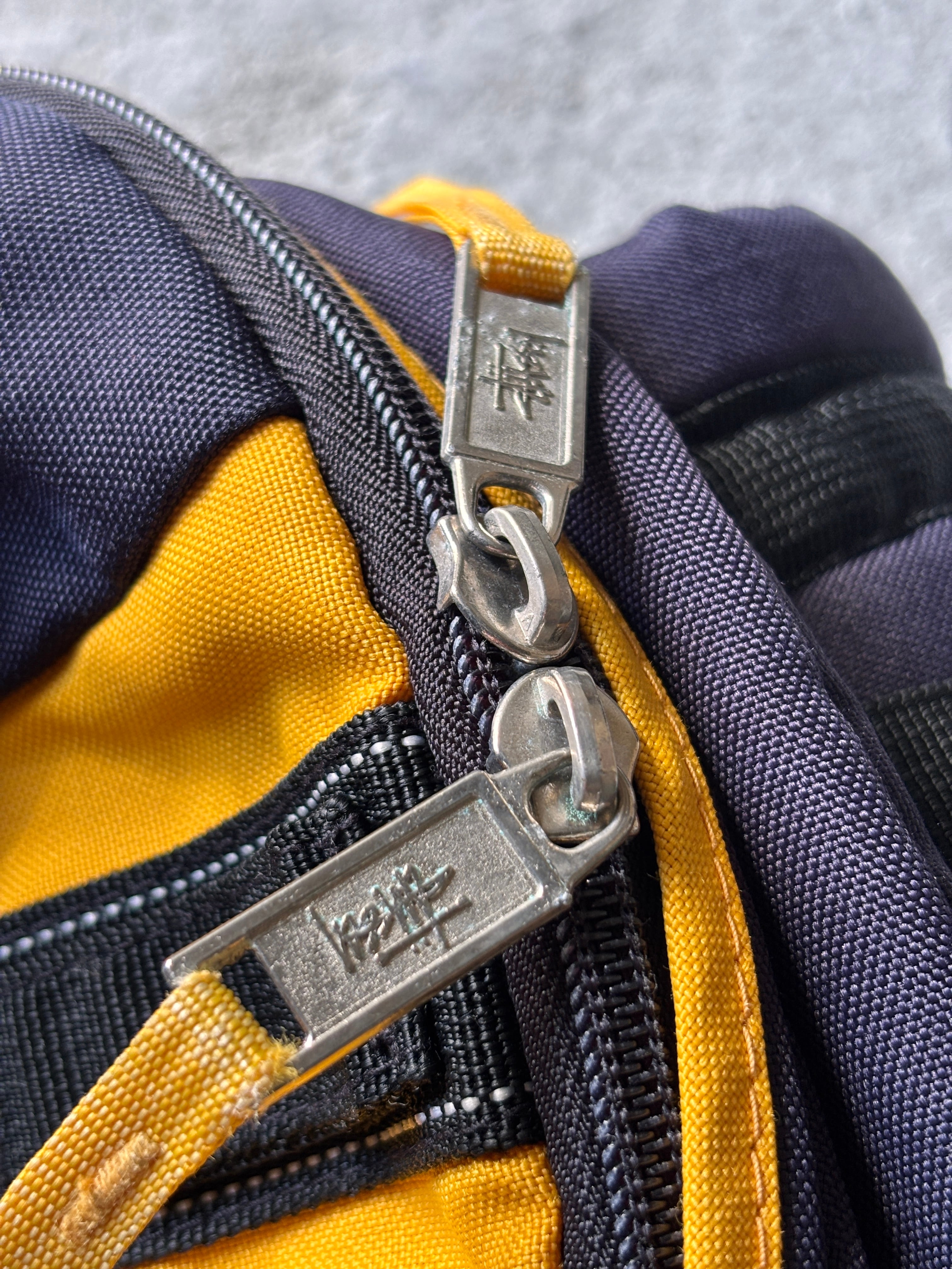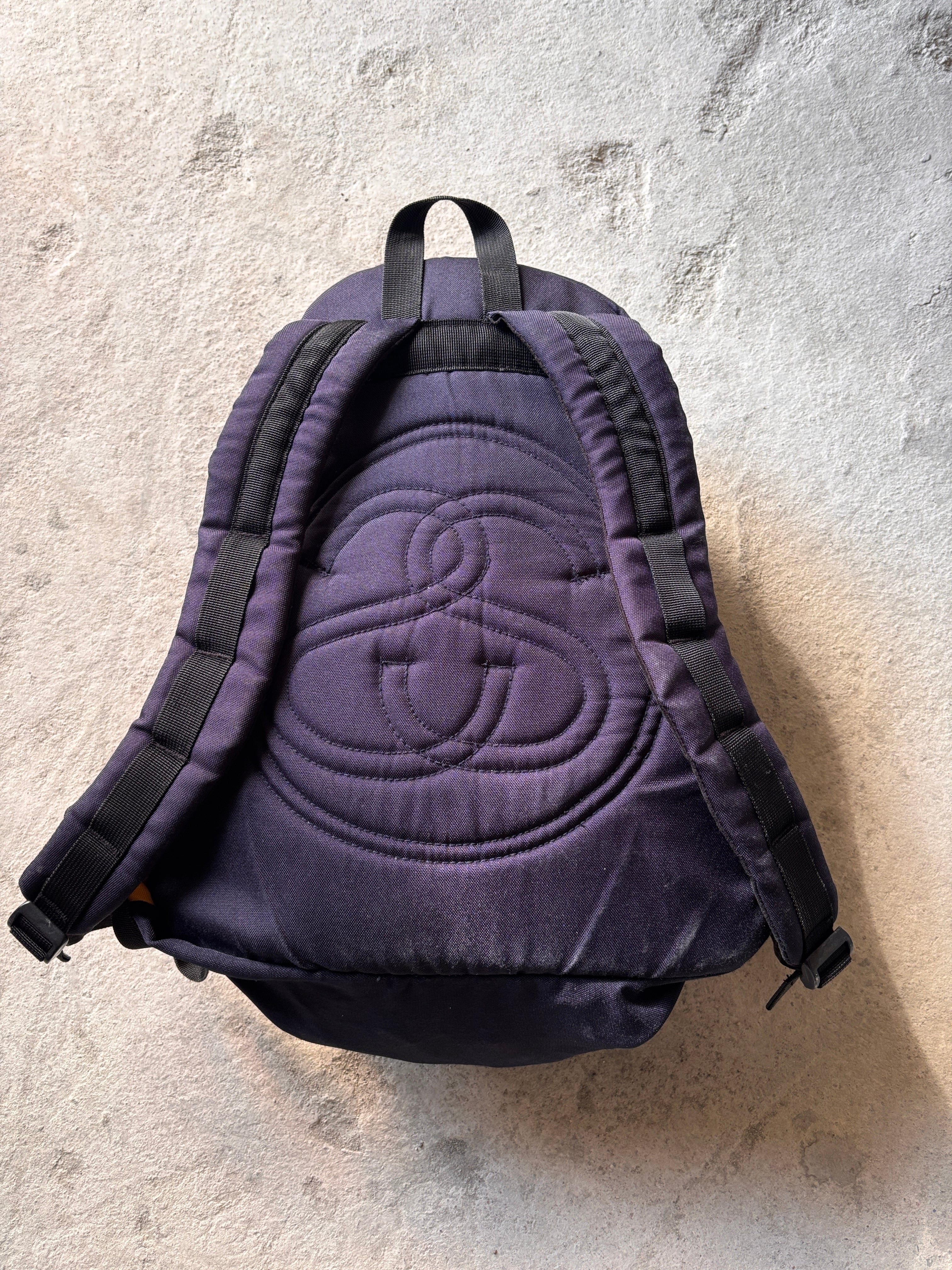 90~00s OLD STUSSY/Backpack/紺タグ/バックパック/リュック/ネイビ-/イエロ-/ストックロゴ/刺繍ロゴバッグ/ステューシー/オールドステューシー/アーカイブ