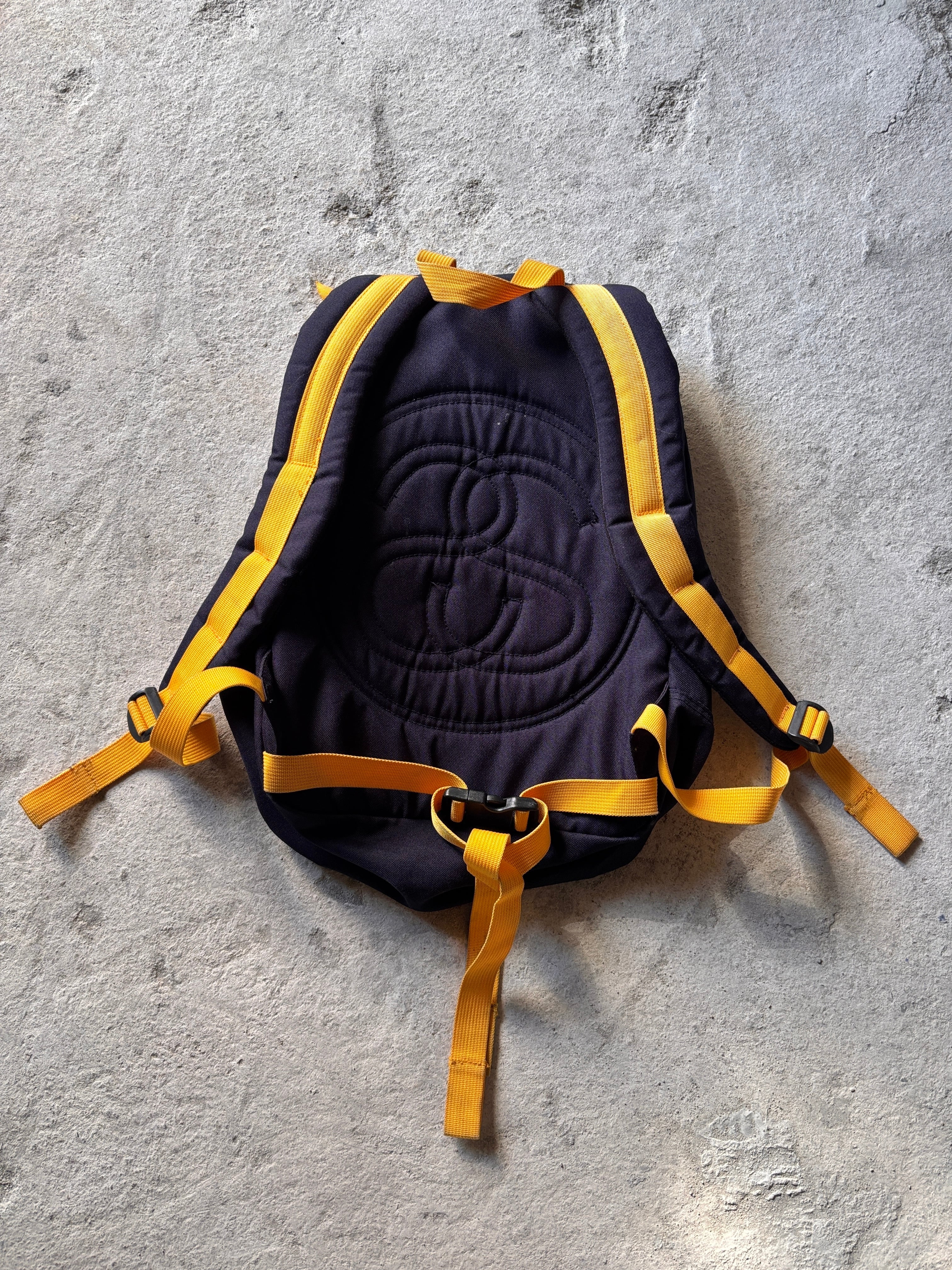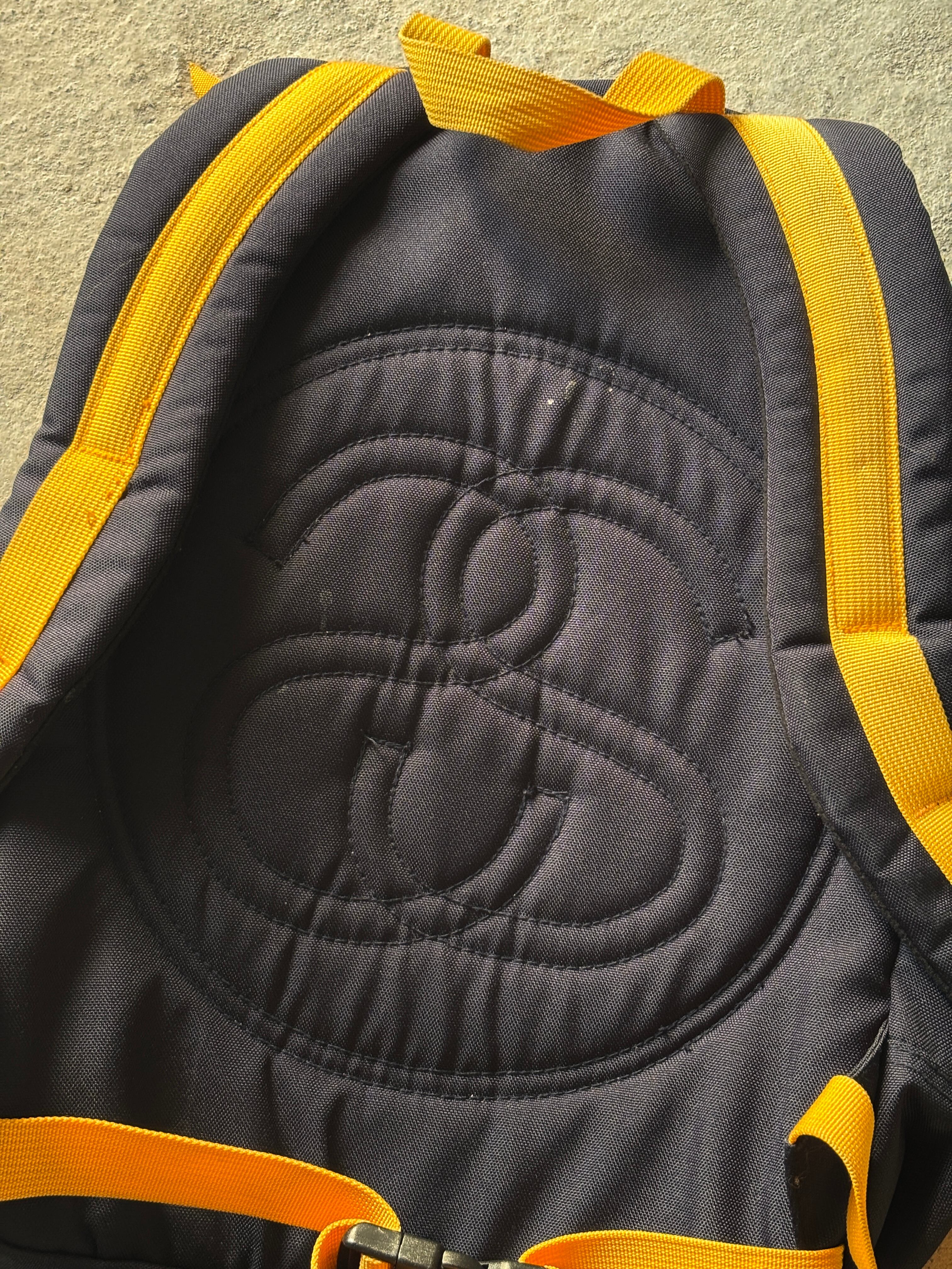 90~00s/OLD STUSSY/Stock Logo Backpack/紺タグ/ストックロゴ/刺繡ロゴ/バックパック/リュック/バッグ/ネイビ-/イエロ-/ステューシー/オールドステューシー/古着/アーカイブ