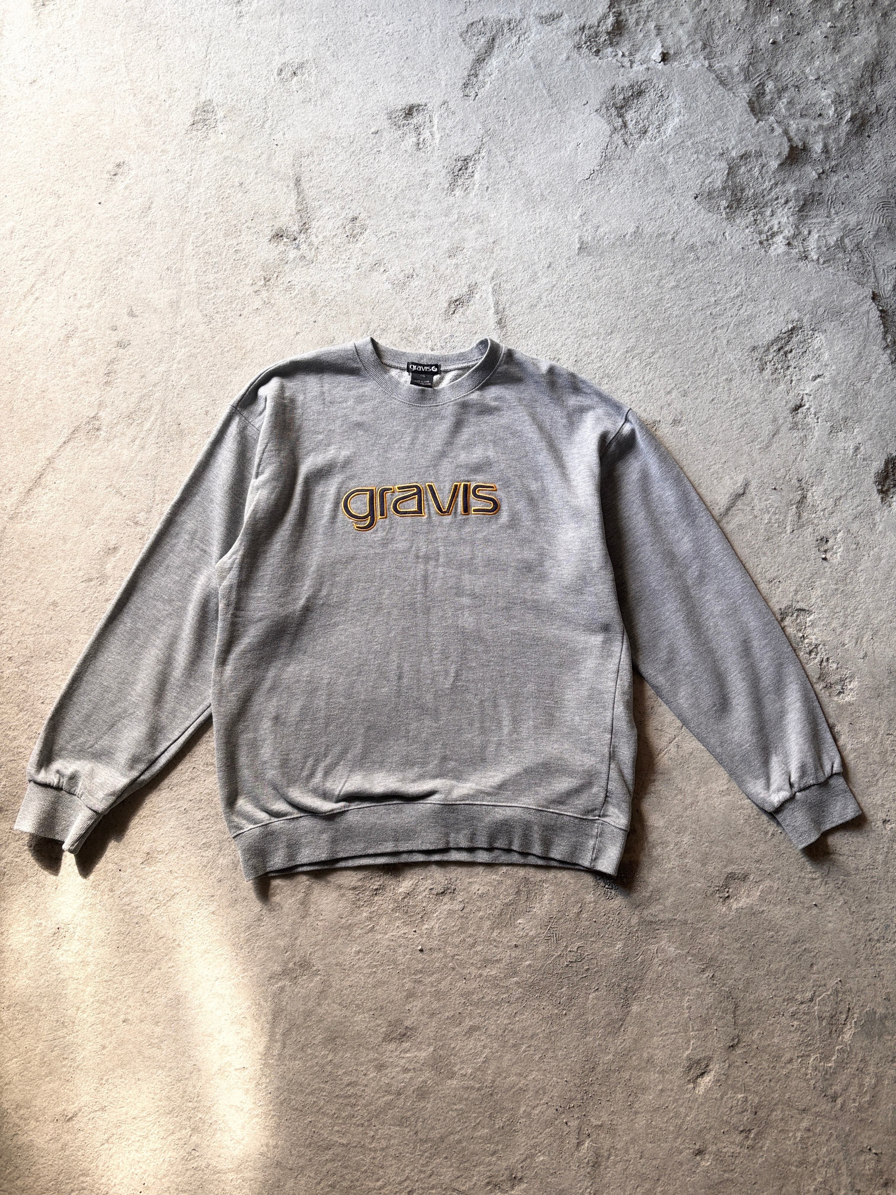 00s gravis/Logo patch Sweat/XXL/ロゴパッチスウェット/刺繍ロゴ/グレ-/グラビス/古着/ア―カイブ