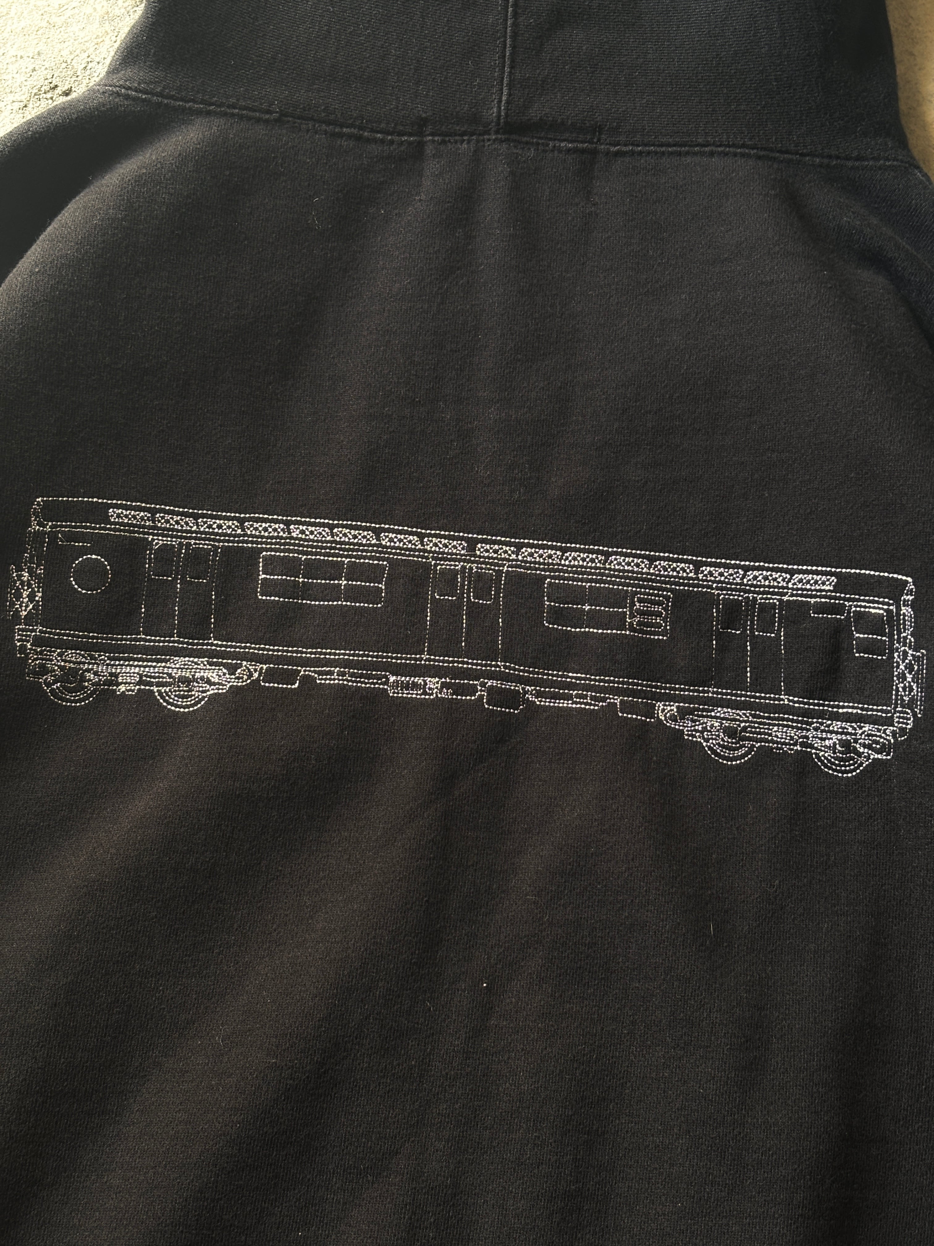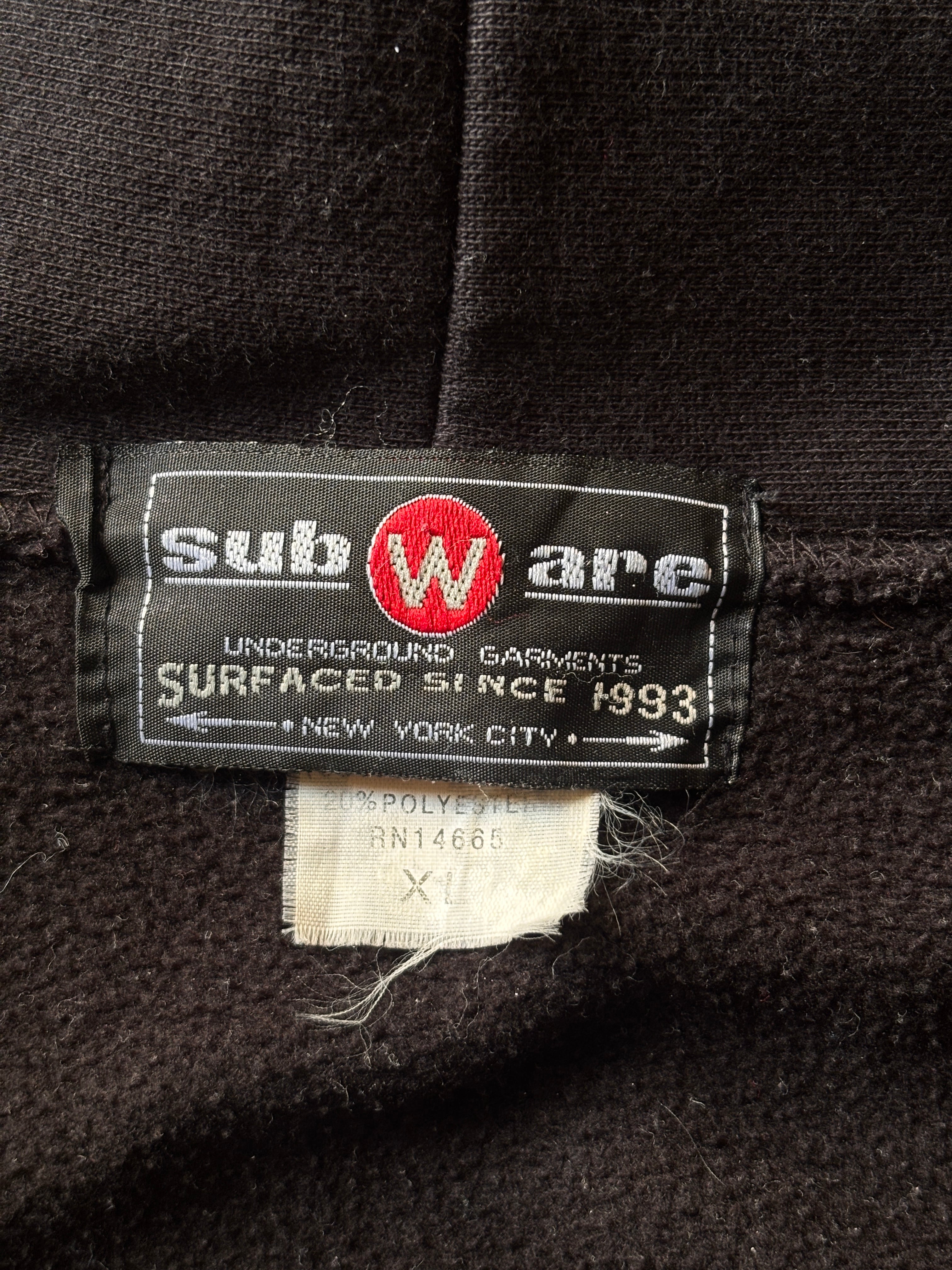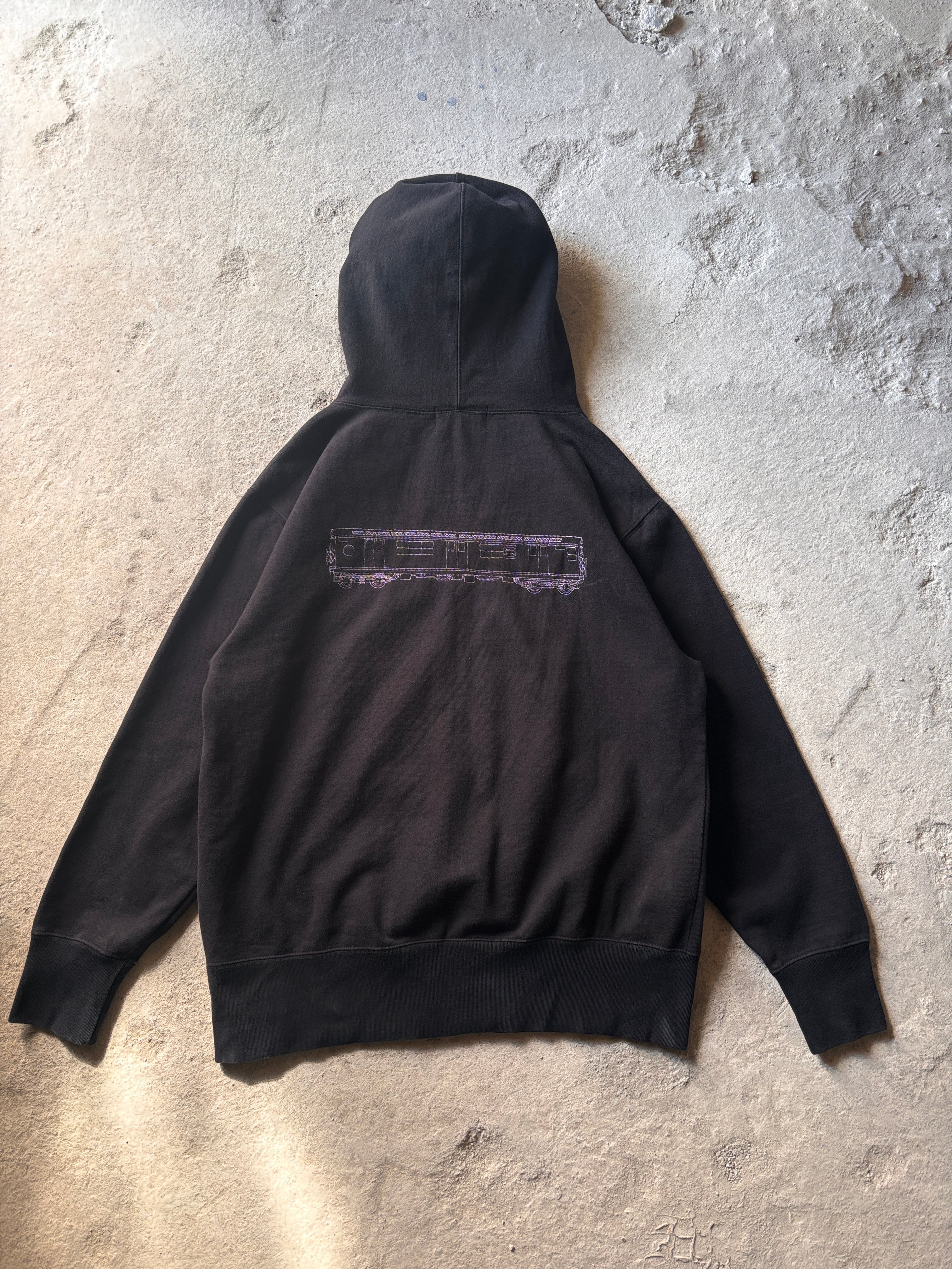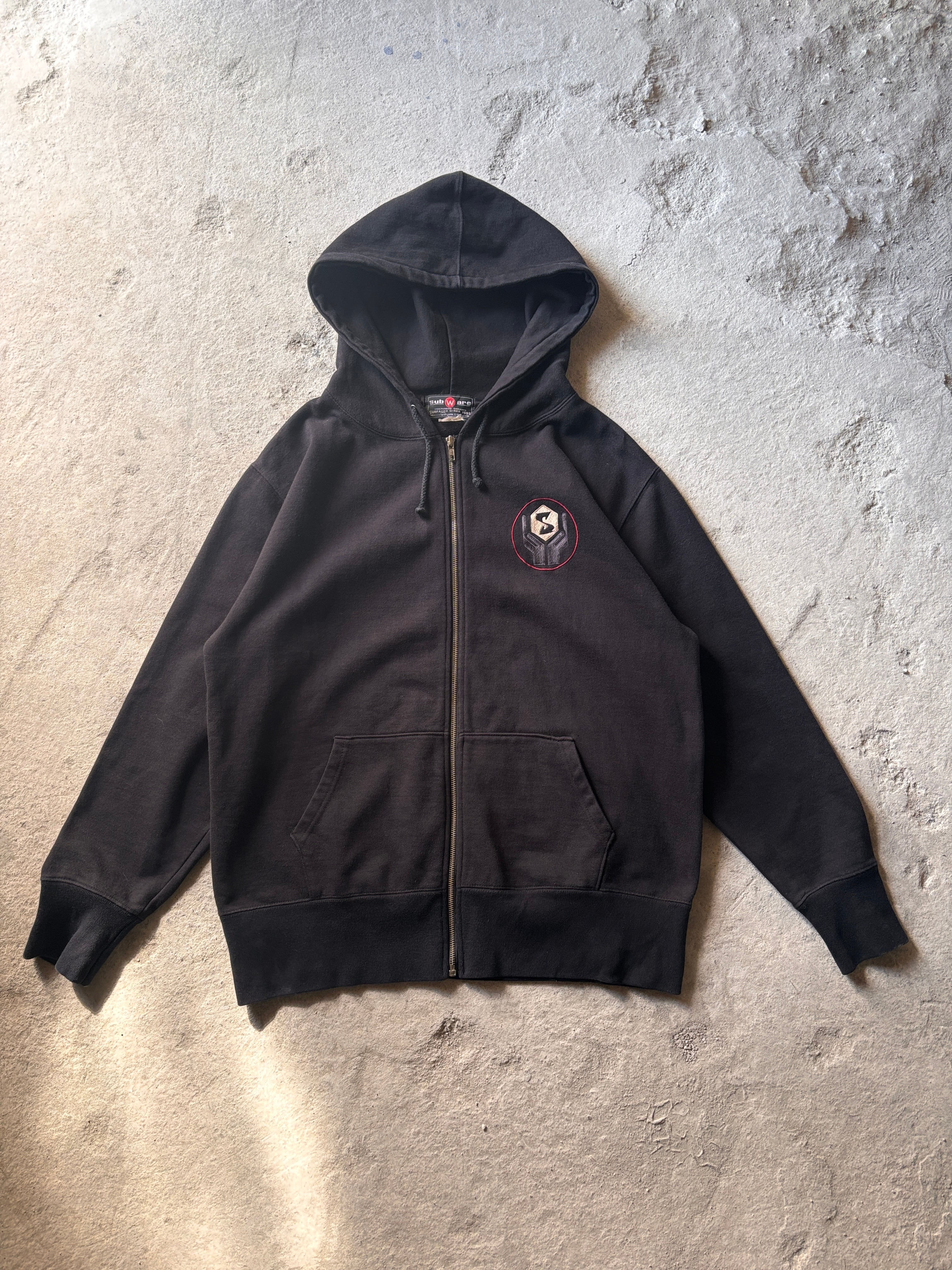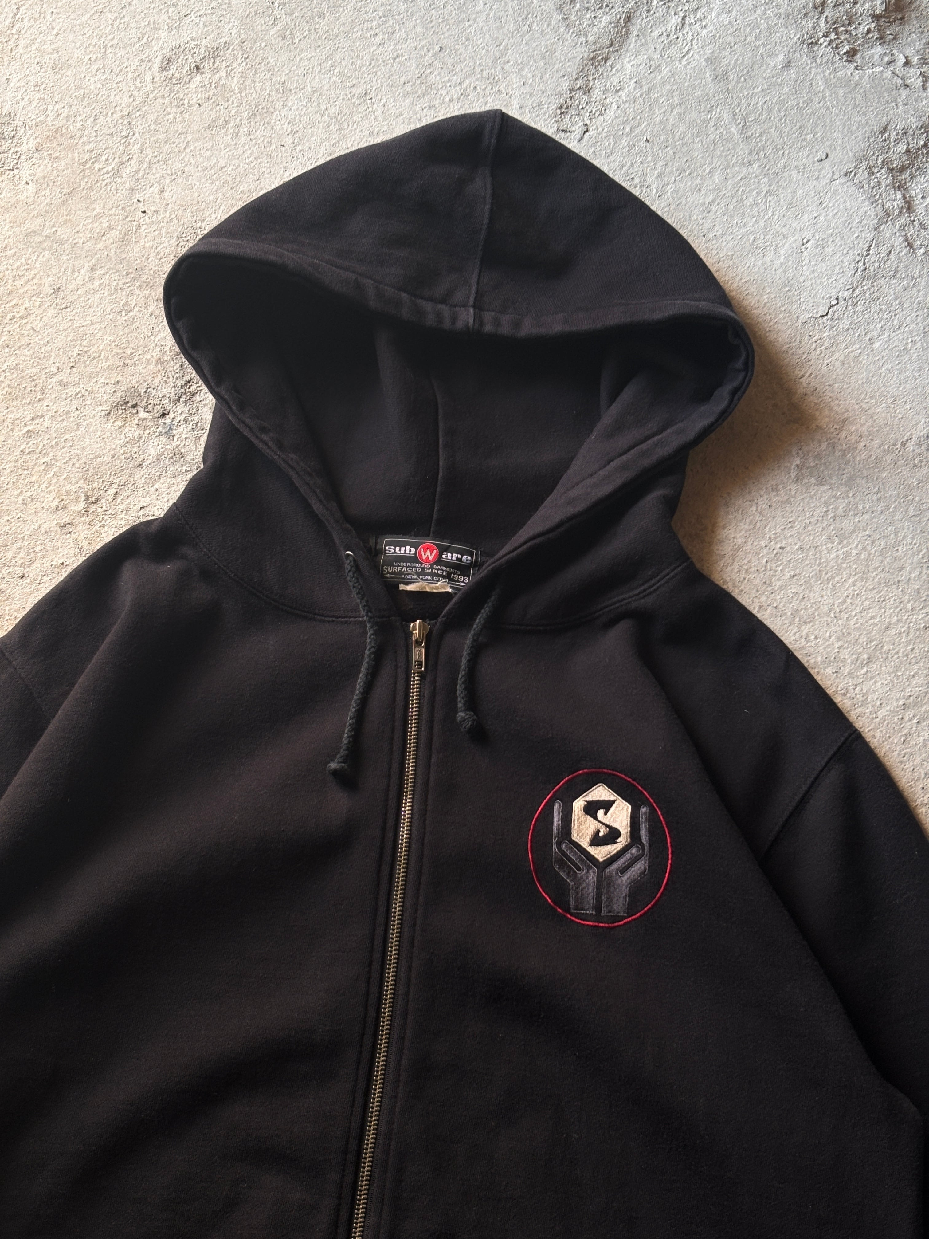 90~00s SUBWARE/Logo embroidery Zip Hoodie/XL/刺繍ロゴ/ジップパ-カ-/フ-ディ-/電車/ブラック/STASH/サブウェア/裏原/古着/ア―カイブ