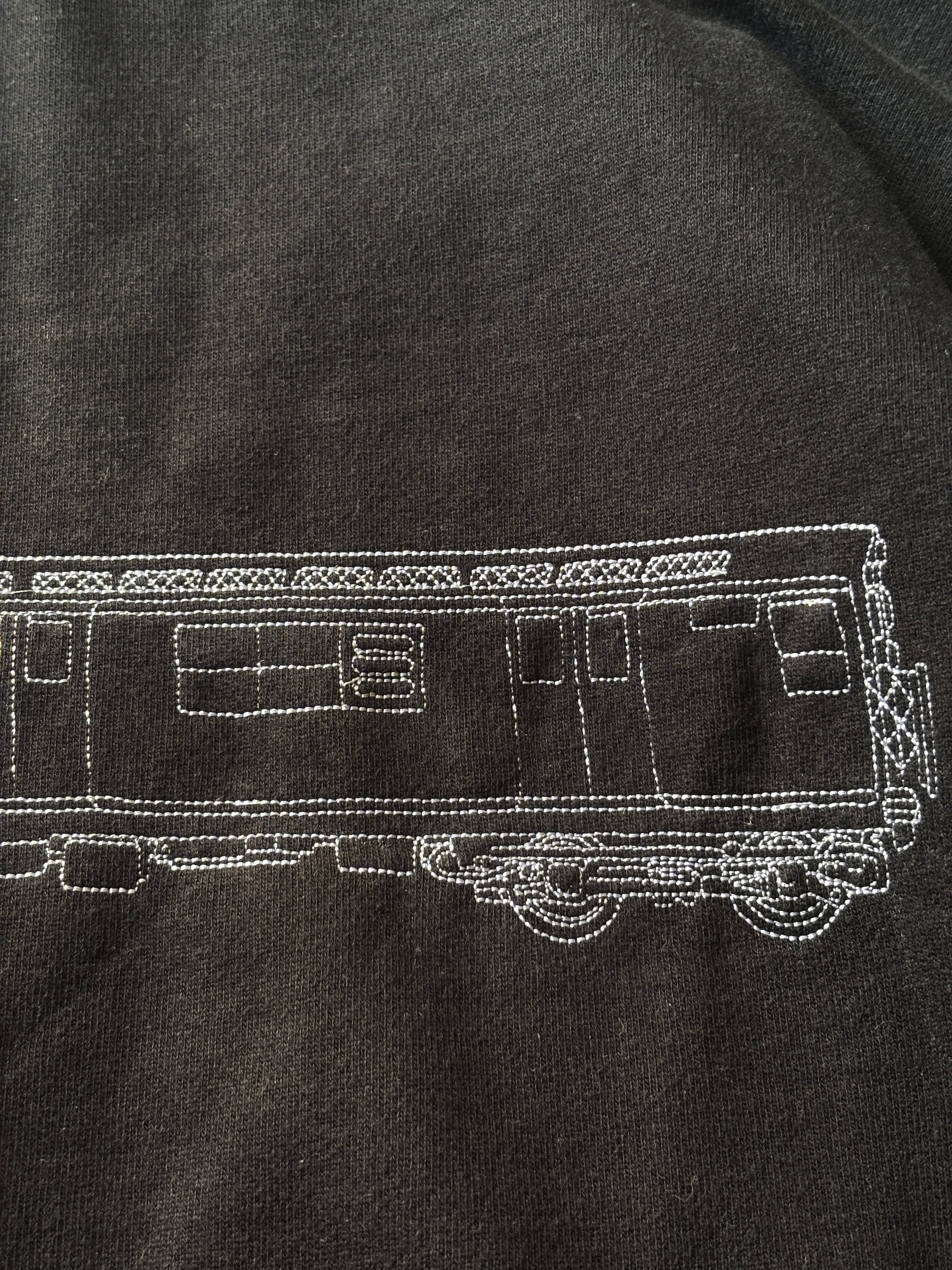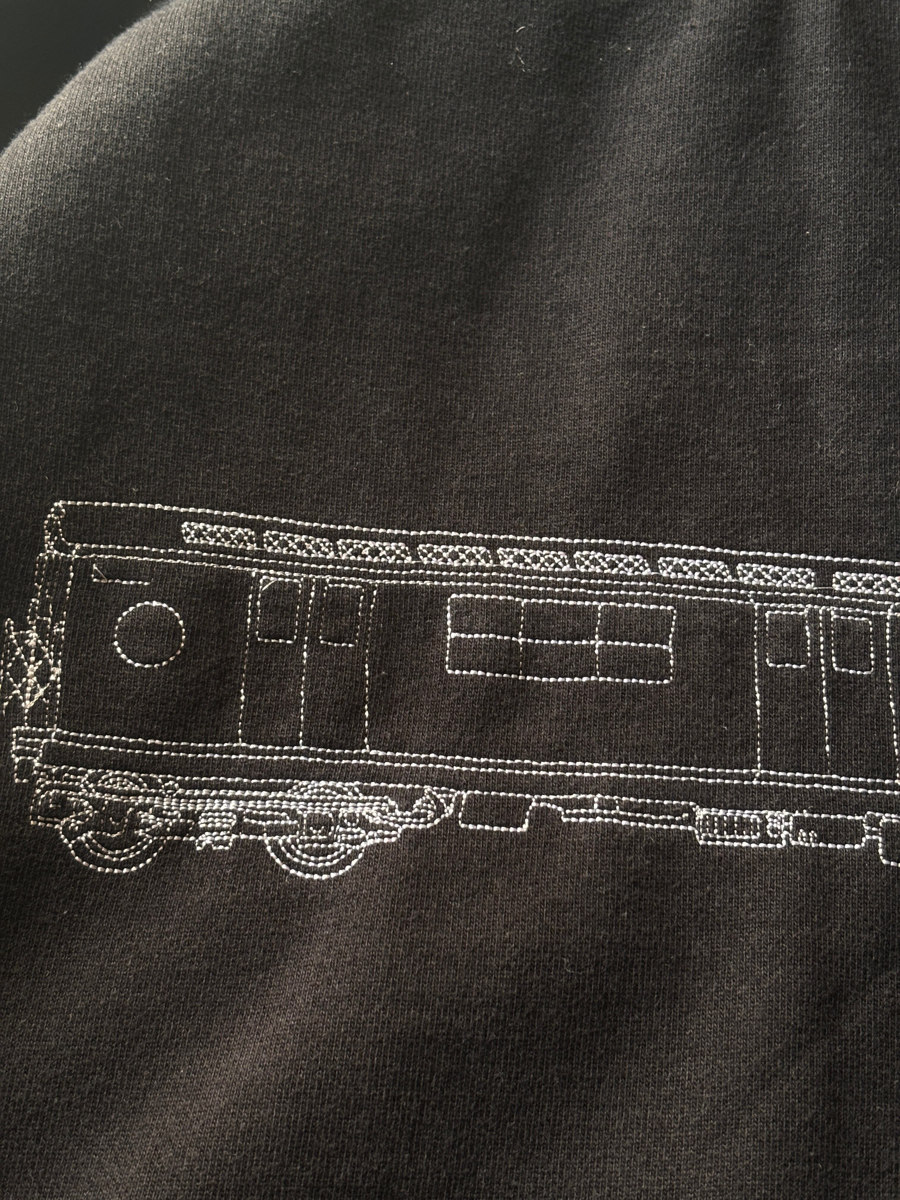 フロントに刺繍ロゴ、バックにアイコンの電車デザイン。