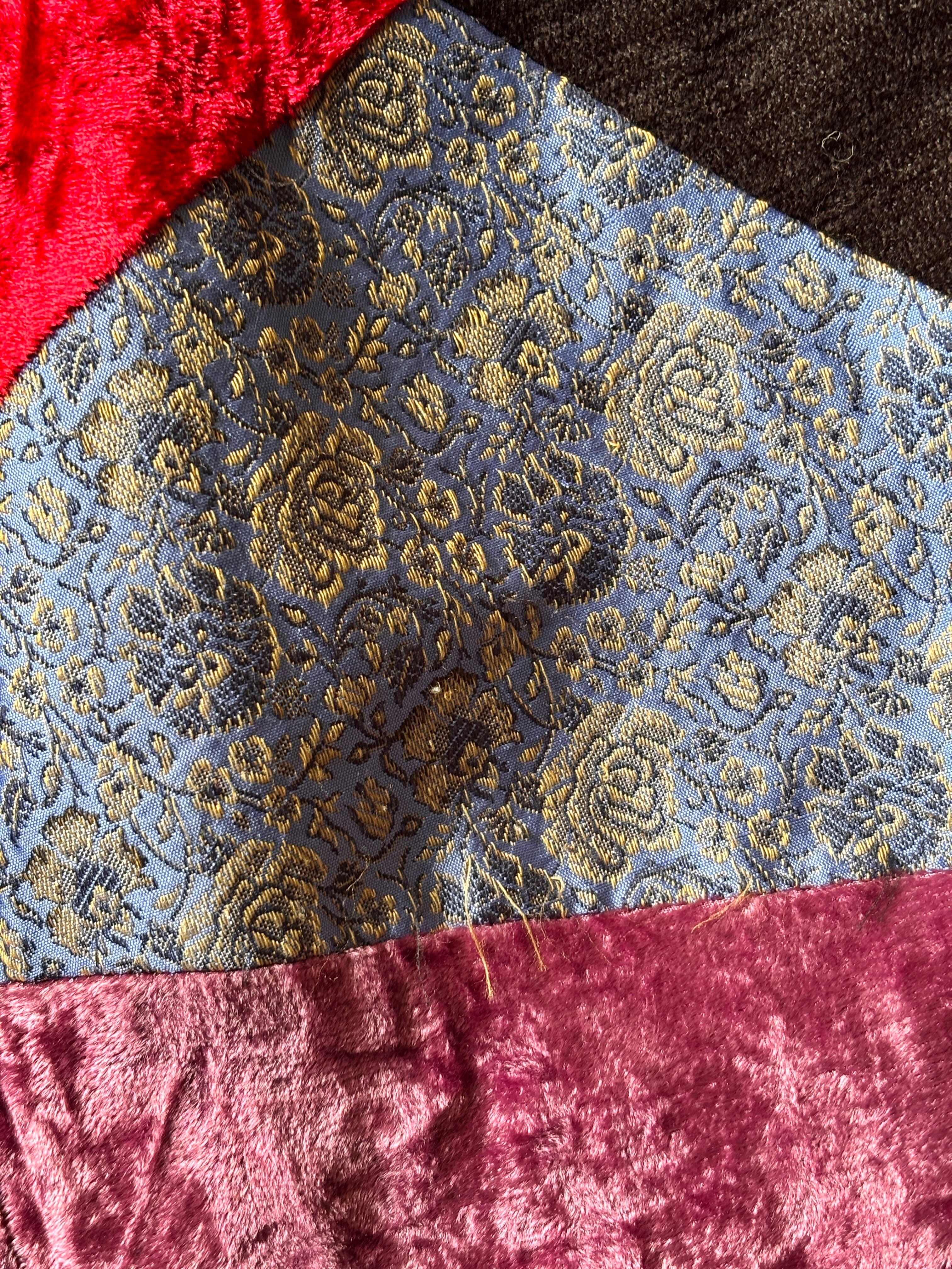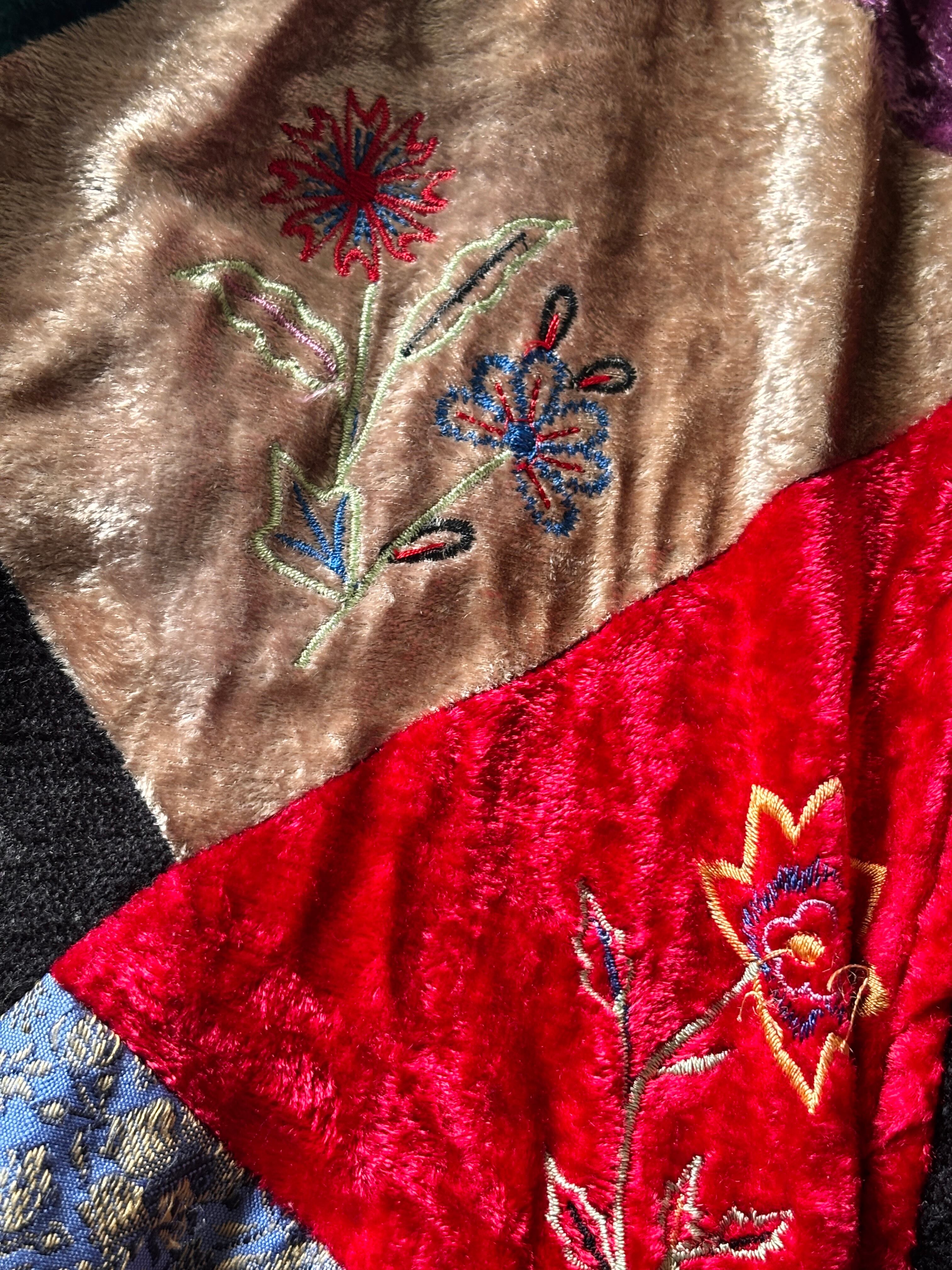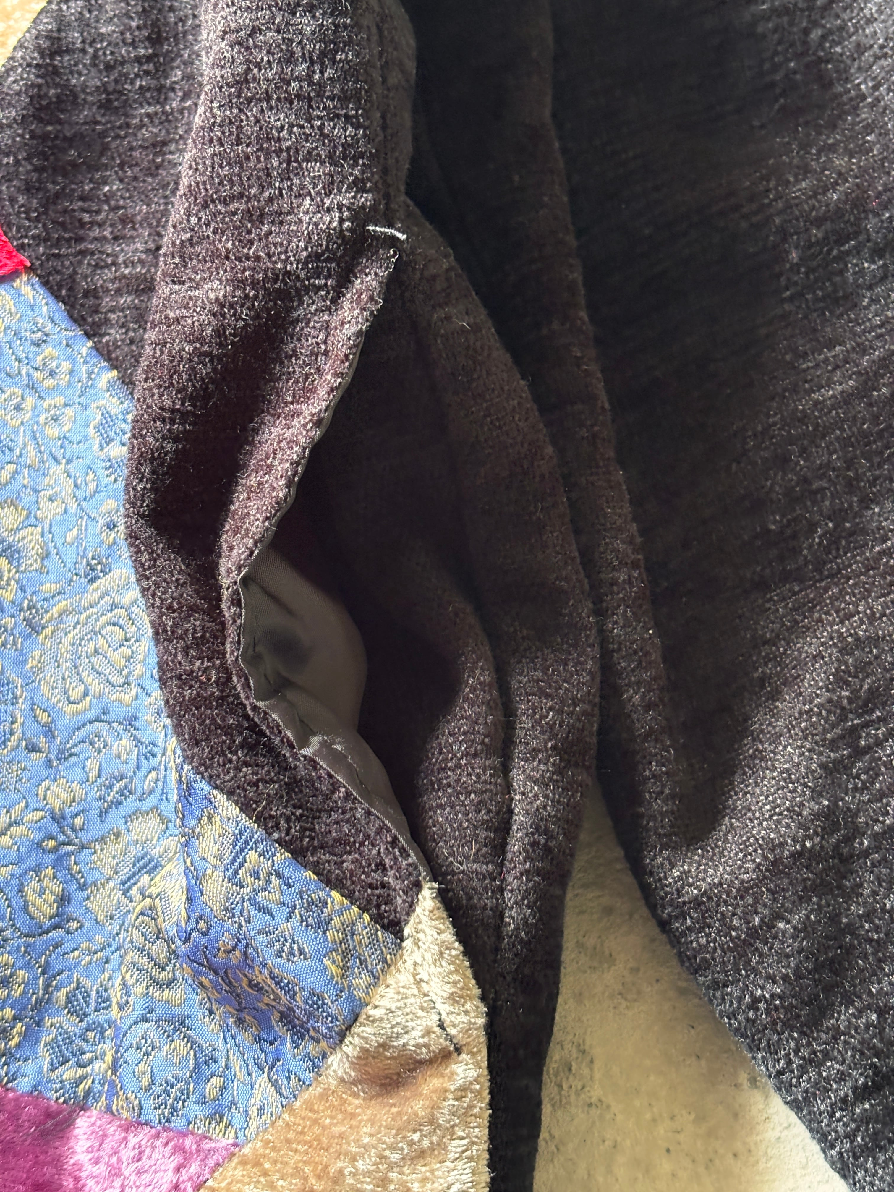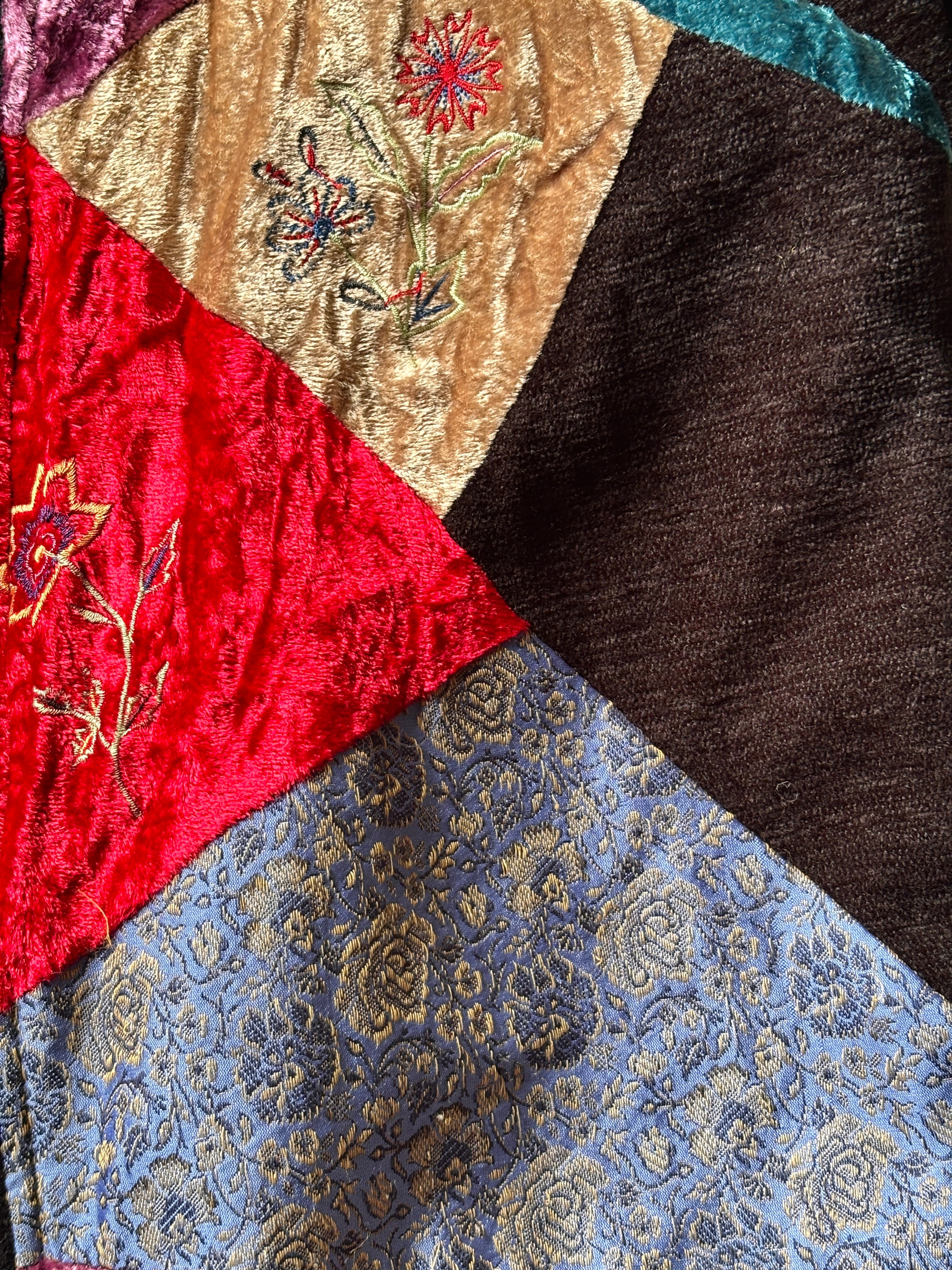 色んな柄、異素材の生地のパッチワークデザイン。
