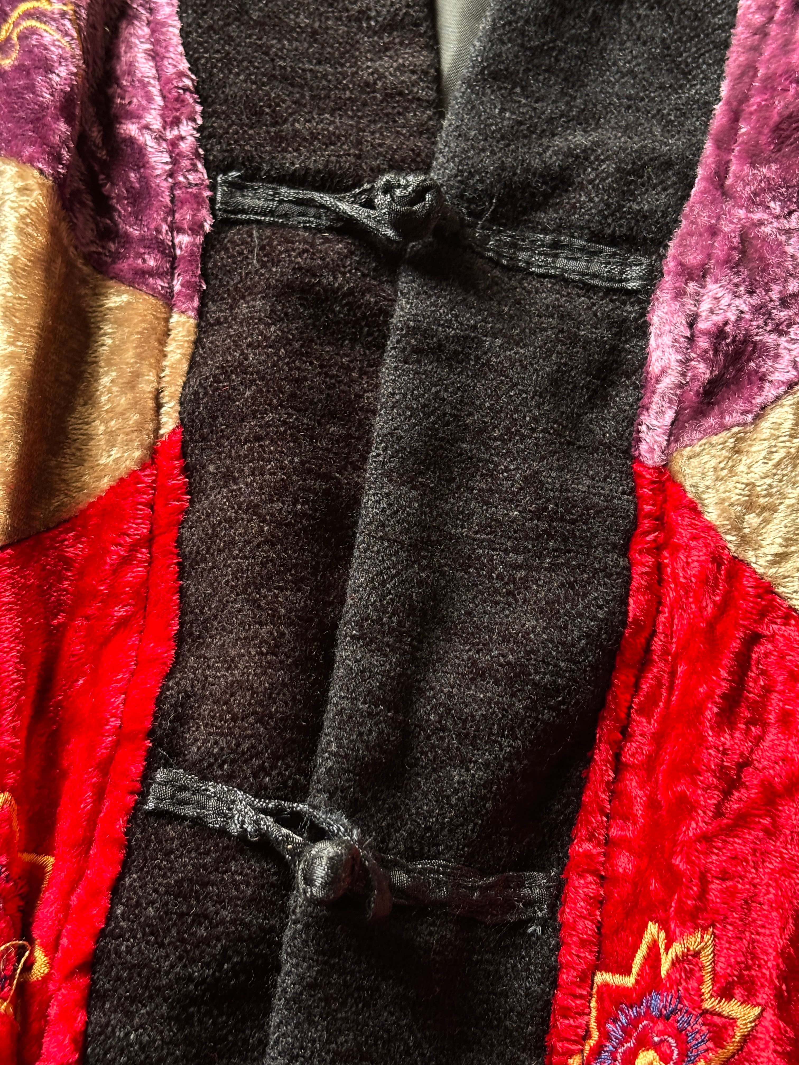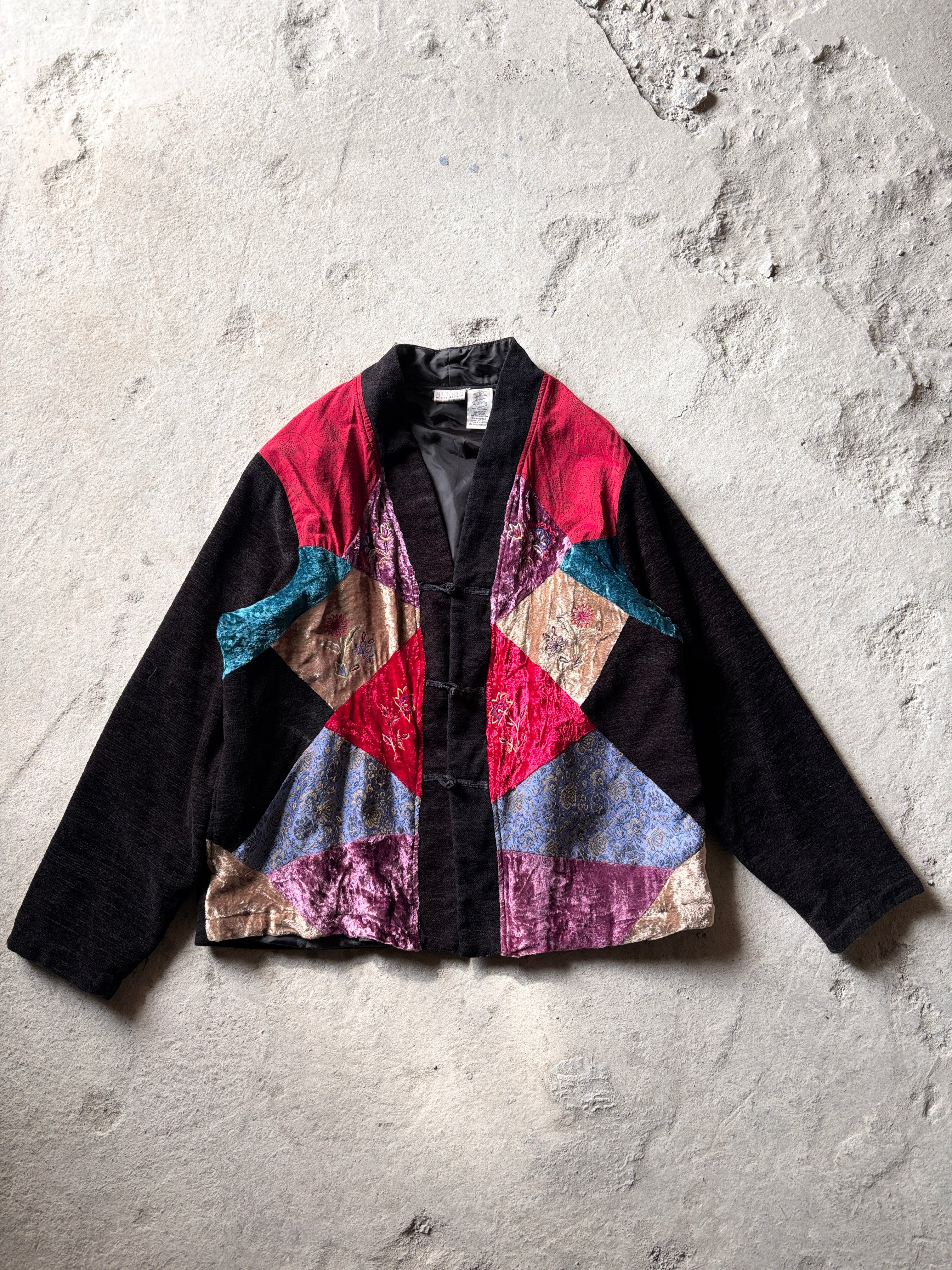 WHITE STAG/China Jacket/XL/チャイナジャケット/パッチワ-ク/カンフ-/花柄/ブラック/ホワイトスタッグ/古着