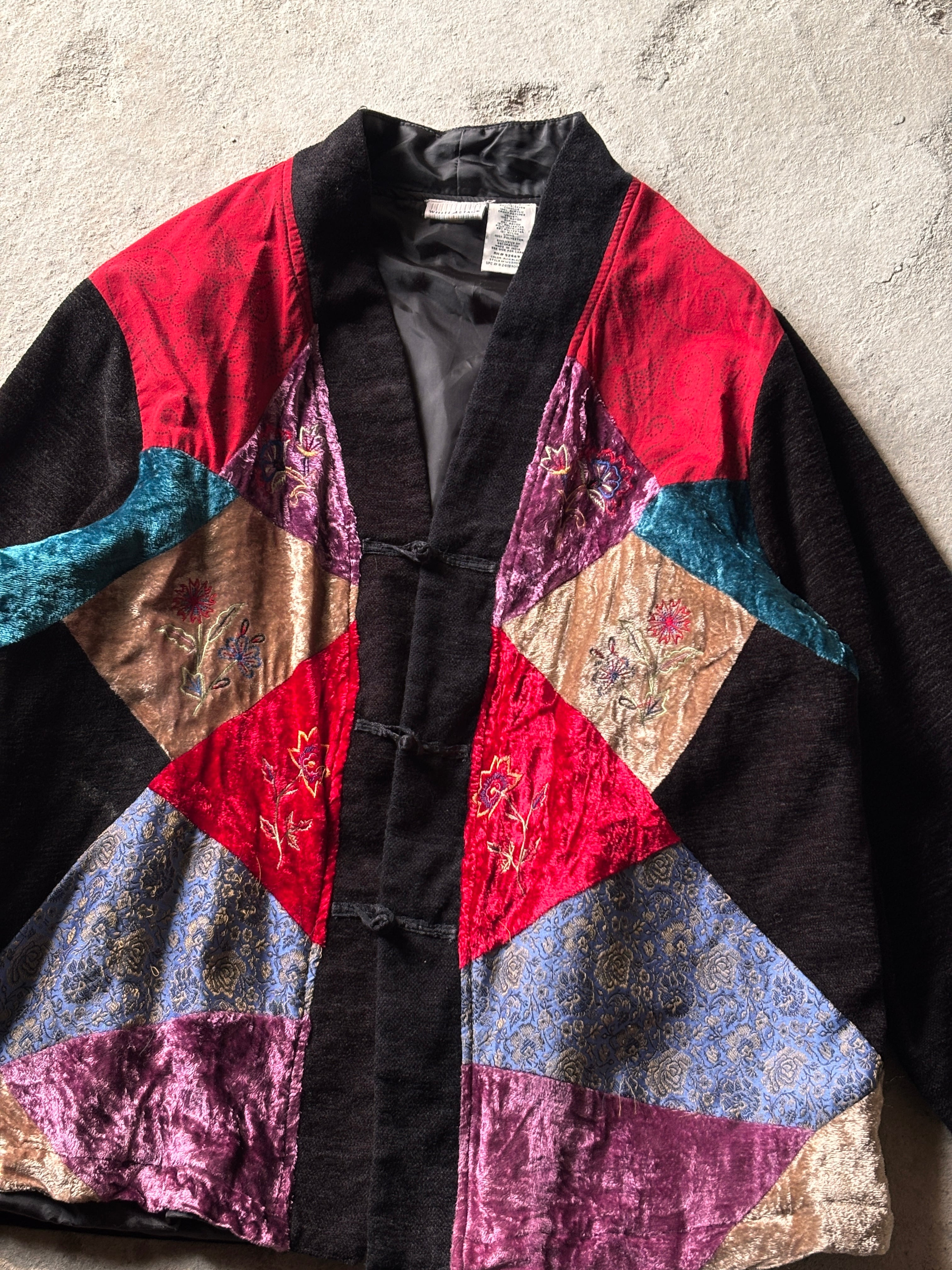 WHITE STAG/China Jacket/XL/チャイナジャケット/パッチワ-ク/カンフ-/花柄/ブラック/ホワイトスタッグ