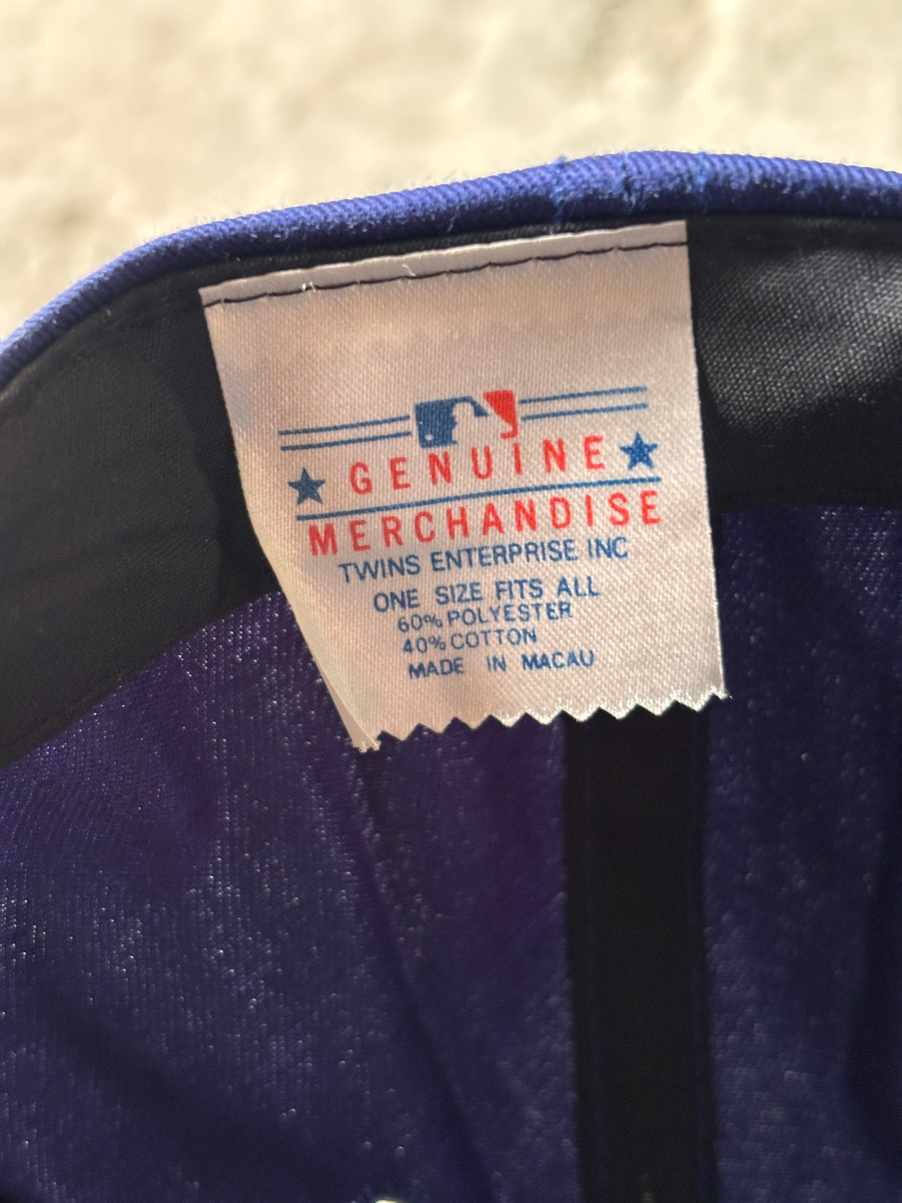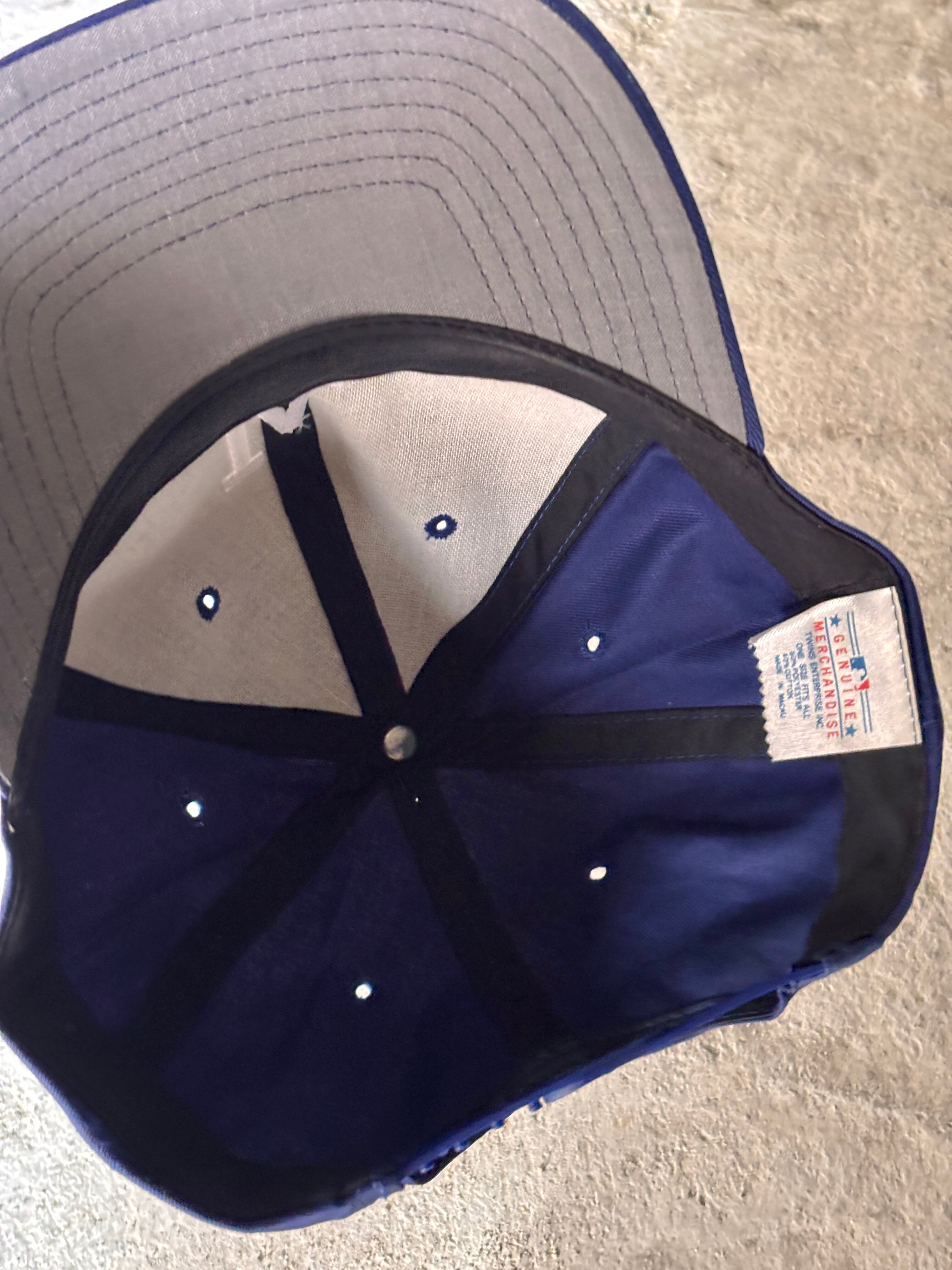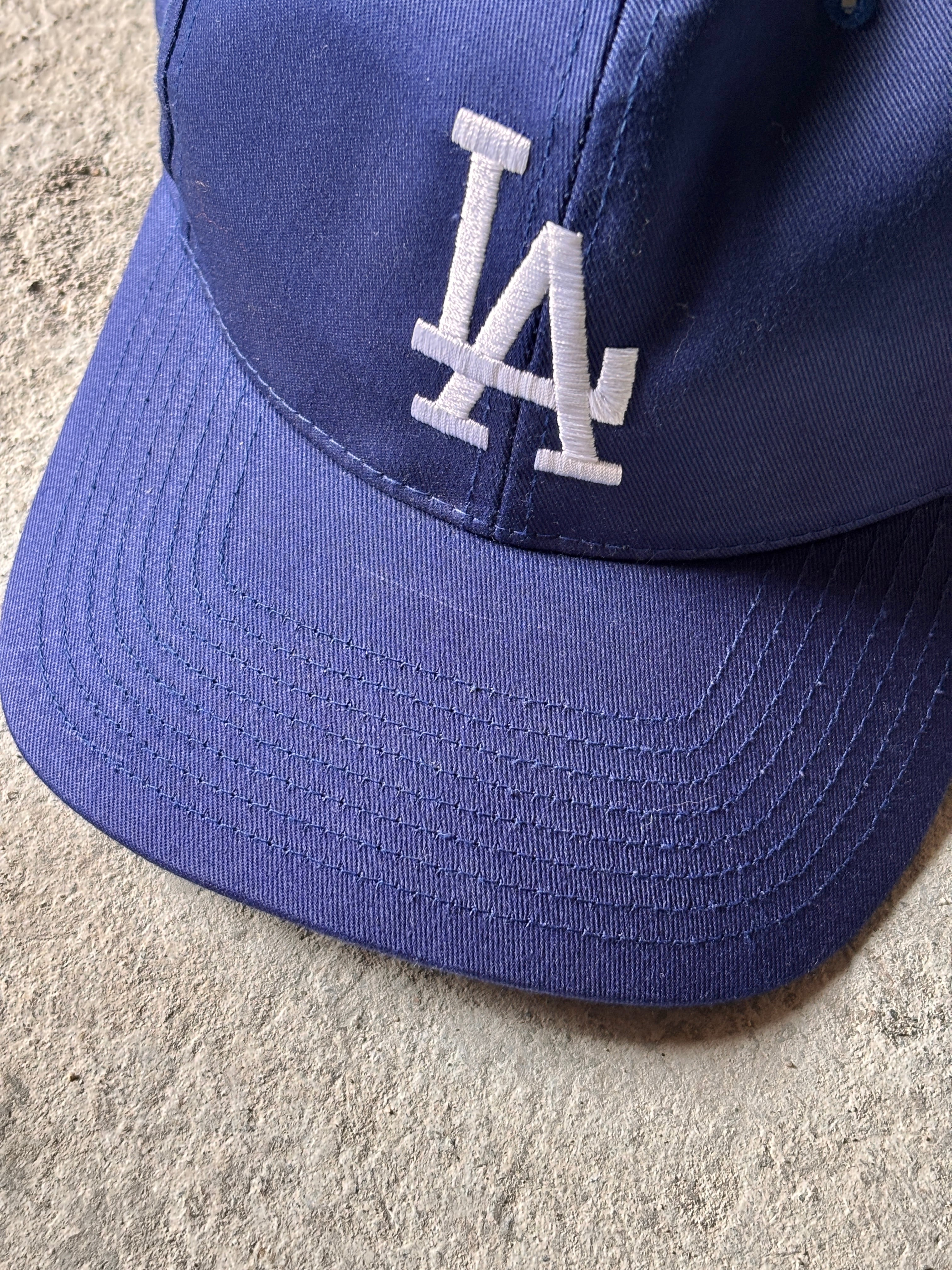 90~00s Los Angeles Dodgers Cap/Macau製/Free/ロサンゼルスドジャ-スキャップ/スナップバックキャップ/刺繍ロゴ/ブル-/MLB/古着/帽子