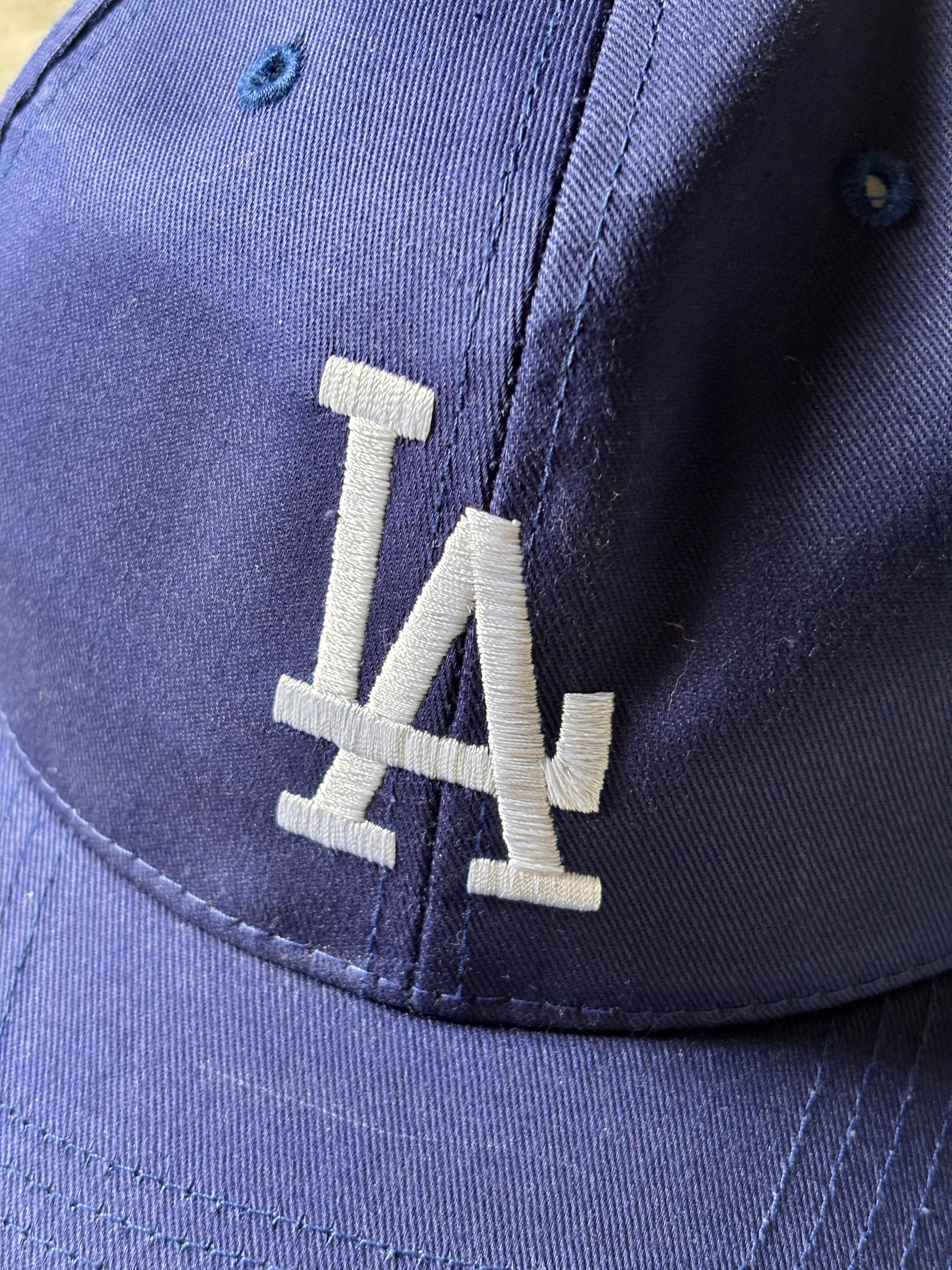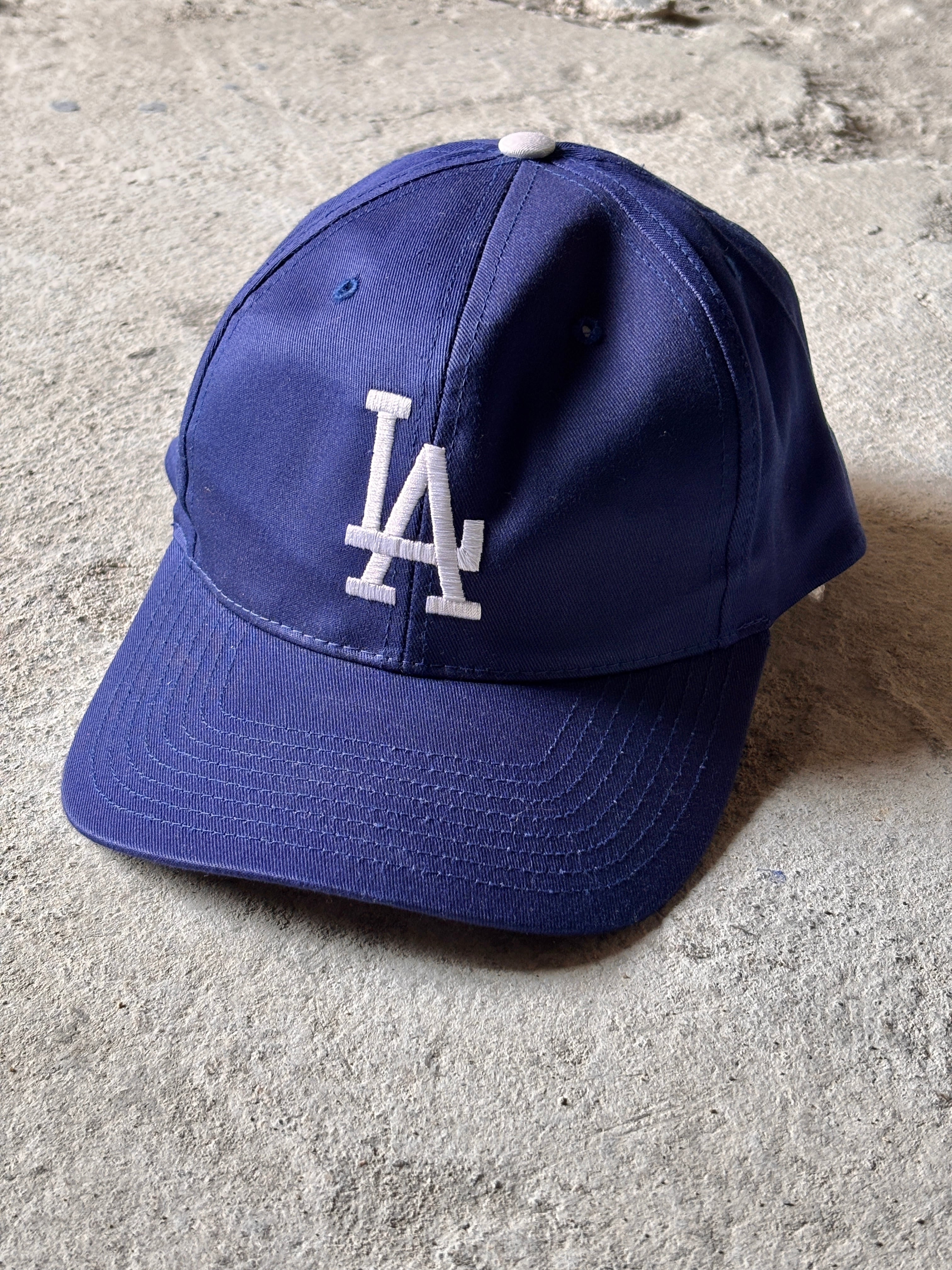 90~00s Los Angeles Dodgers Cap/Macau製/Free/ロサンゼルスドジャ-スキャップ/スナップバックキャップ/刺繍ロゴ/ブル-/MLB