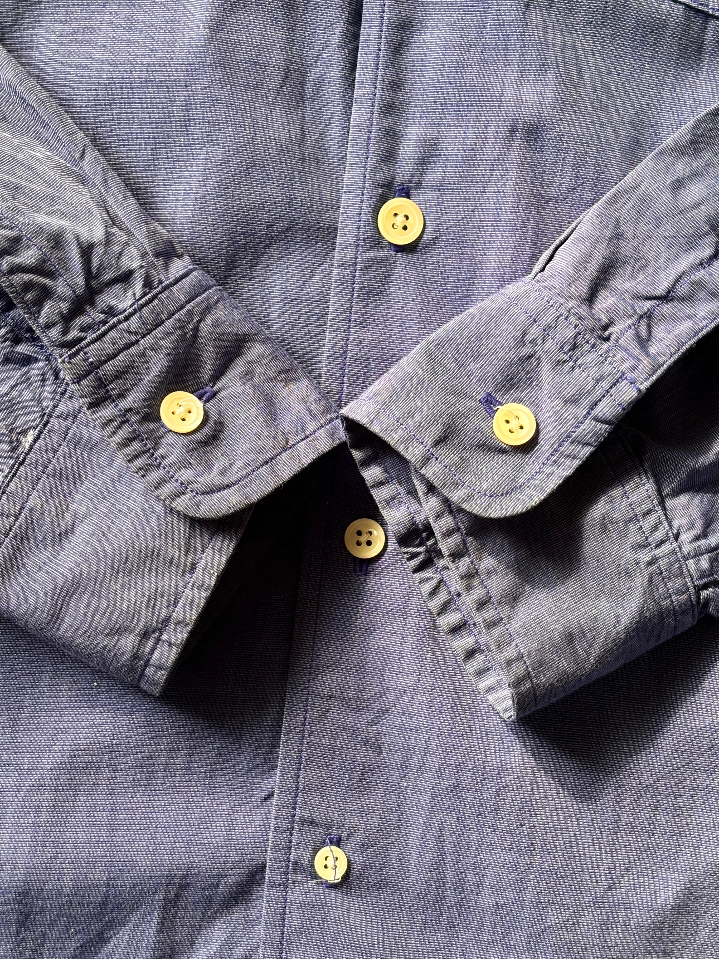 00s STUSSY DELUXE/Gradation Button Shirt/USA製/M/グラデ-ションボタンシャツ/ギャルソンシャツ復刻/長袖シャツ/ネイビ-/ステューシ-デラックス
