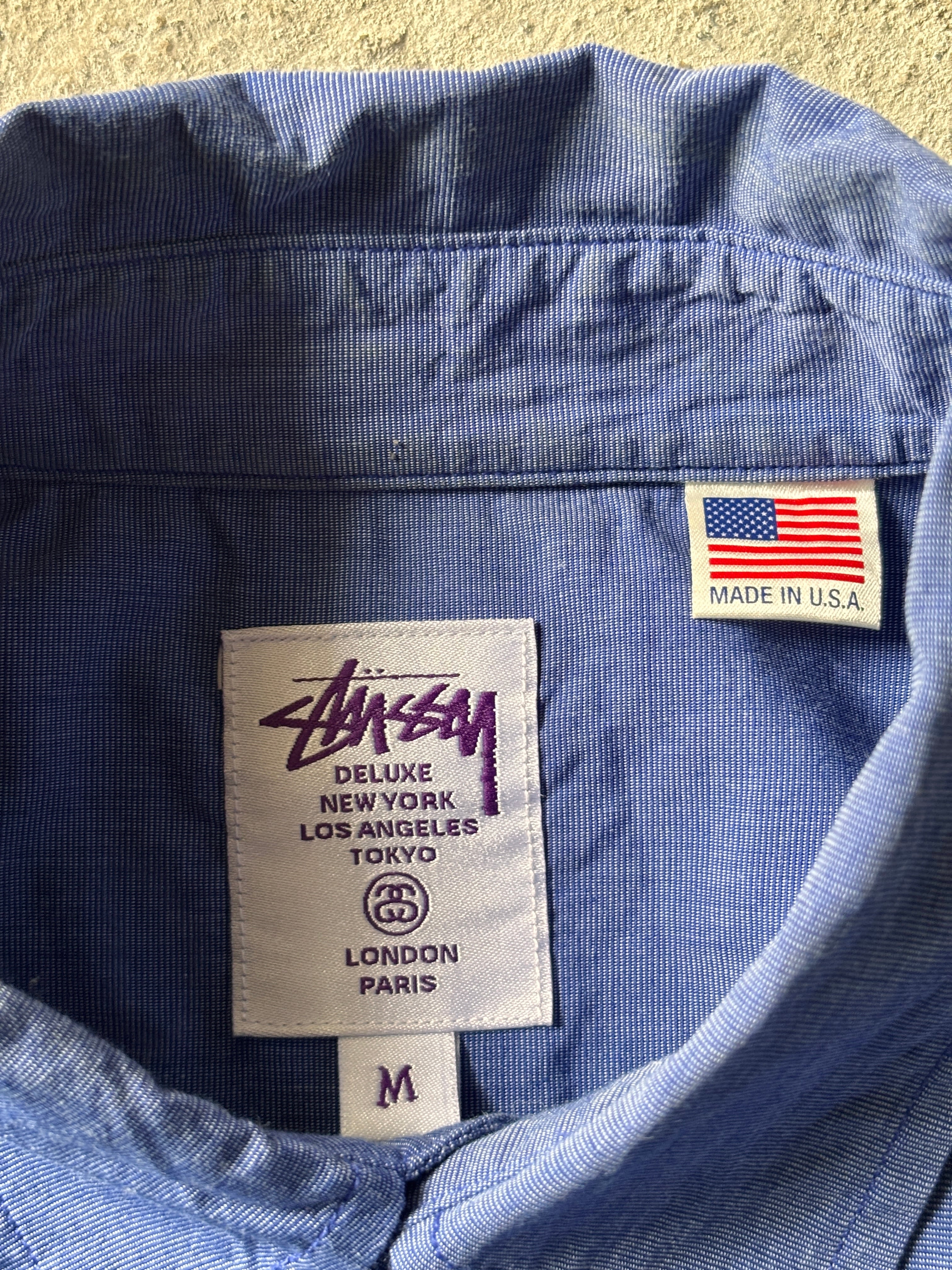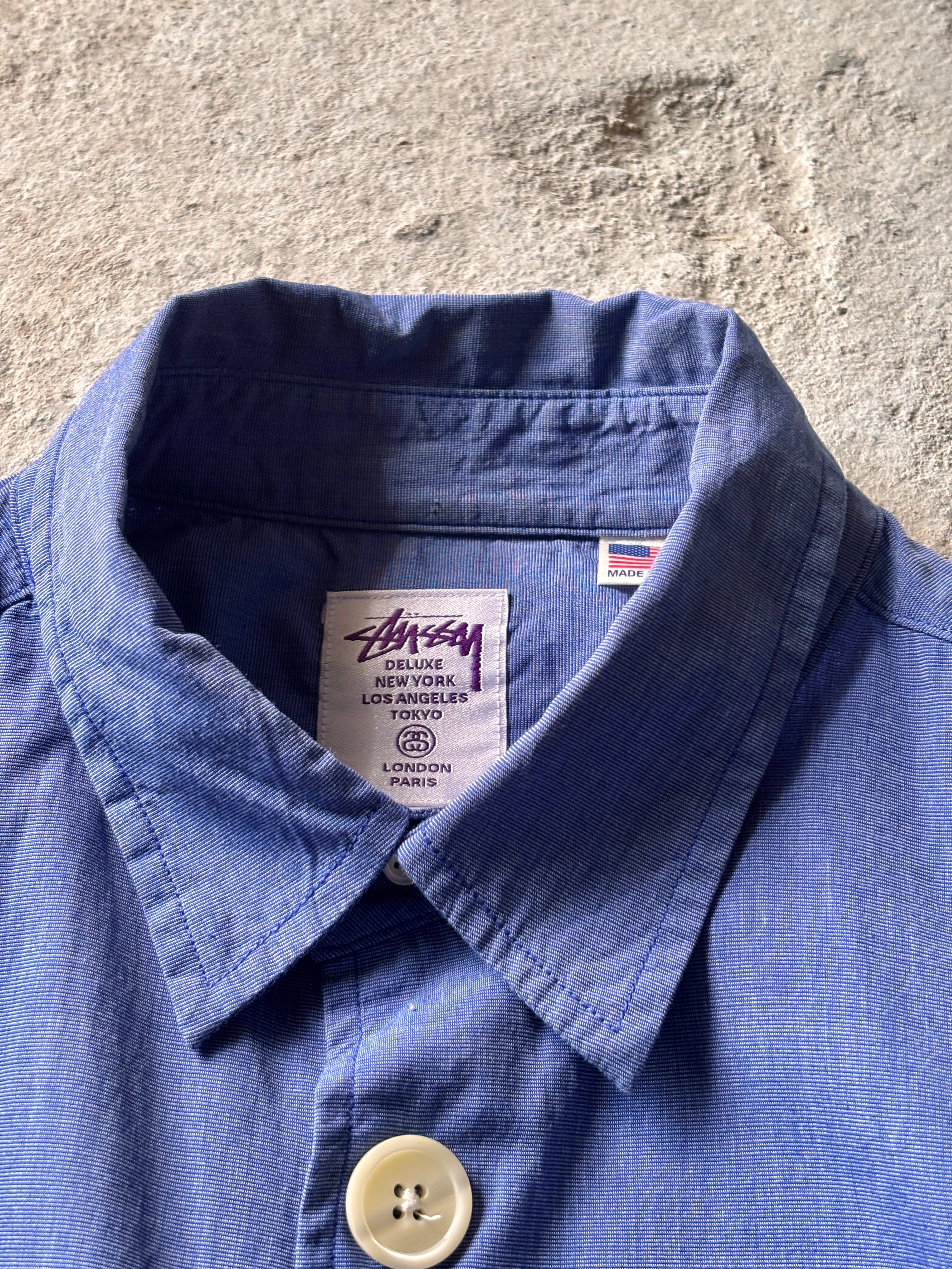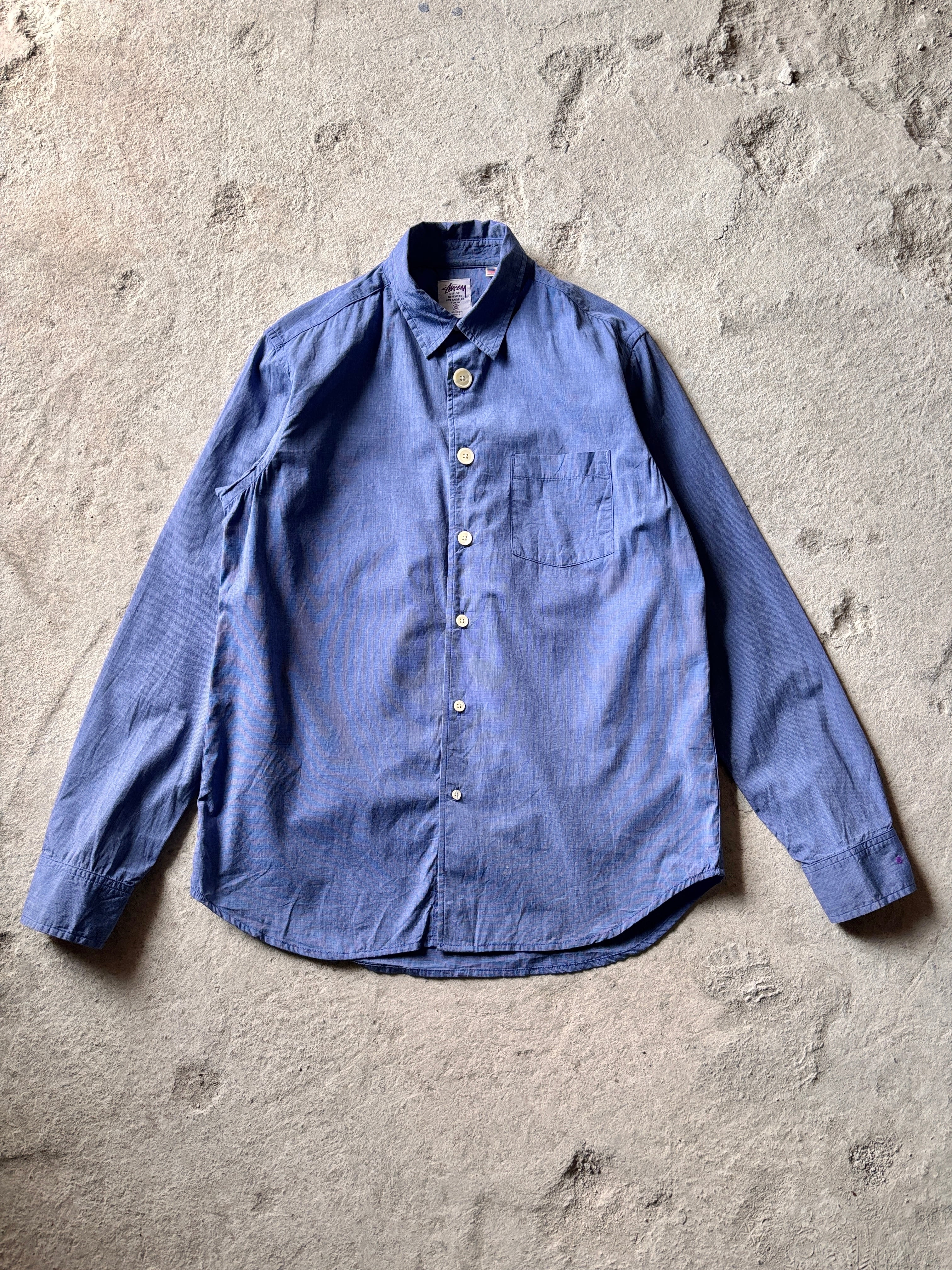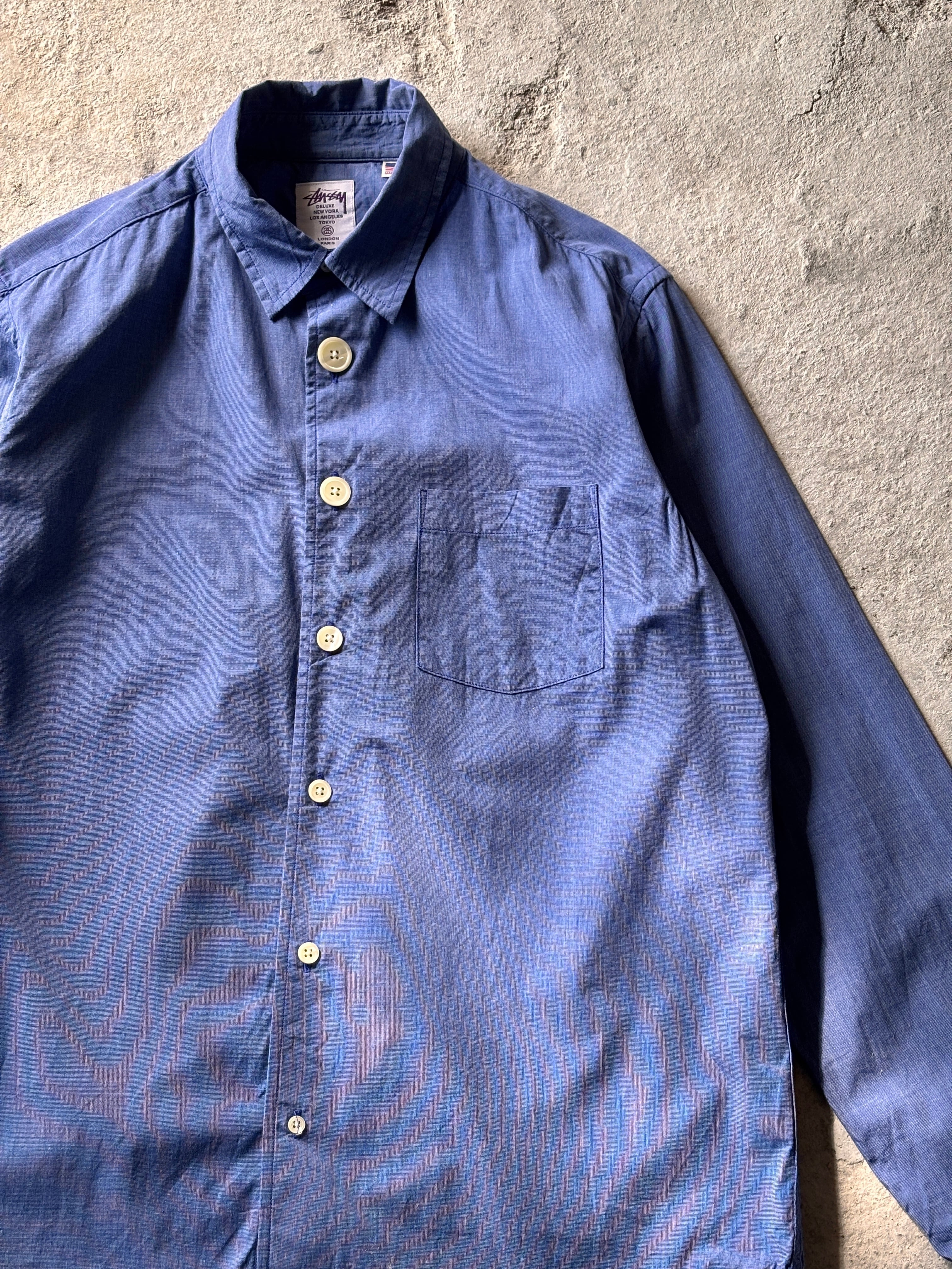 00s STUSSY DELUXE/Gradation Button Shirt/USA製/M/グラデ-ションボタンシャツ/ギャルソンシャツ復刻/長袖シャツ/ネイビ-/ステューシ-デラックス/古着/ア―カイブ