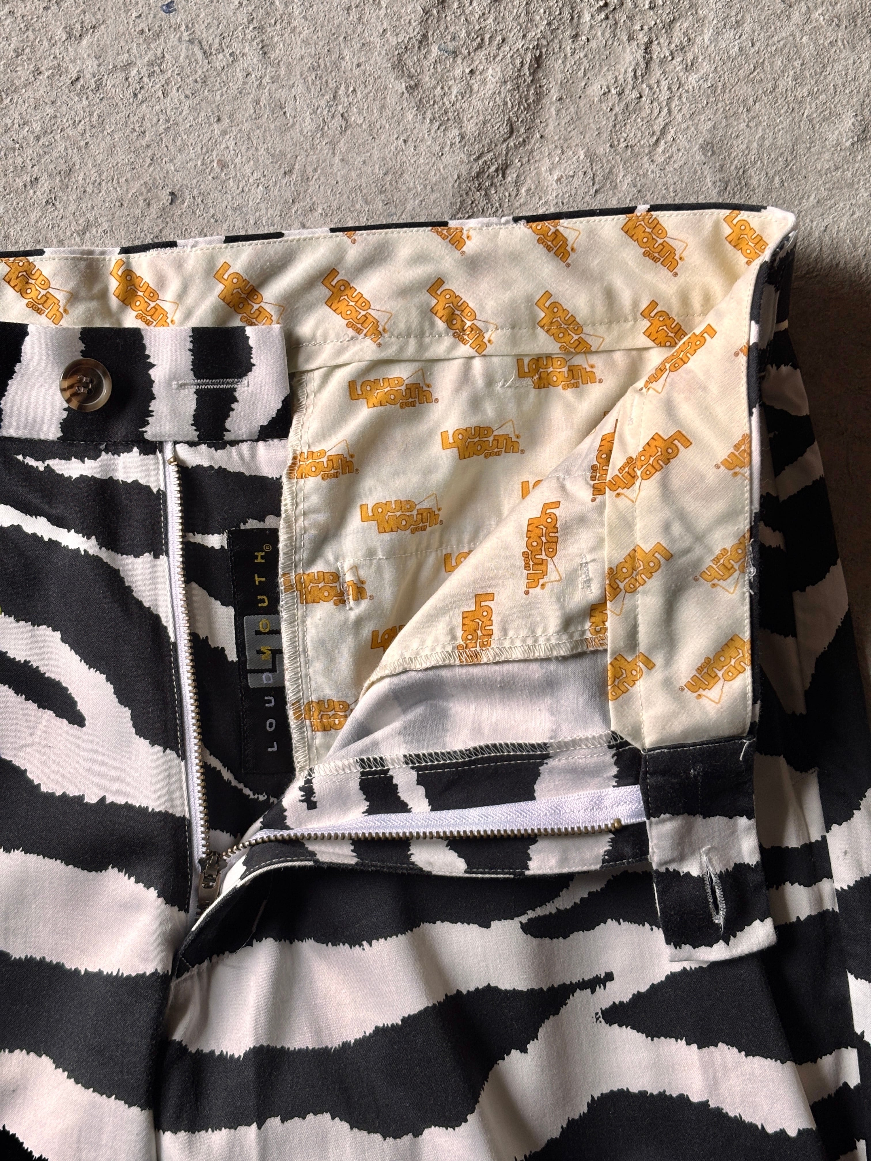 LOUDMOUTH/Zebra print Slacks pants/W34/L34/ゼブラ柄スラックスパンツ/ボトム/ブラック/ホワイト/ラウドマウス/ゴルフウェア