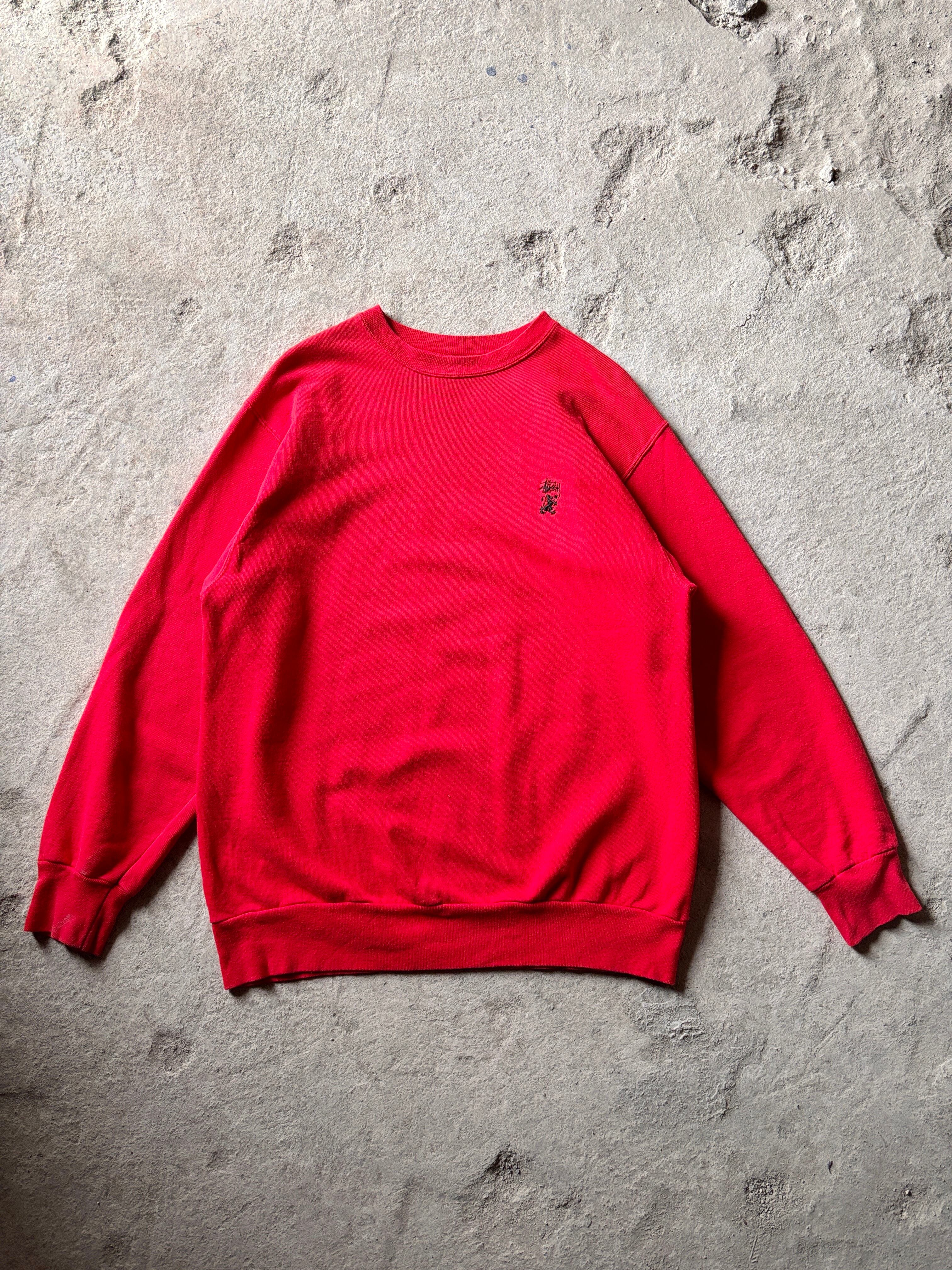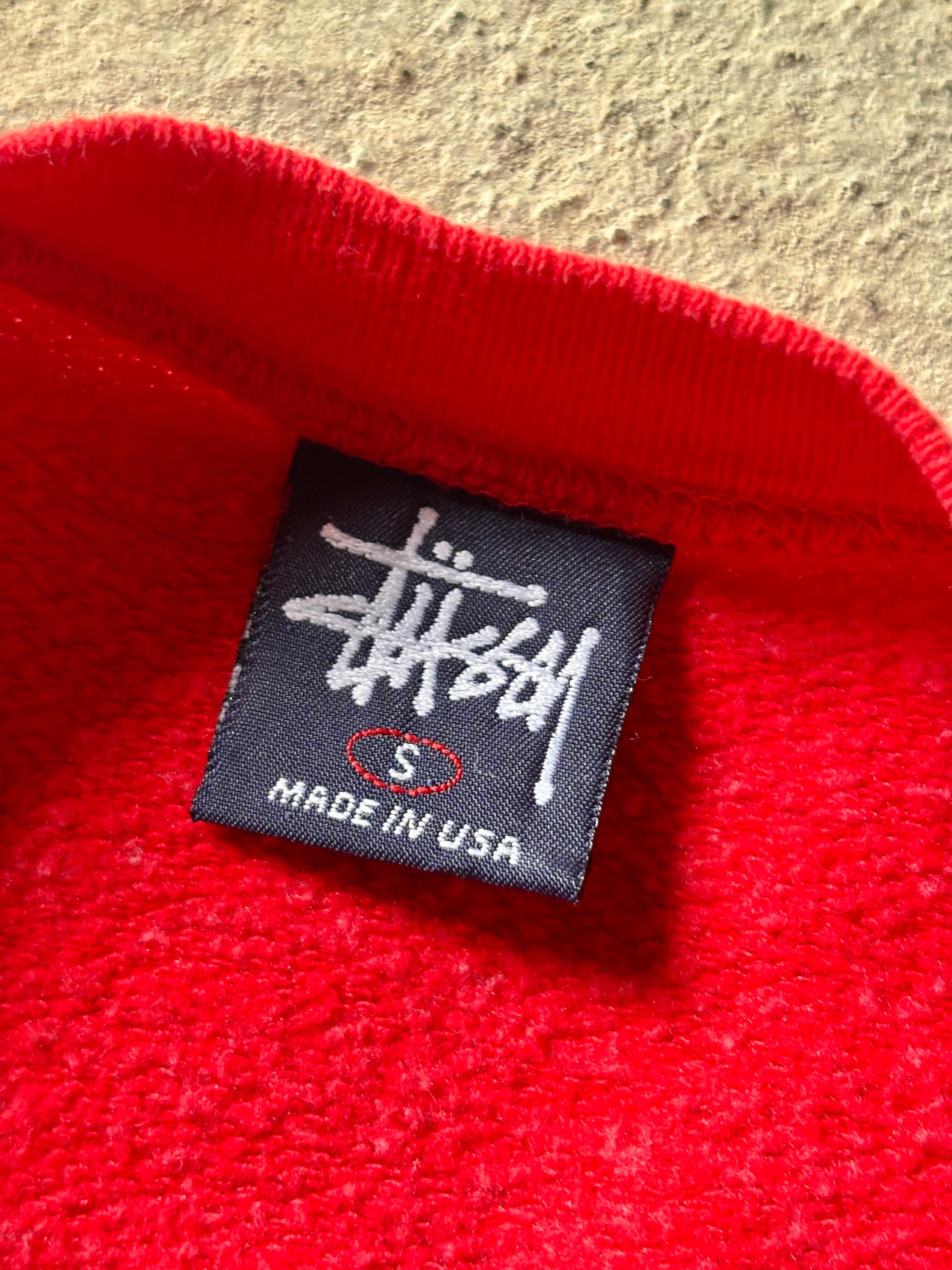 90~00s OLD STUSSY/Logo embroidery Sweat/USA製/紺タグ/S/刺繍ロゴスウェット/グリフィン/ストックロゴ/レッド/ステューシー/オ-ルドステューシー/古着/ア―カイブ