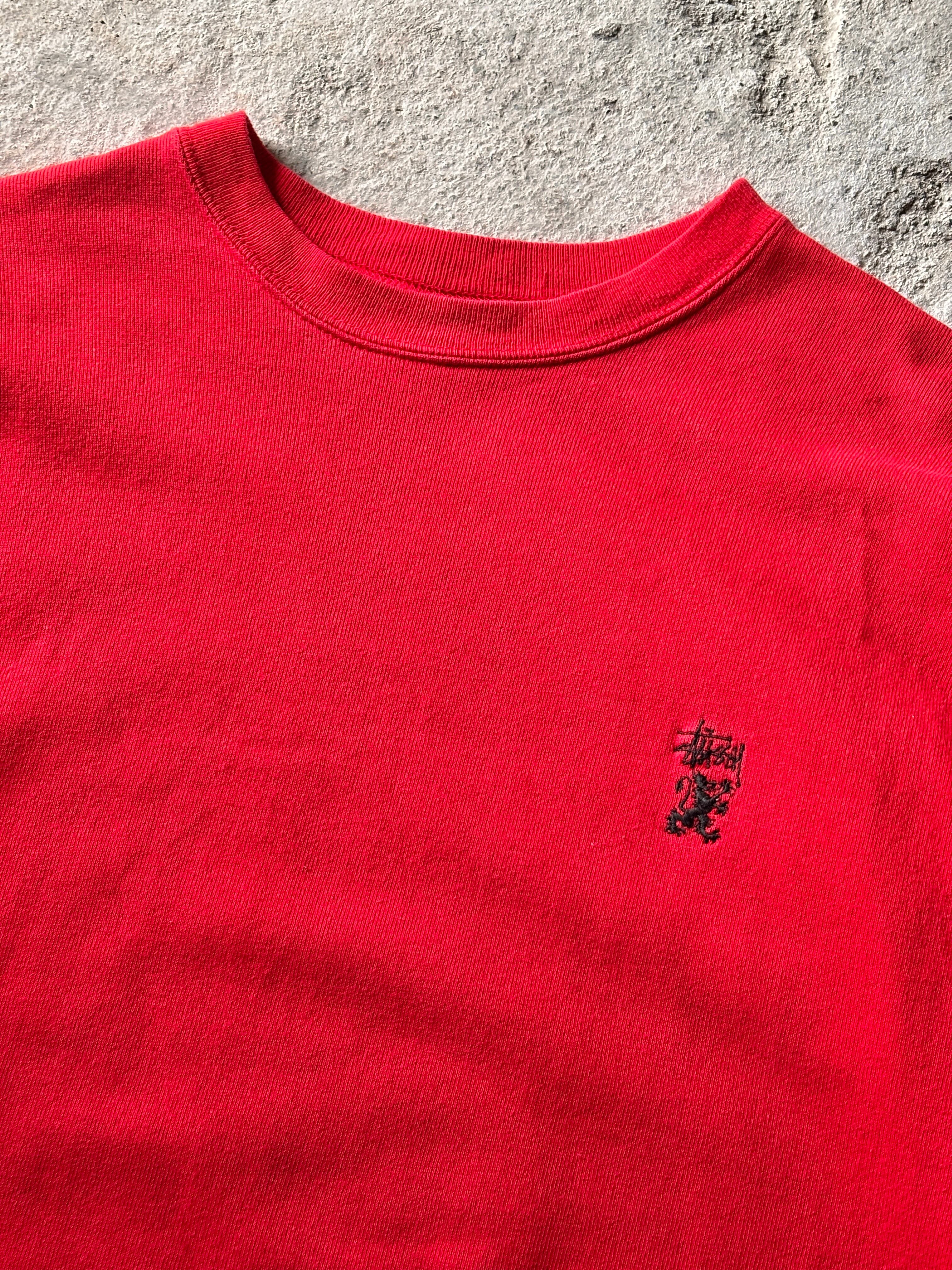 90~00s OLD STUSSY/Logo embroidery Sweat/USA製/紺タグ/S/刺繍ロゴスウェット/グリフィン/ストックロゴ/レッド/ステューシー/オ-ルドステューシー