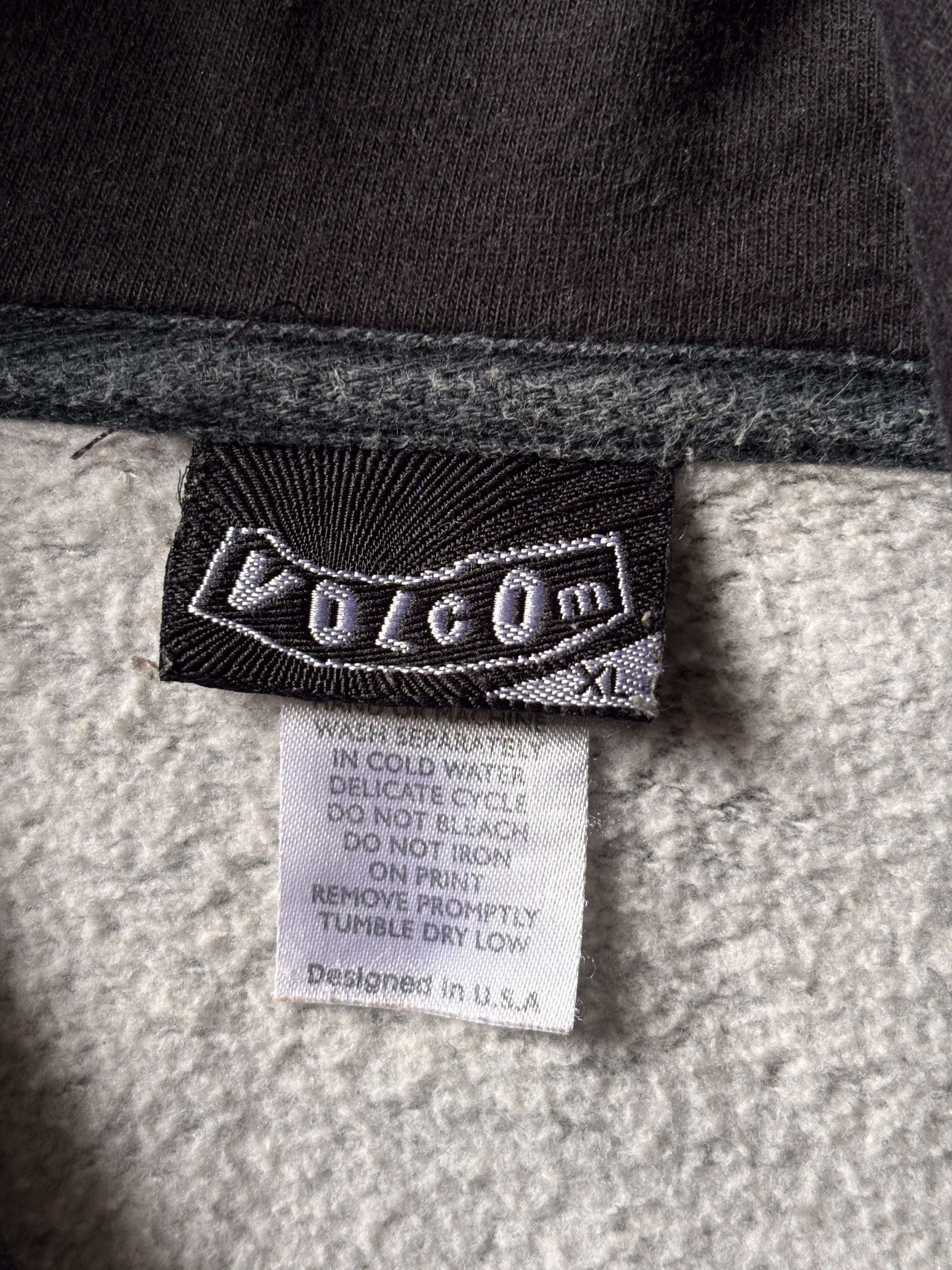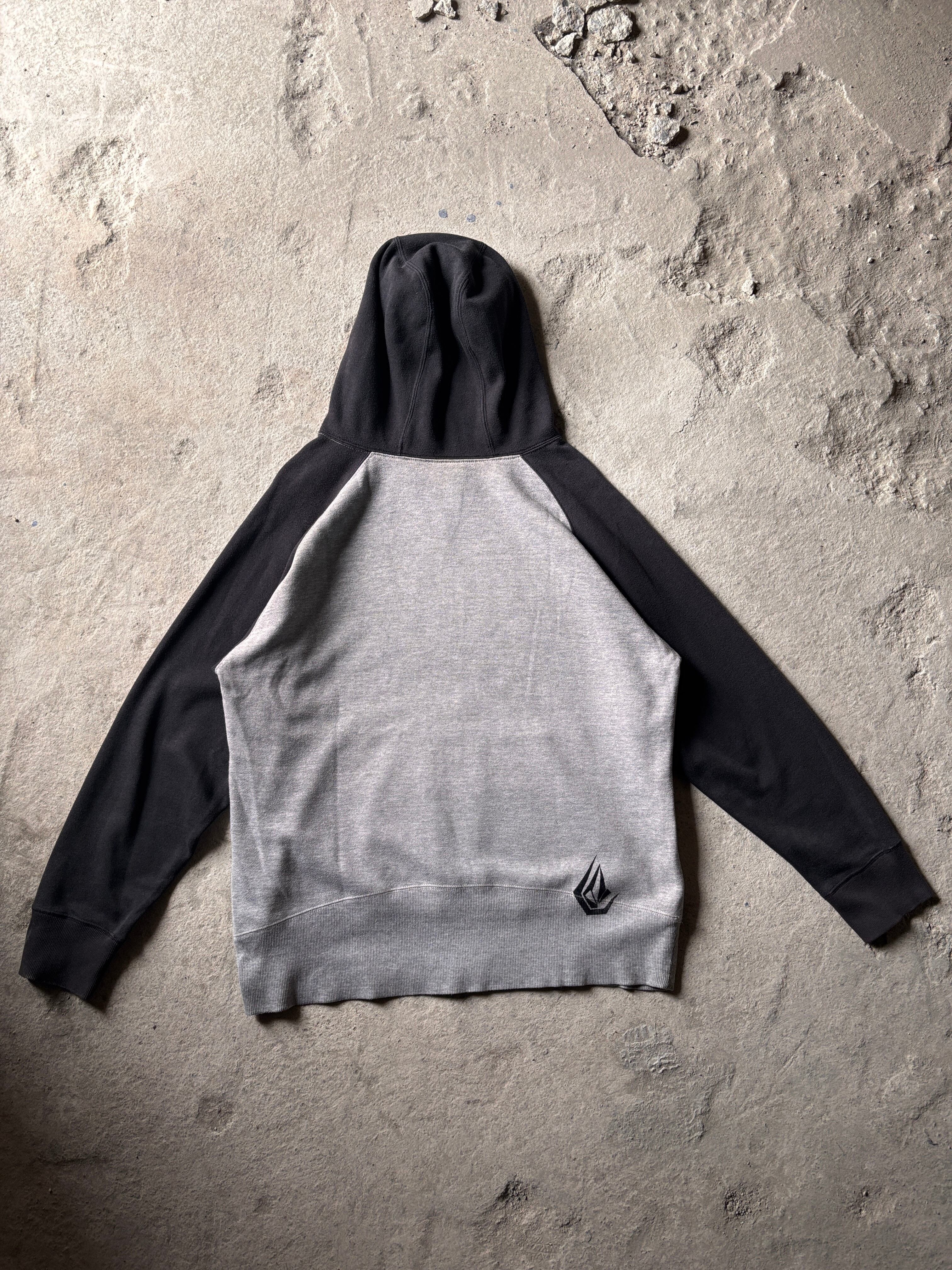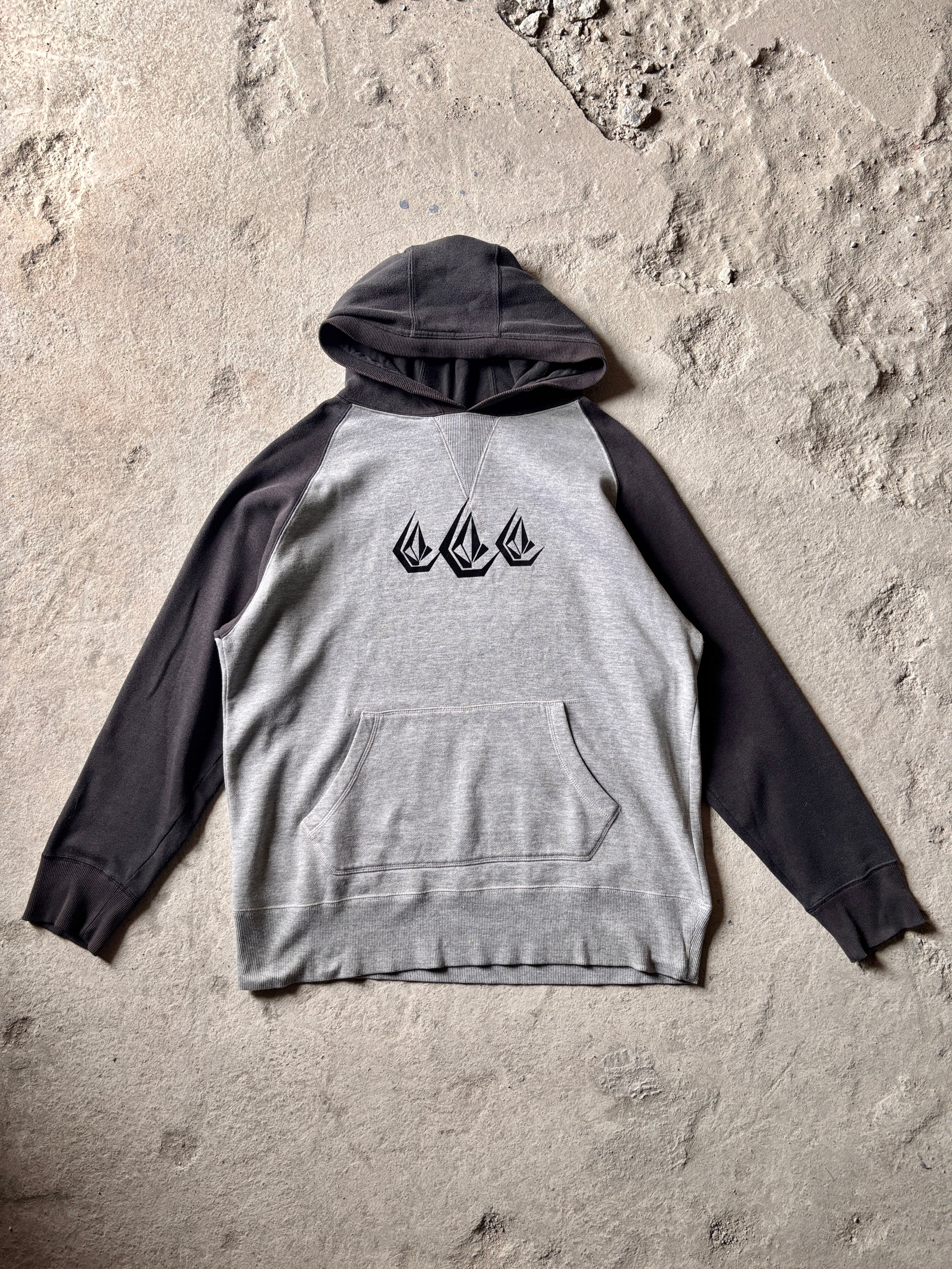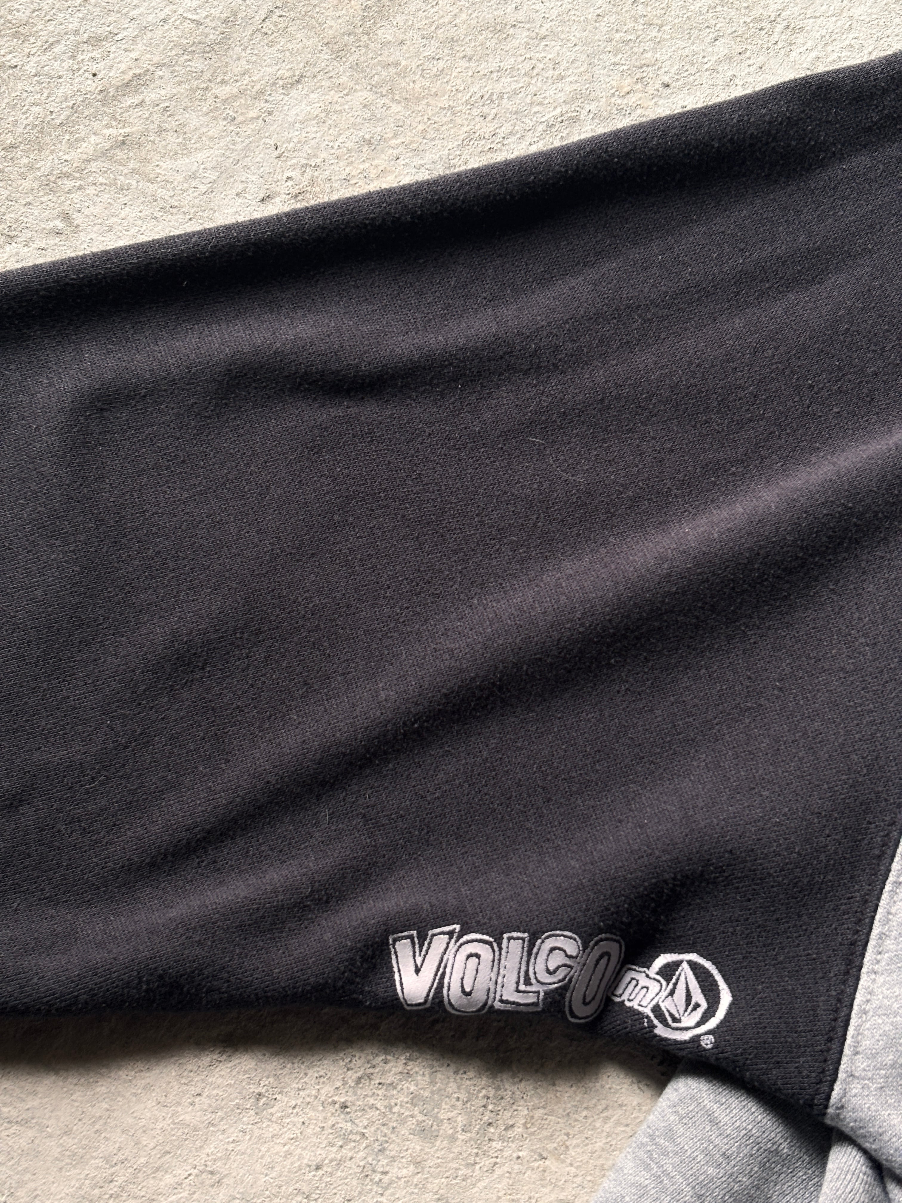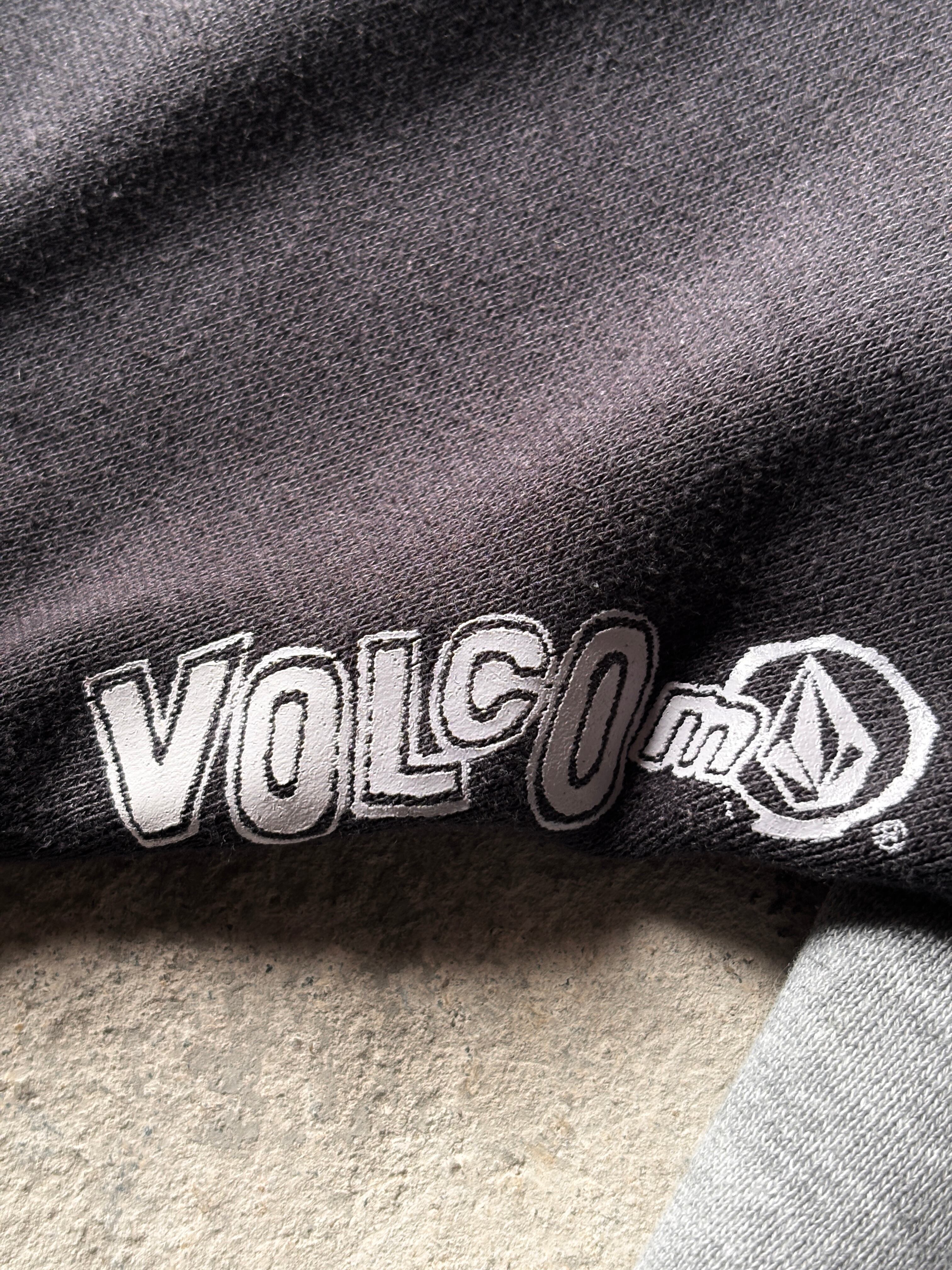 00s VOLCOM/Logo print Hoodie/XL/ロゴプリントフ-ディ-/パ-カ-/ラグラン/グレ-/ブラック/ボルコム