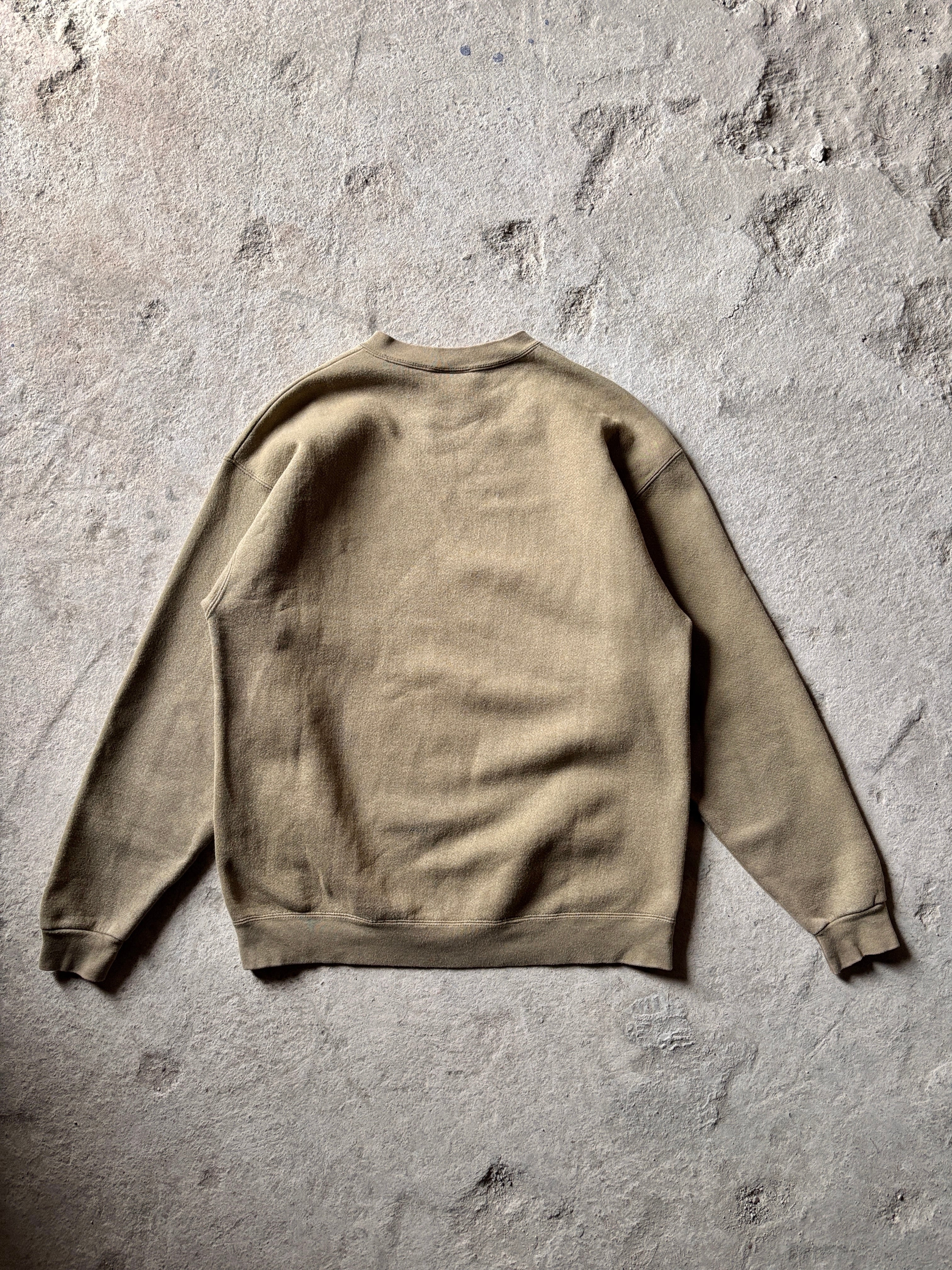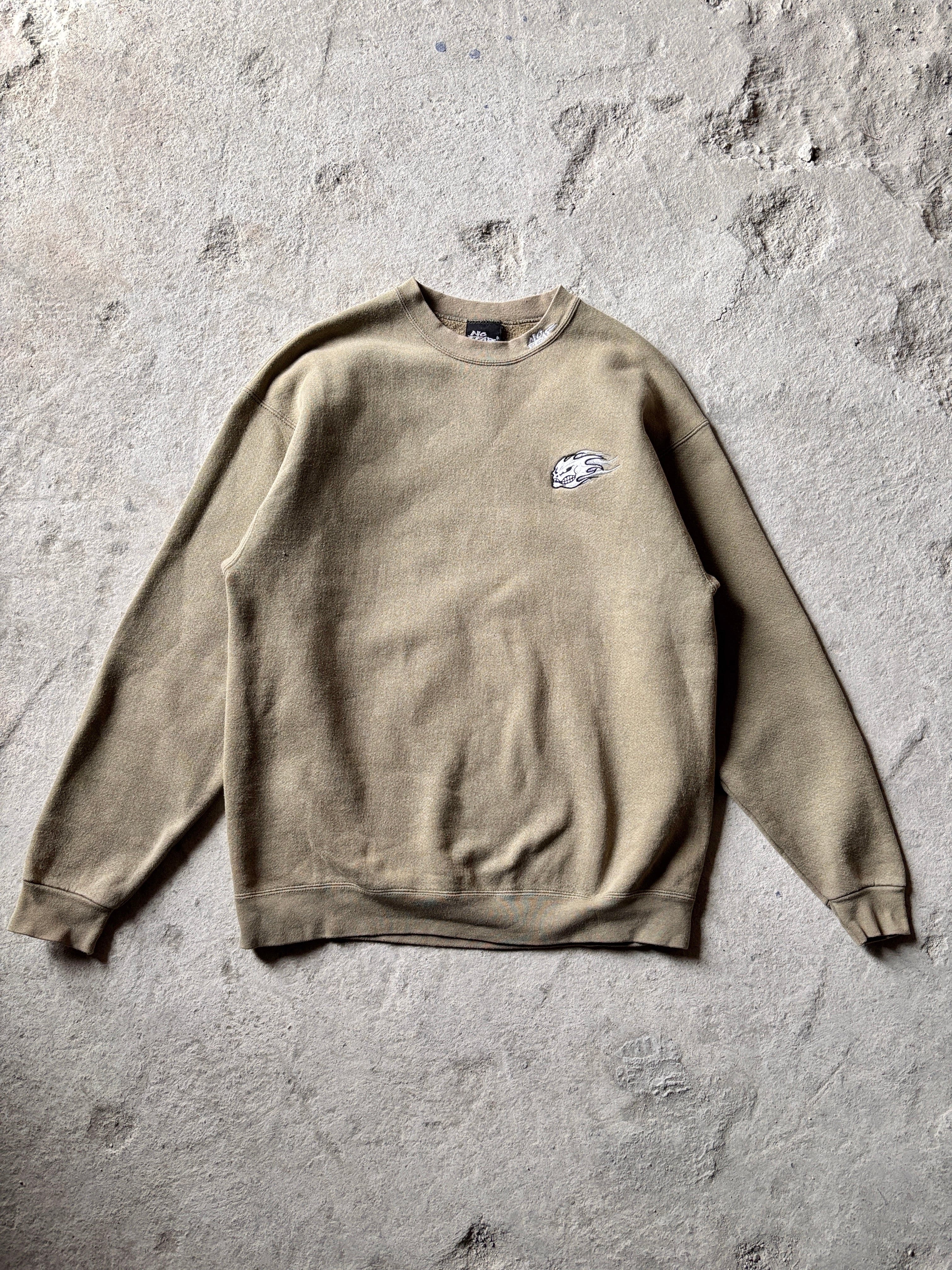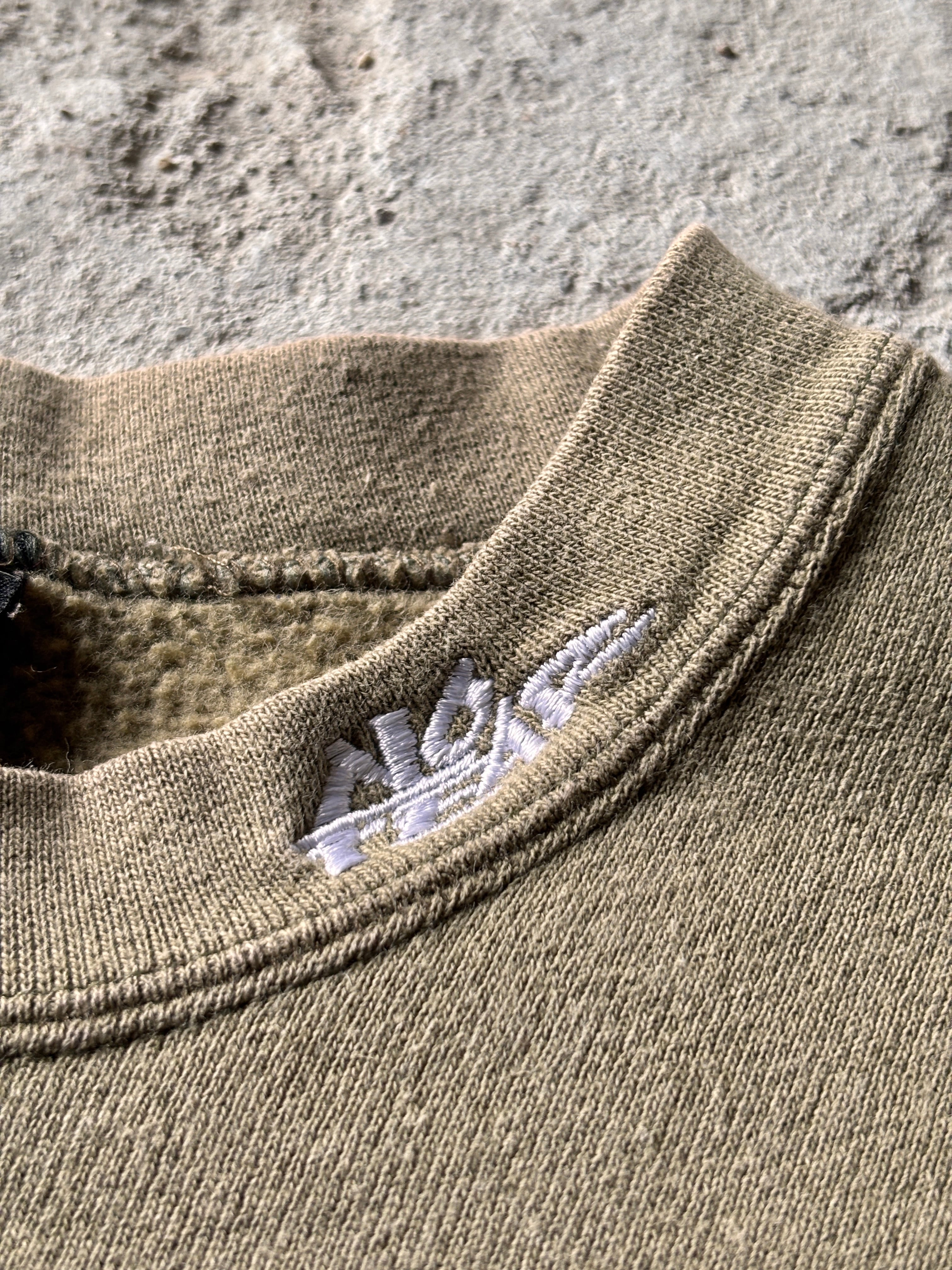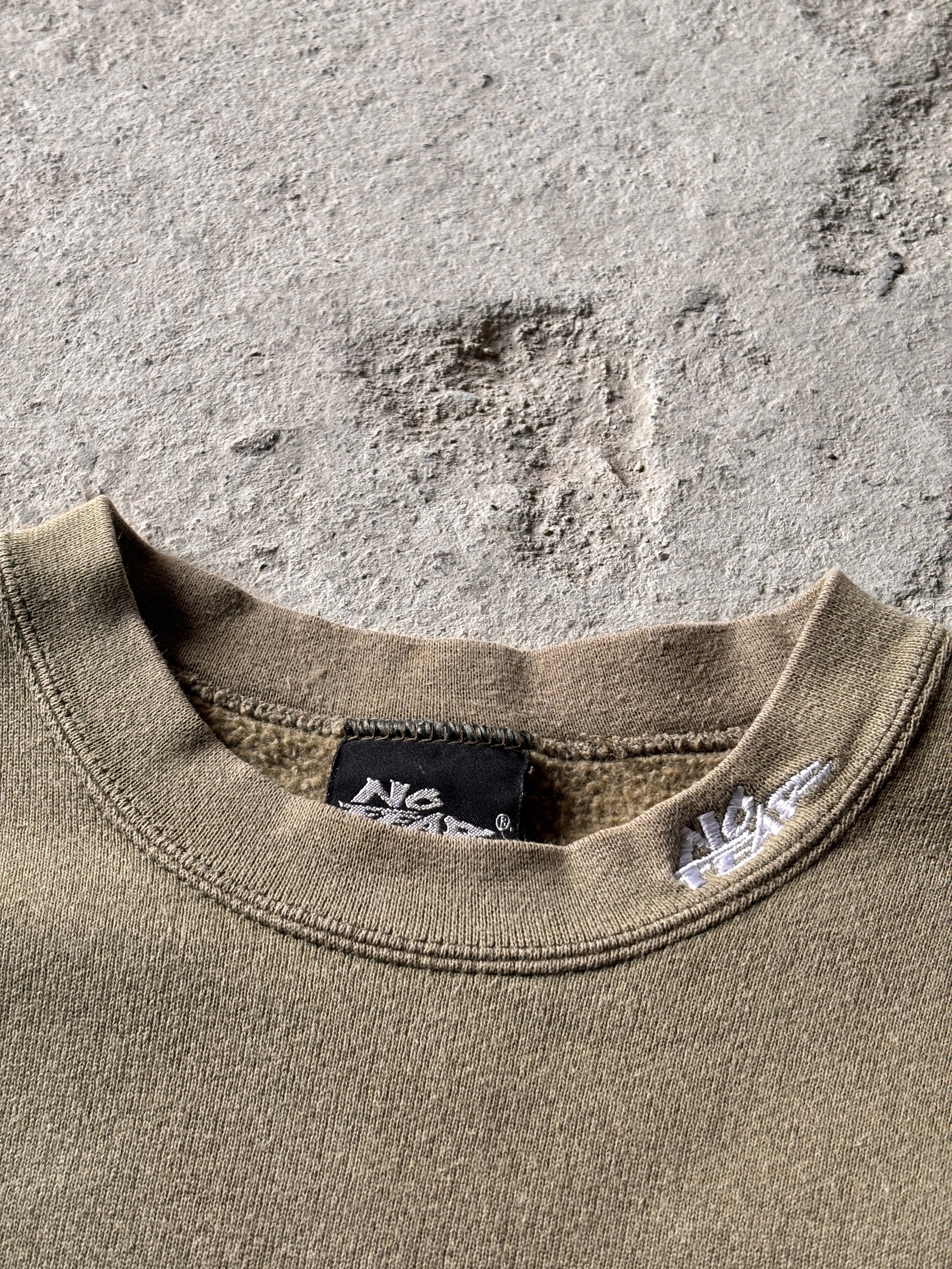 90s NO FEAR/Skull embroidery Sweat/USA製/M/スカル刺繍スウェット/フレイム/カ-キ/ノ-フィア-/SURF/SKATEBOARDS/スケ-ト/スケートボード/古着
