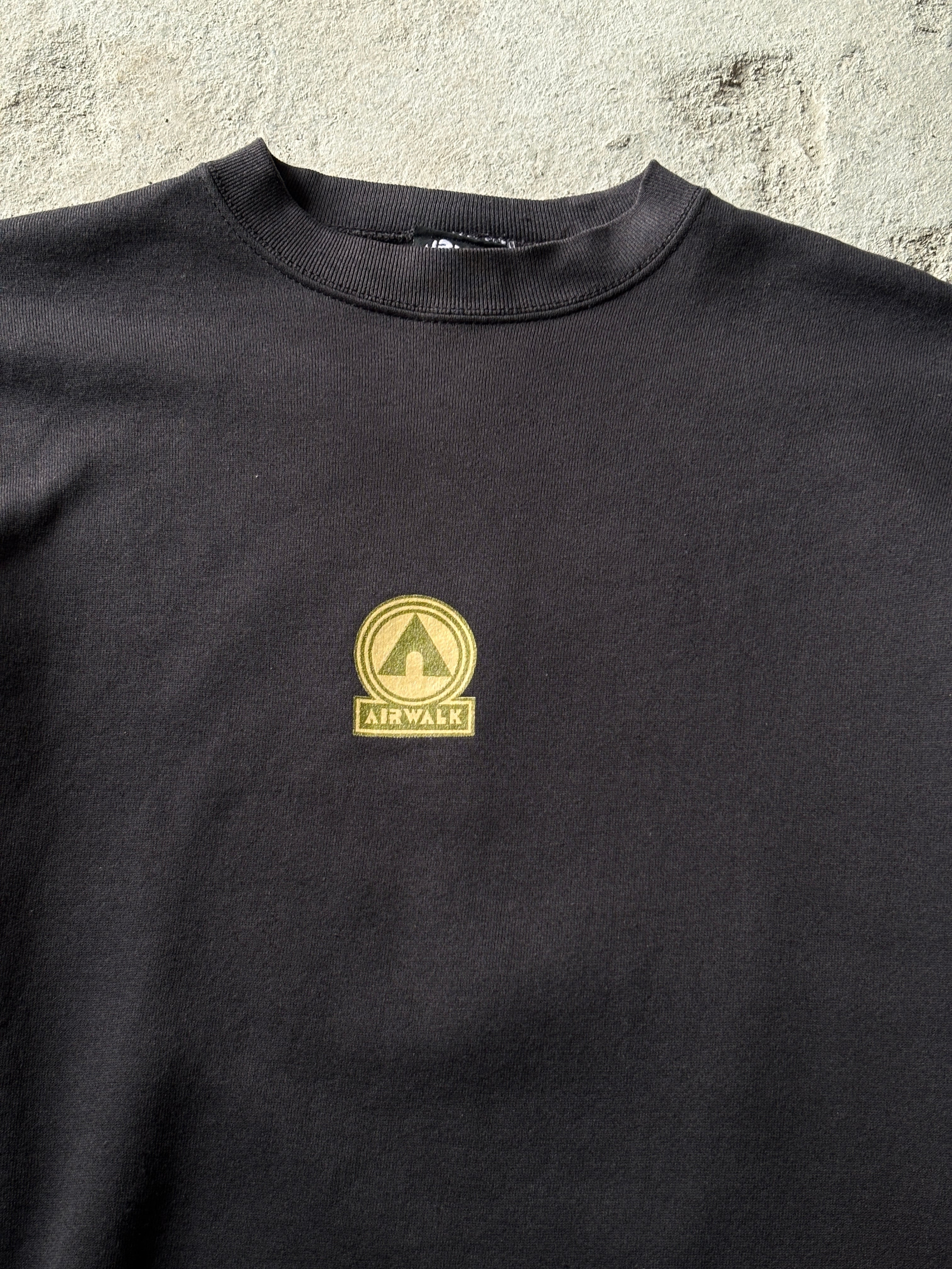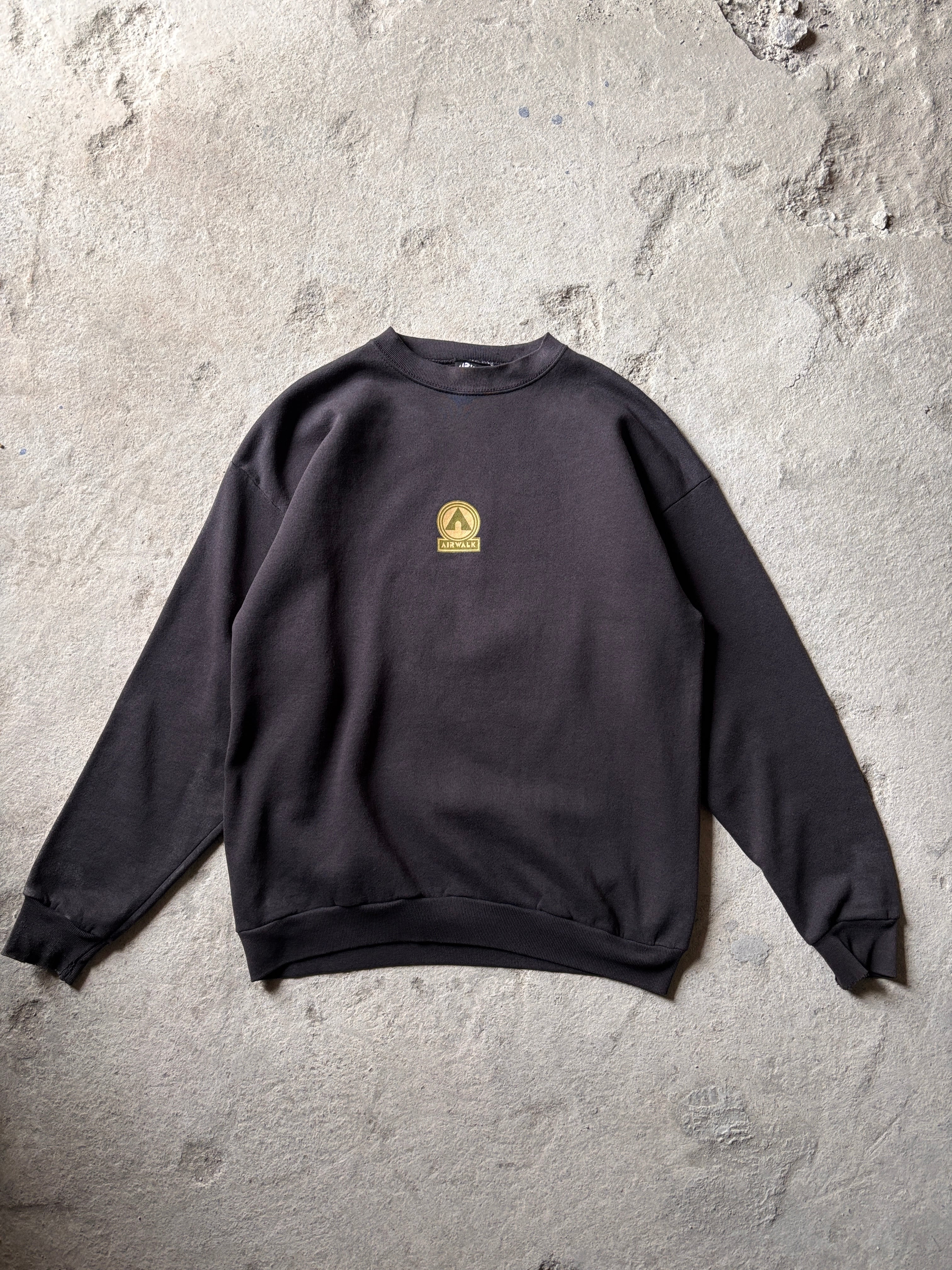 90~00s AIRWALK/Logo print Sweat/USA製/M-L相当/ロゴプリントスウェット/ブラック/エアウォ-ク/スケ-ト/スケートボード/古着