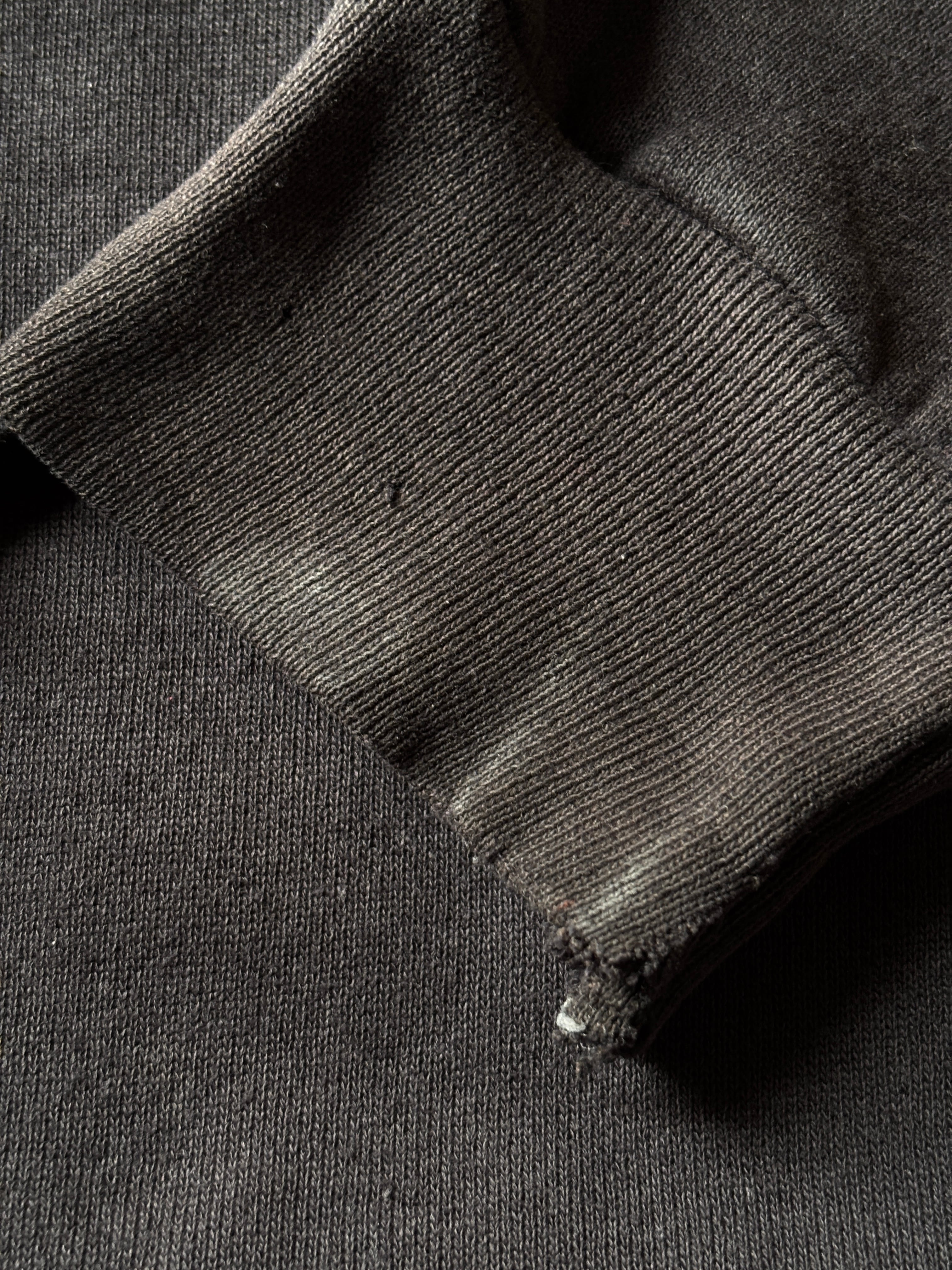 中古、古着特有の着用感があり、左袖にリペア跡があります。