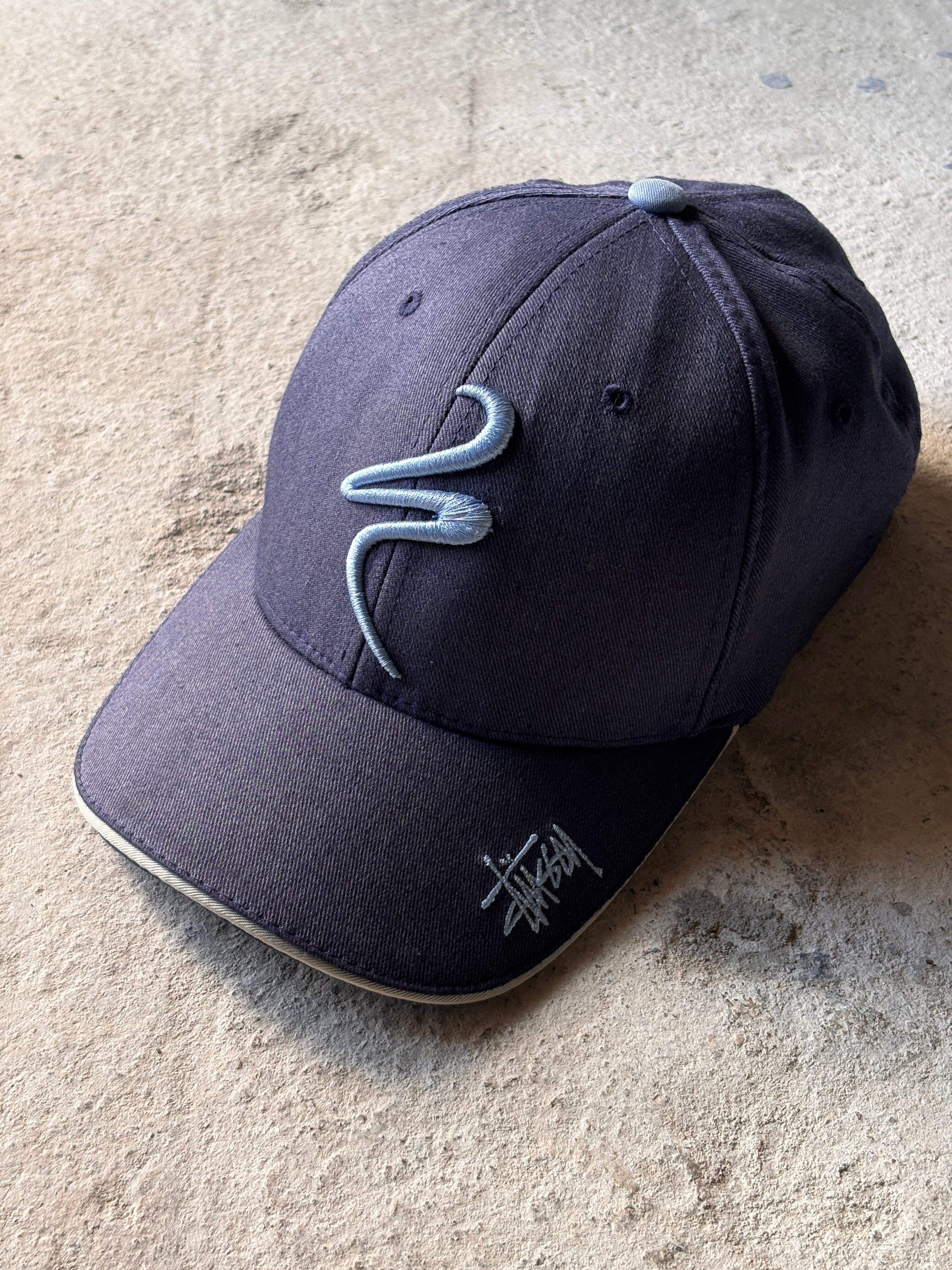 00s OLD STUSSY/S Logo Cap/紺タグ/21周年/2001年/L-XL/Sロゴキャップ/巳年/ヘビ年/ネイビ-/ステューシー/オ-ルドステューシー