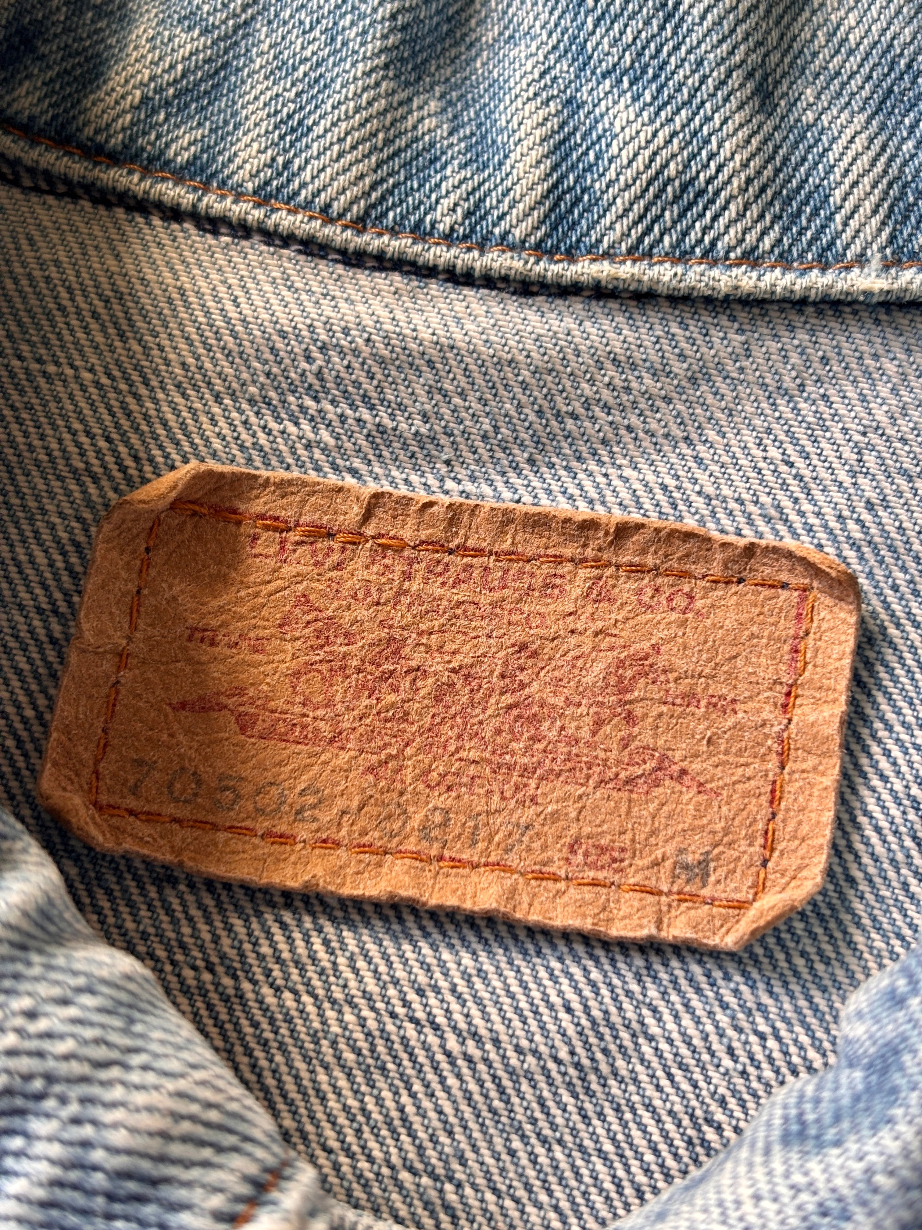 80s Levi's/Denim Jacket/70502-0217/日本製/M/デニムジャケット/Gジャン/トラッカージャケット/オレンジタブ/アイスブル-/リ-バイス