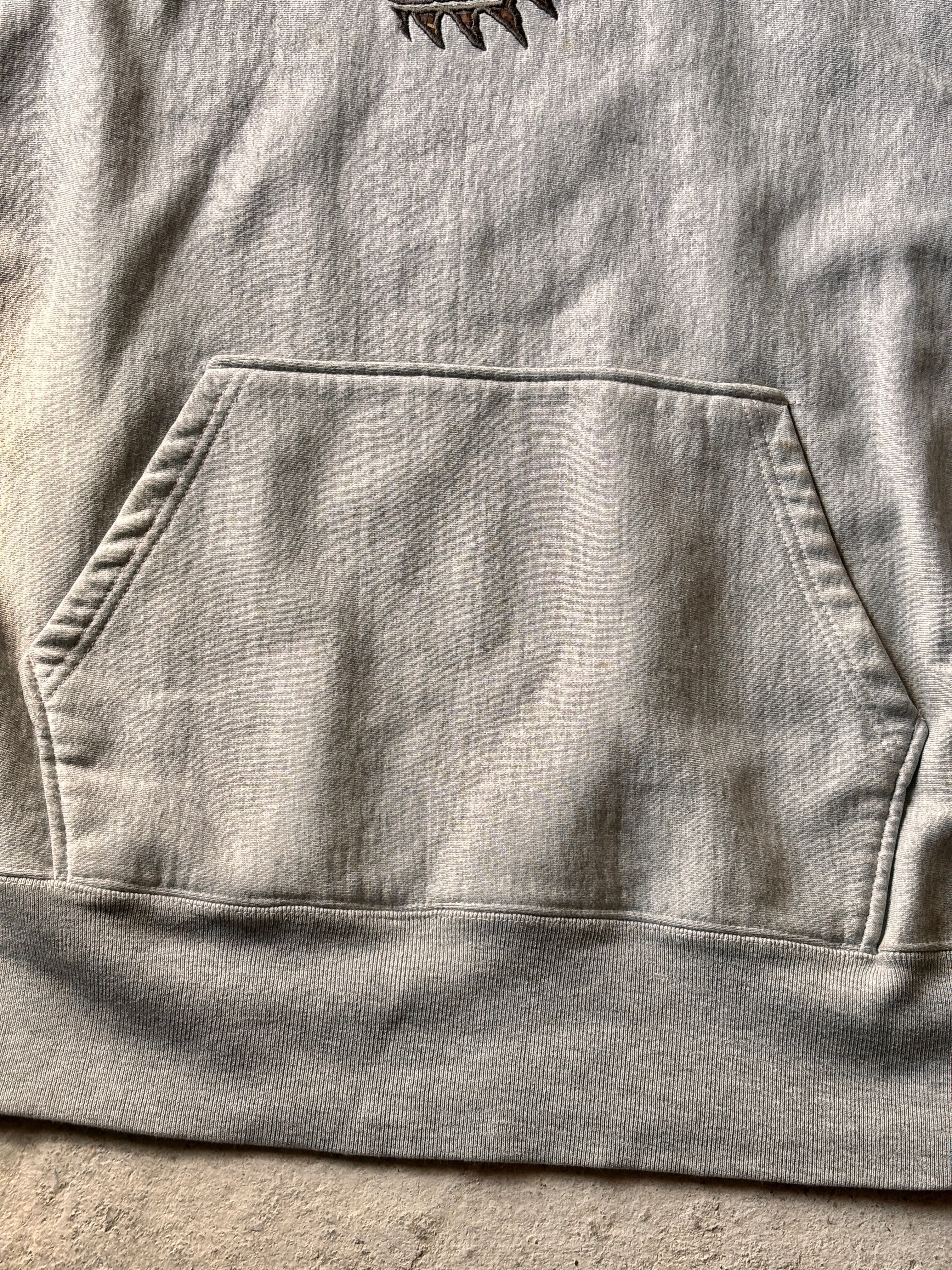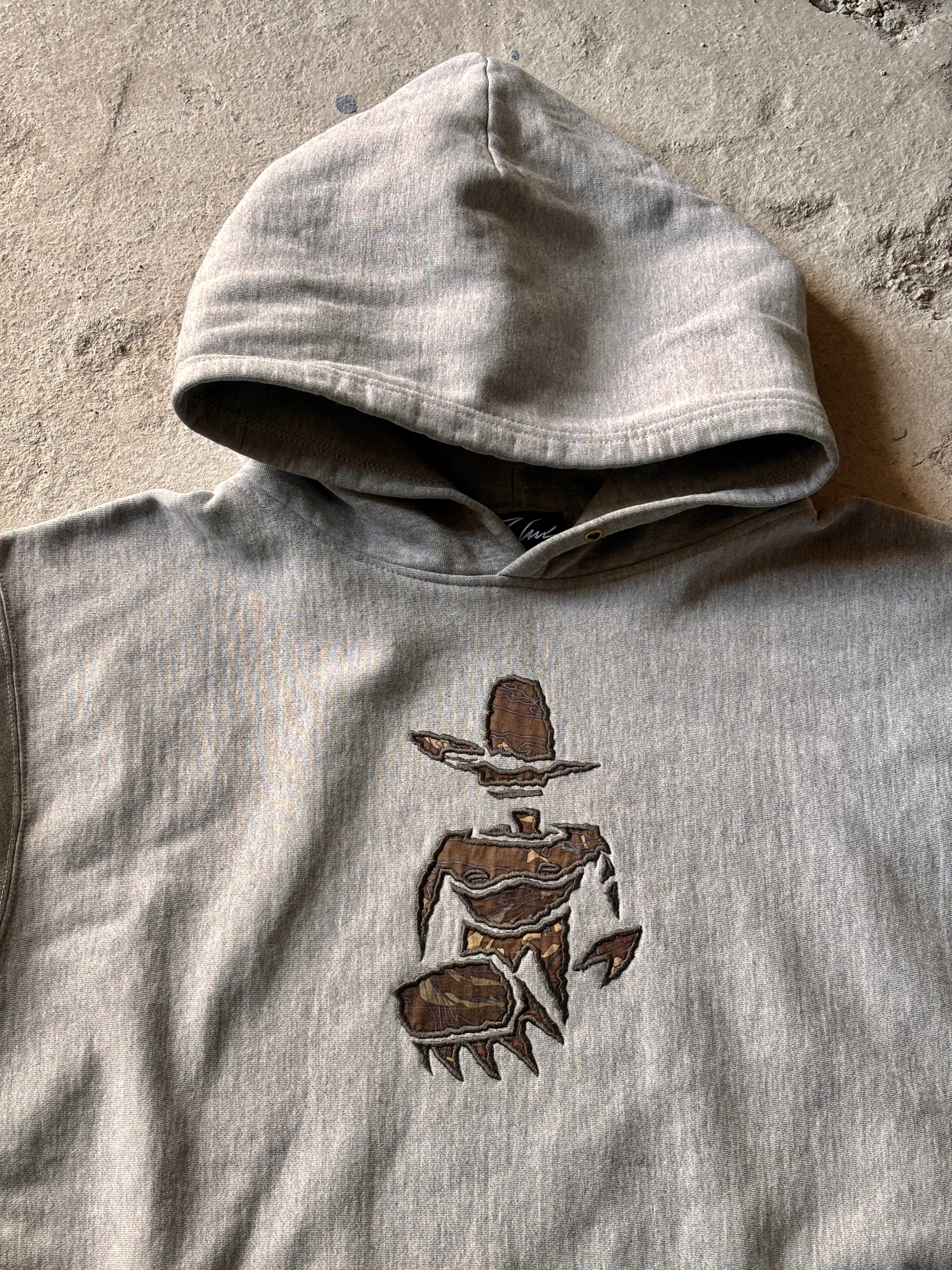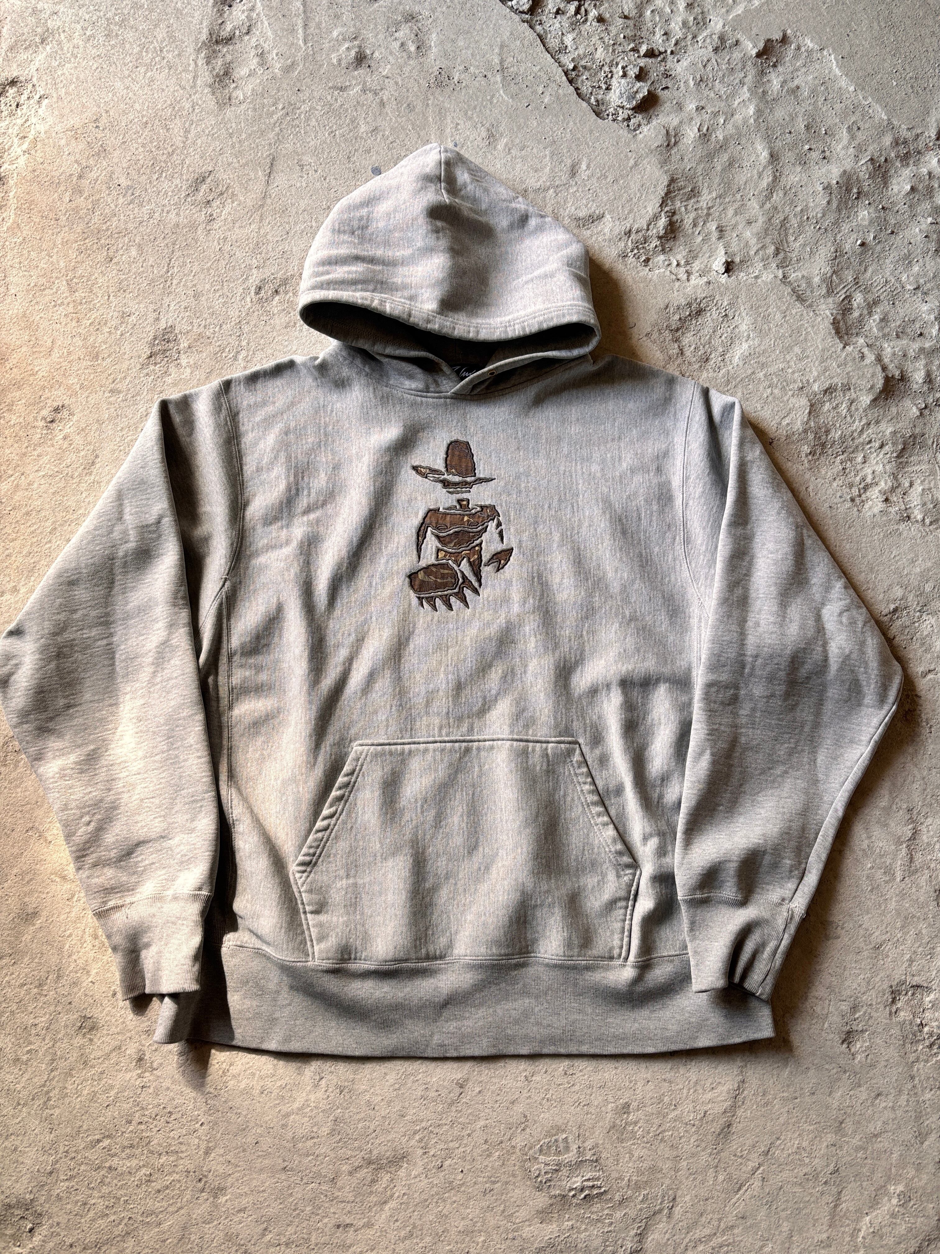 00s FUTURA/Pointman Hoodie/XL相当/ポイントマンデザインスウェット/刺繍/パッチデザイン/グレ-/カモフラ/フューチュラ/裏原/古着/ア―カイブ