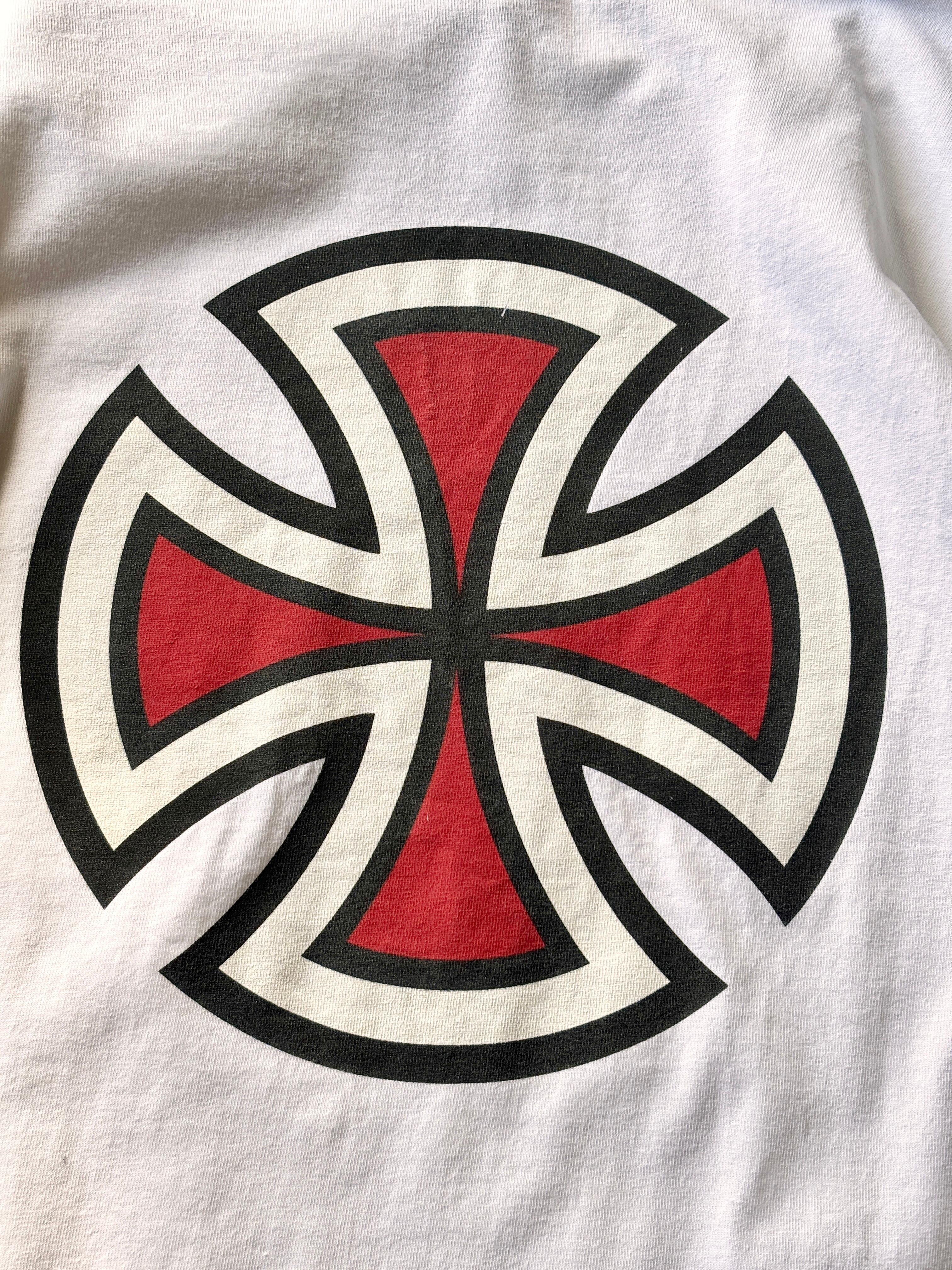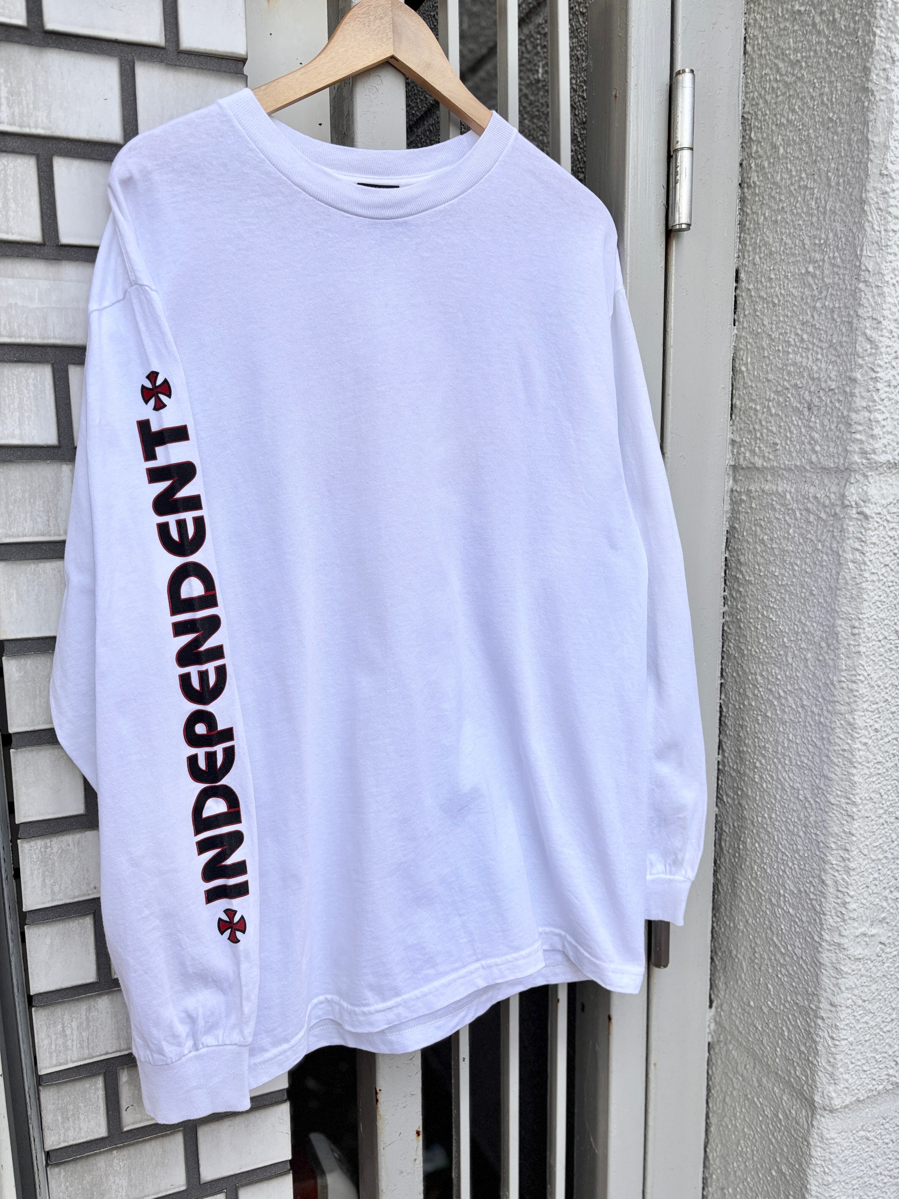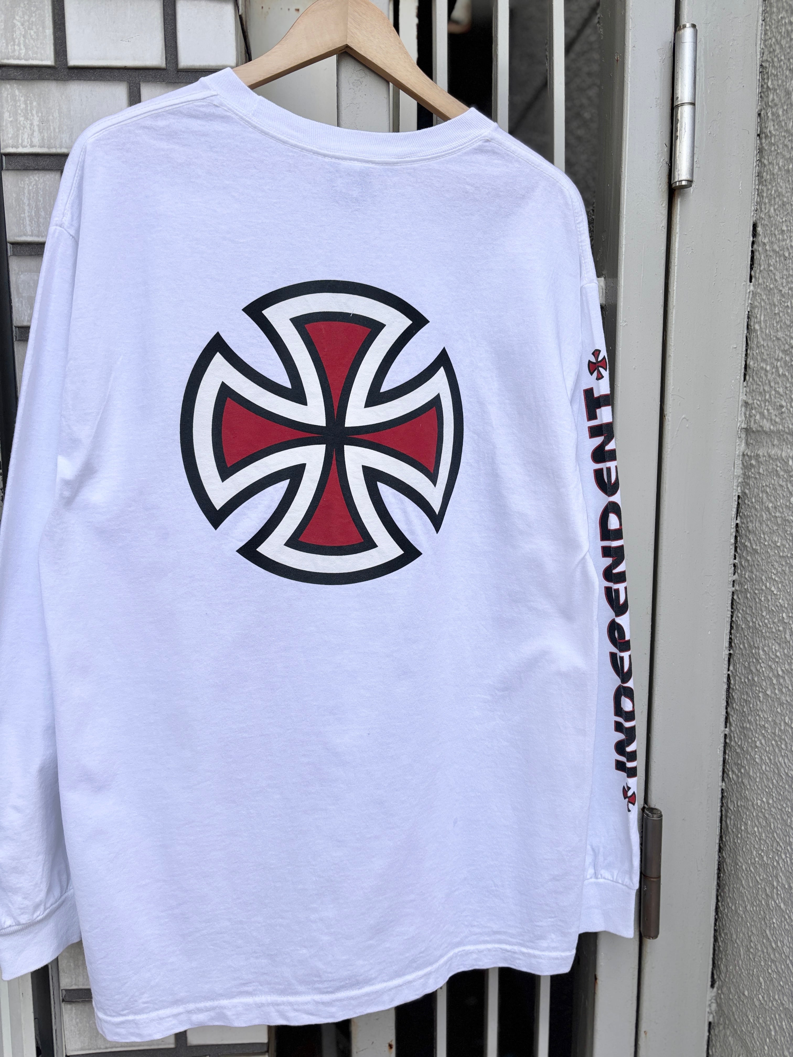 INDEPENDENT/IRON CROSS print L/S Tee/L/アイアンクロスプリントロンT/長袖Tシャツ/袖プリ/ホワイト/インディペンデント/スケ-ト/スケートボード/古着