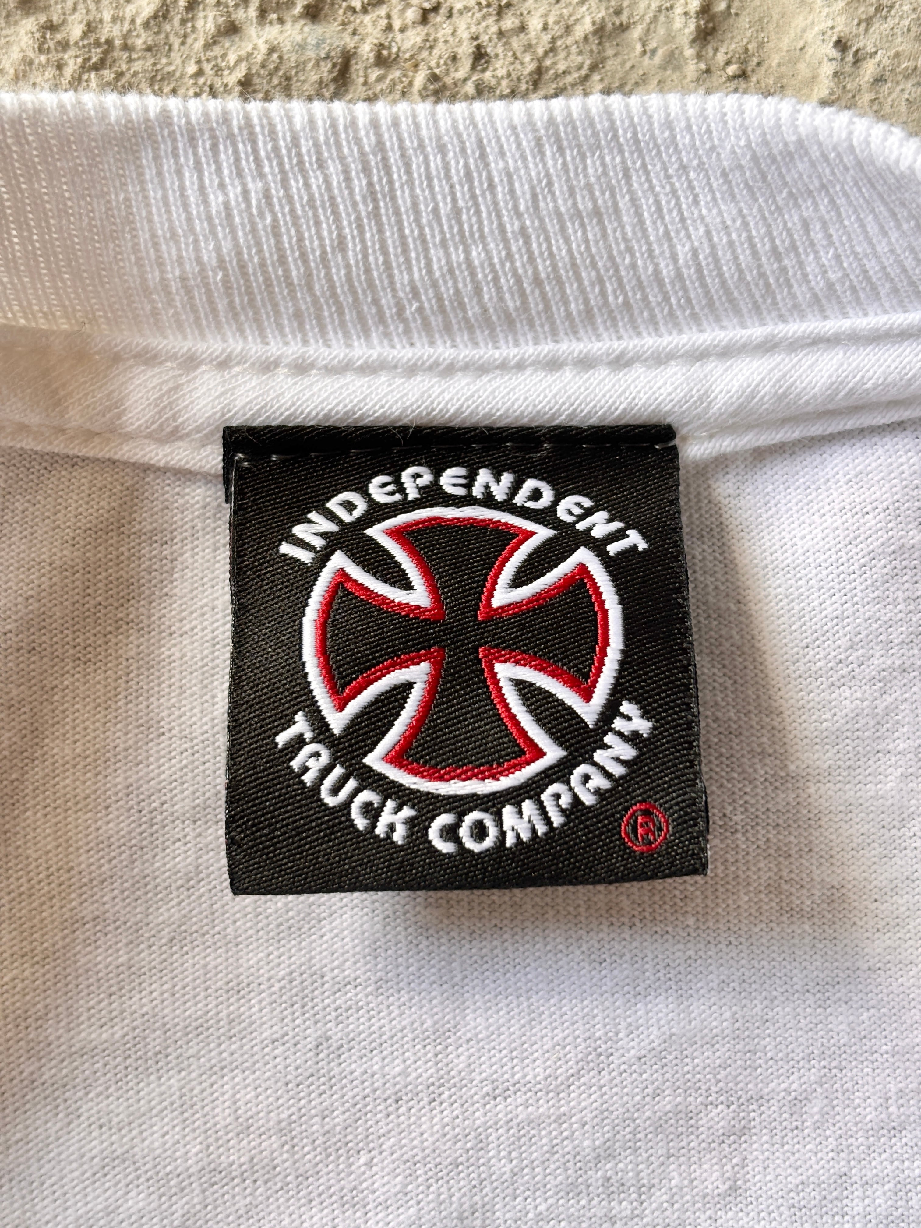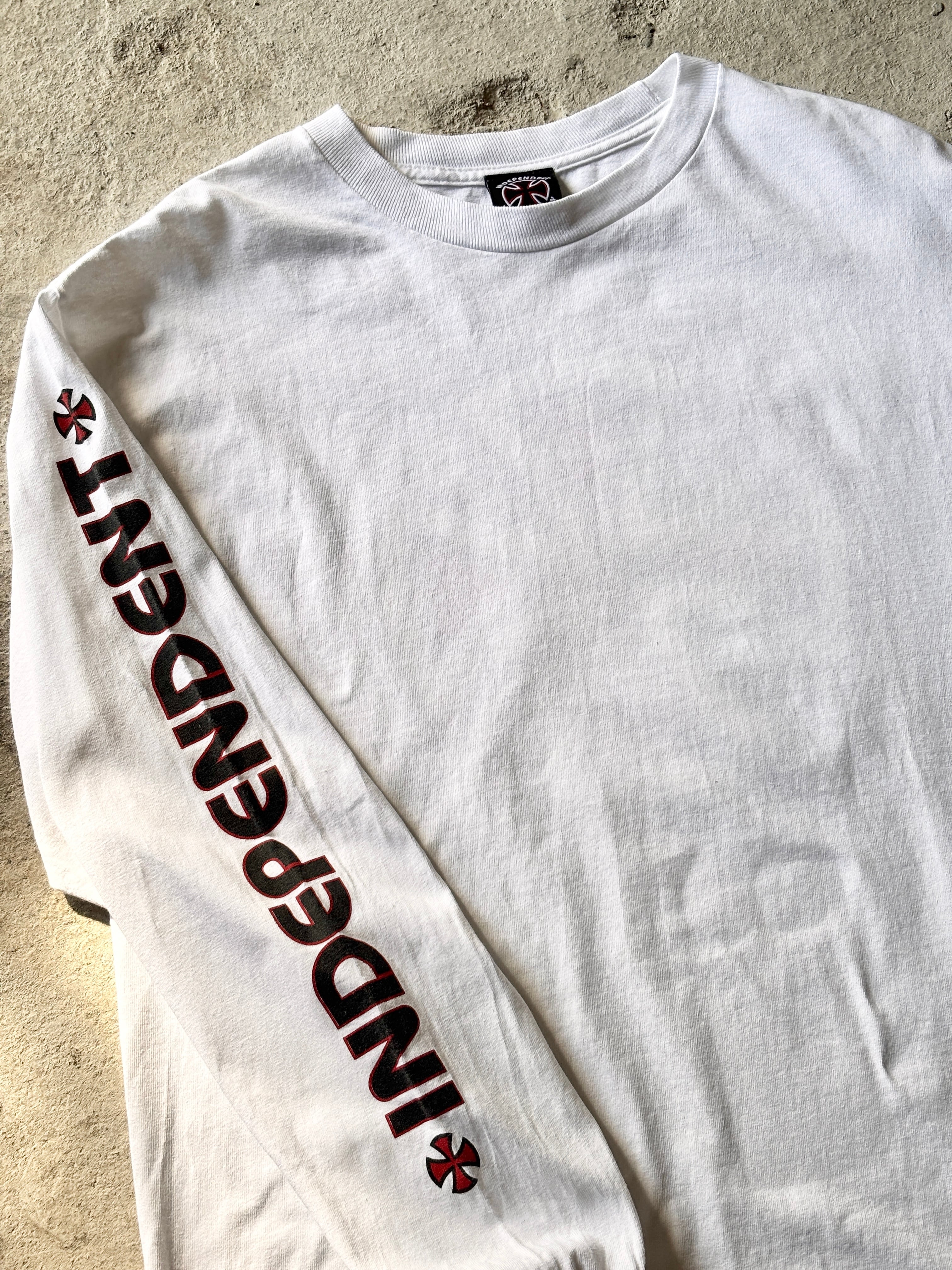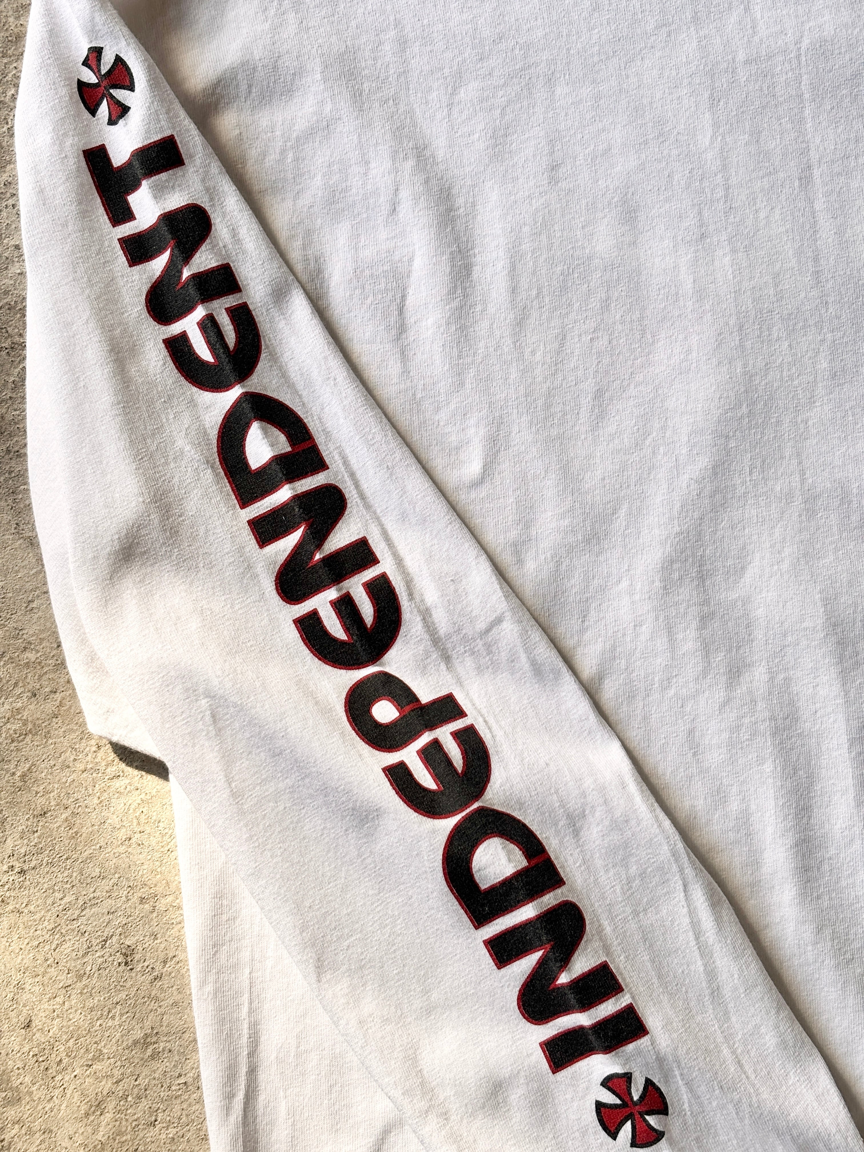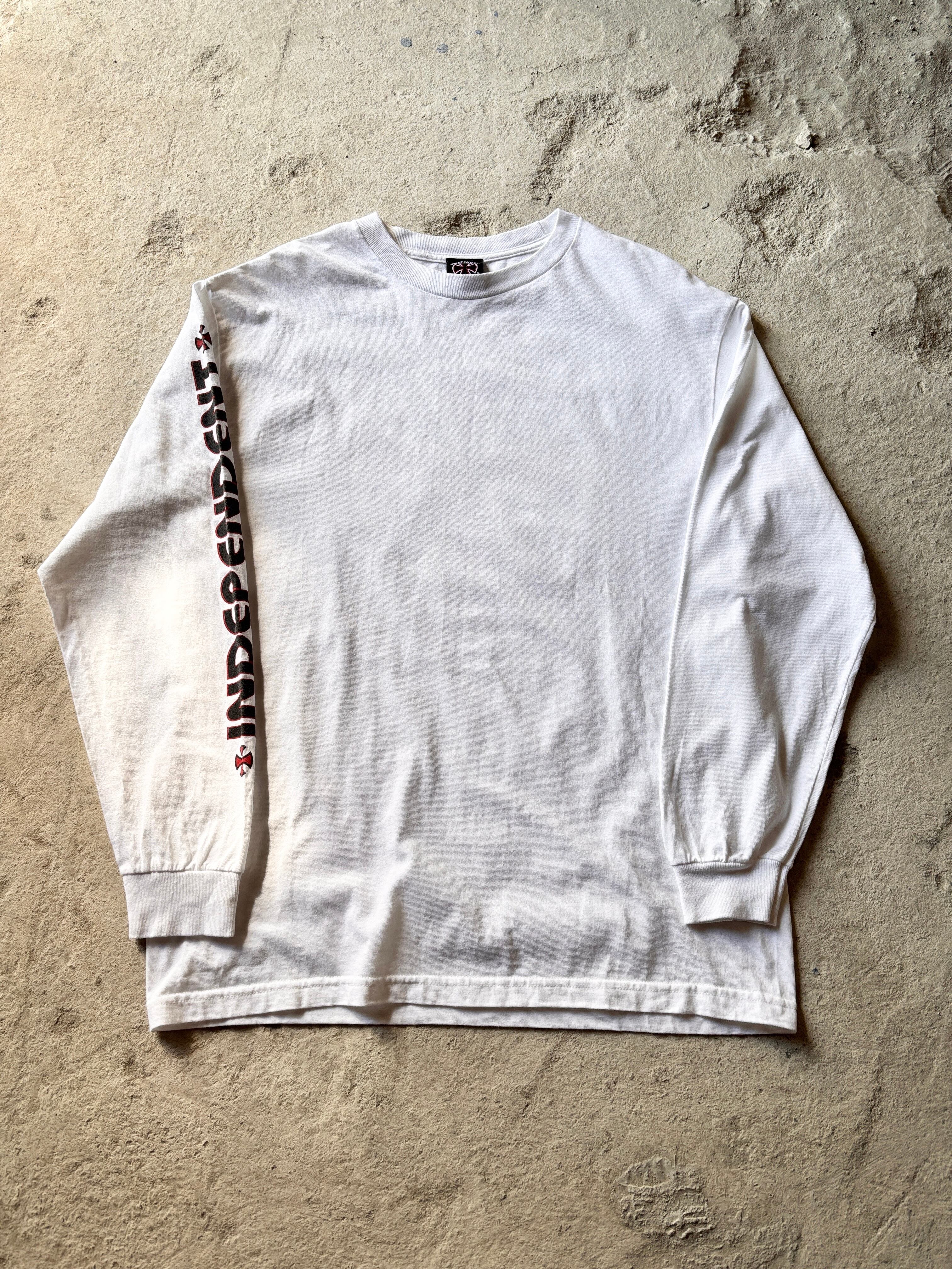 INDEPENDENT/IRON CROSS print L/S Tee/L/アイアンクロスプリントロンT/長袖Tシャツ/袖プリ/ホワイト/インディペンデント/スケ-ト/スケートボード/古着