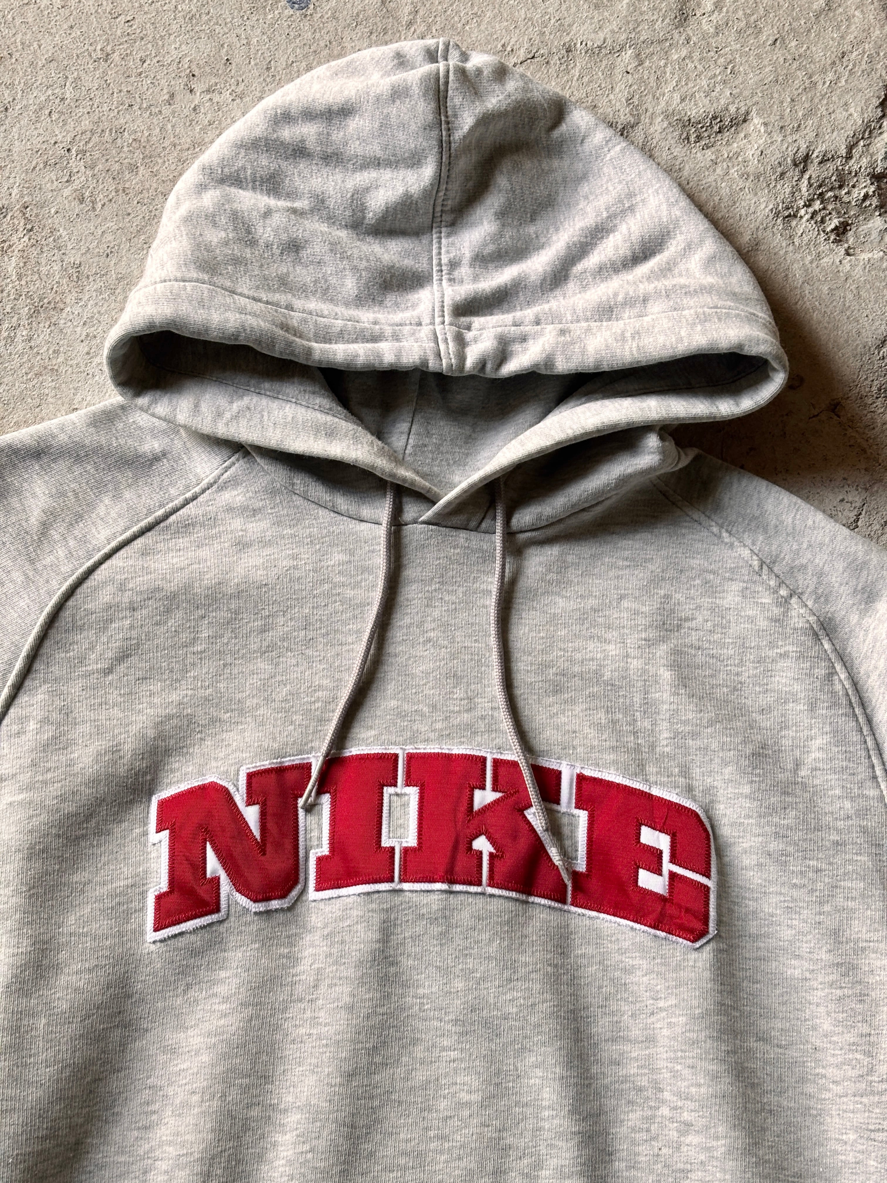 00s Euro Nike/Logo patch Hoodie/Turkey製/L/ロゴパッチフ-ディ-/パ-カ-/トルコ製/グレ-/ナイキ