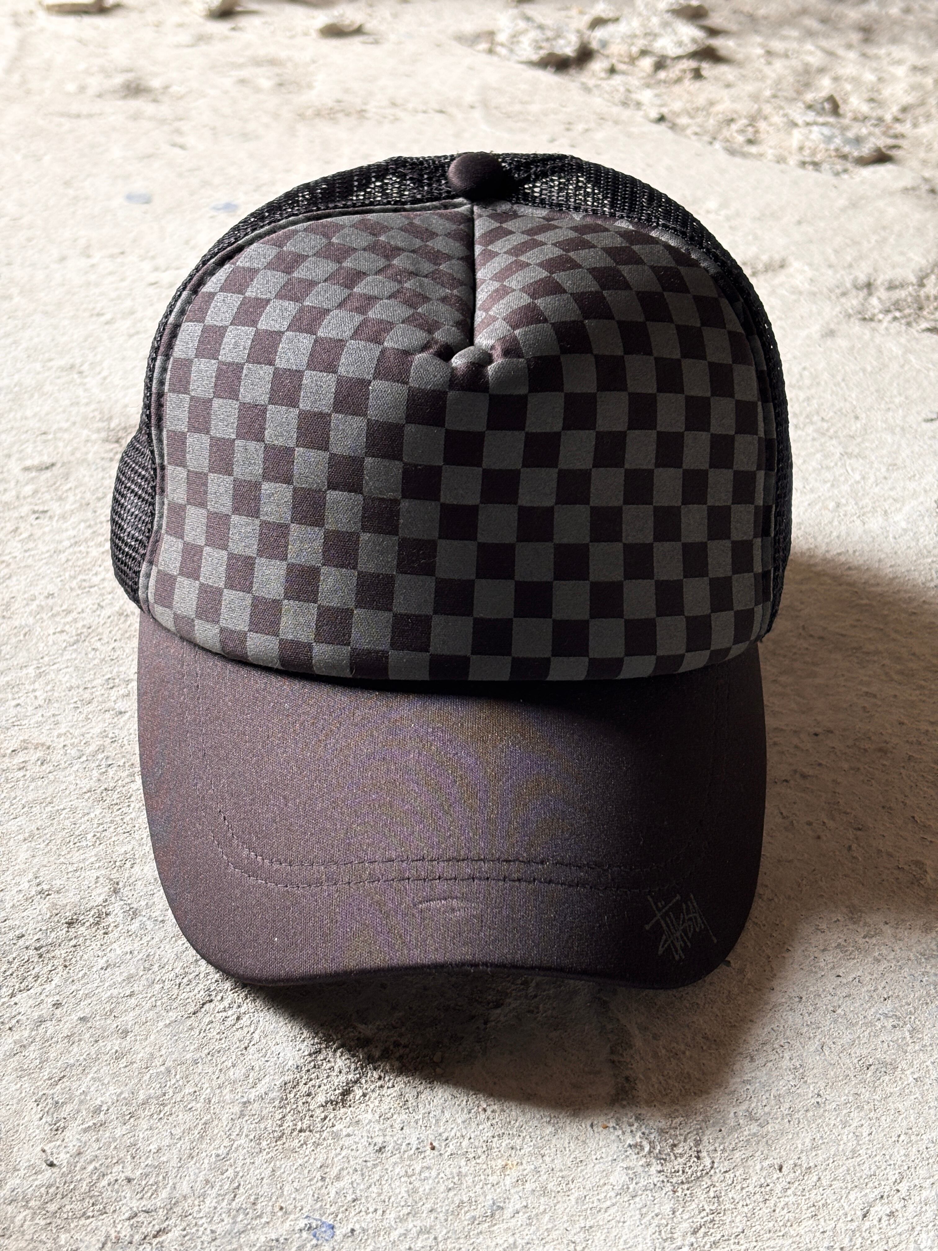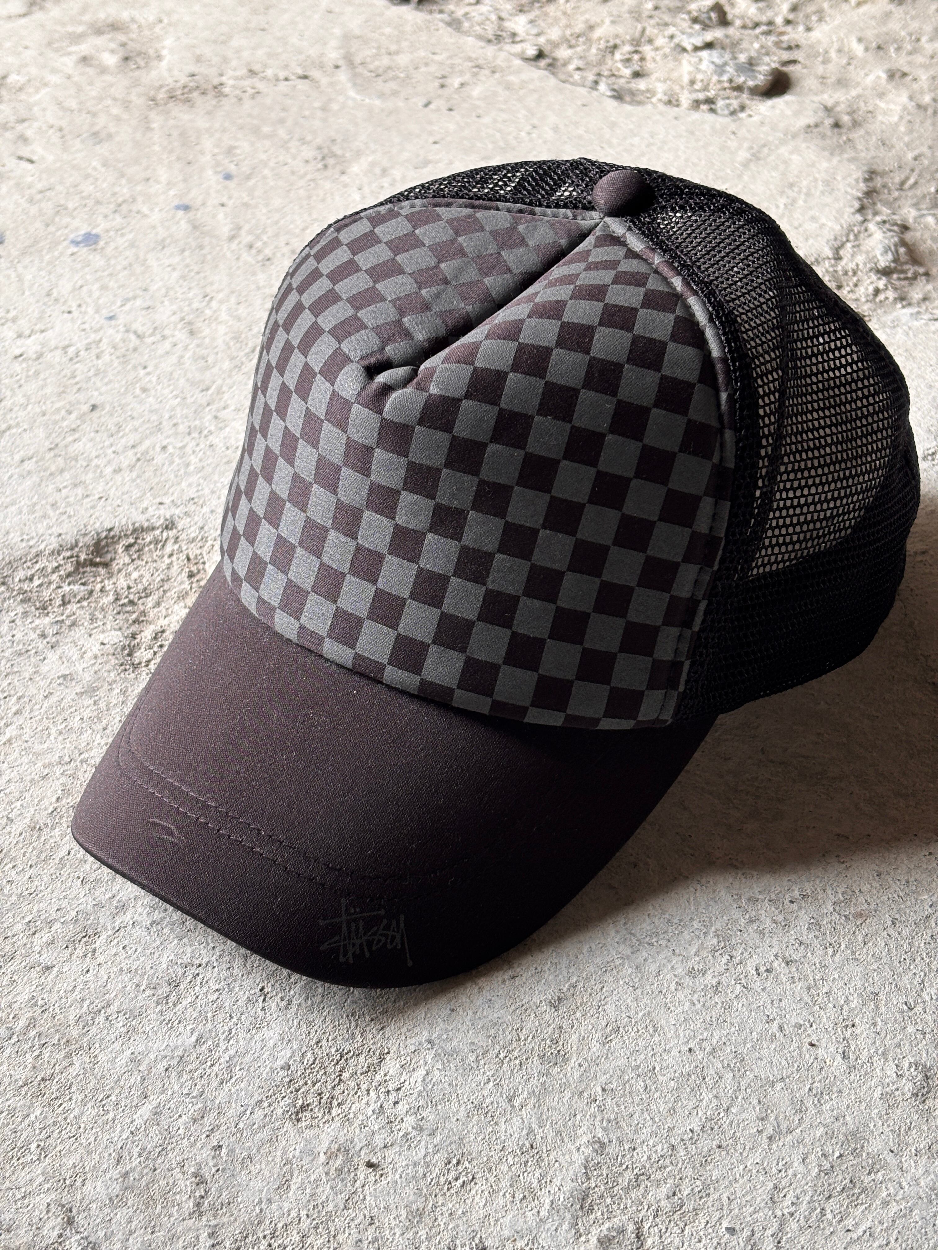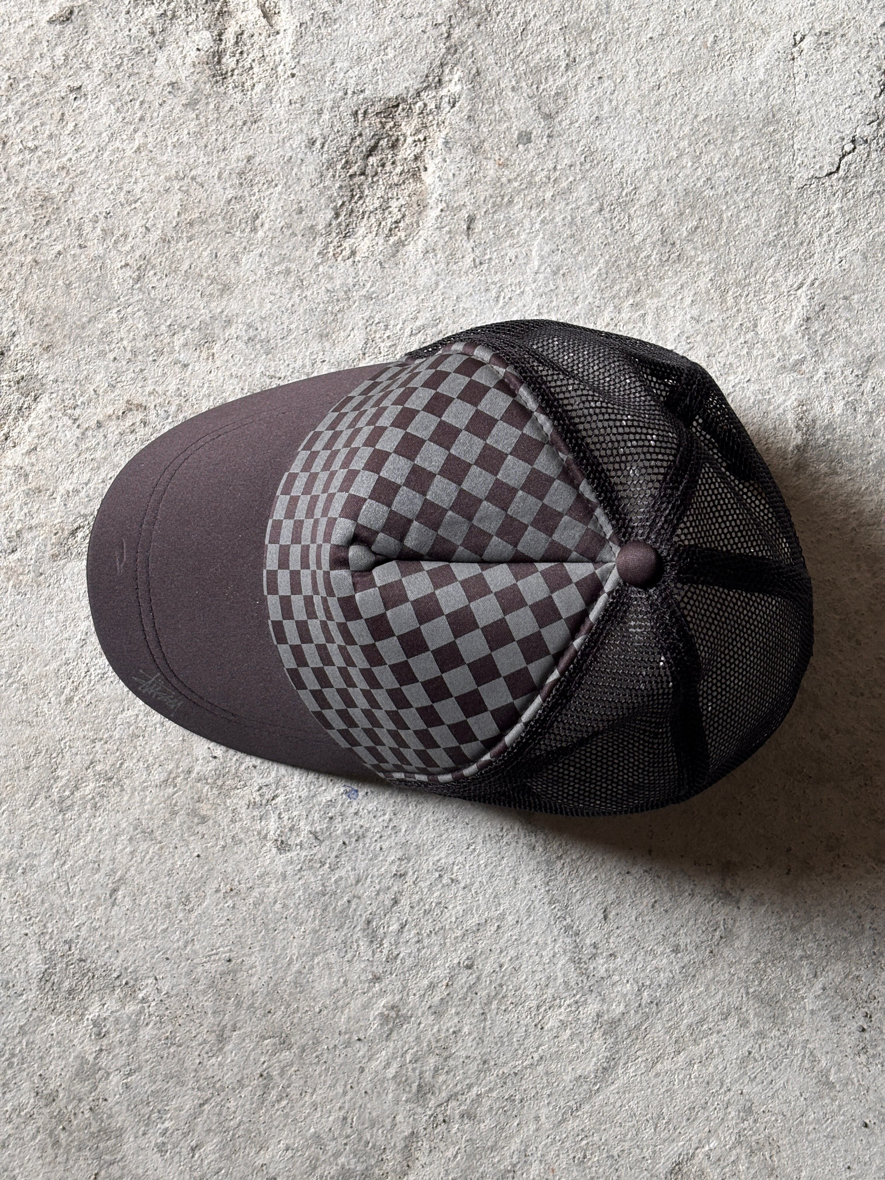 00s OLD STUSSY/Mesh Cap/台湾製/Free/メッシュキャップ/チェッカ-柄/ストックロゴ/ブラック/ステューシー/オ-ルドステューシー/帽子/ア―カイブ