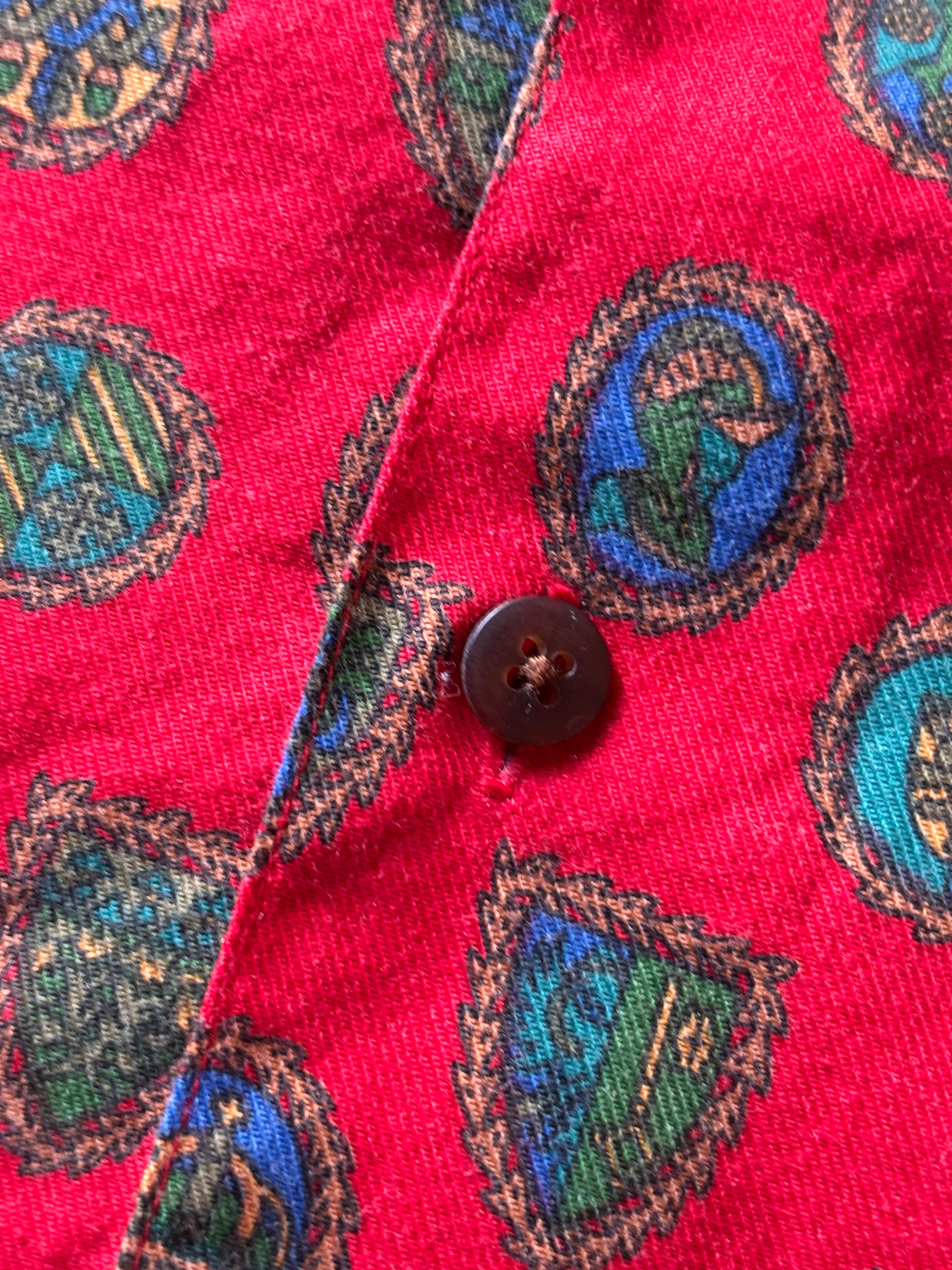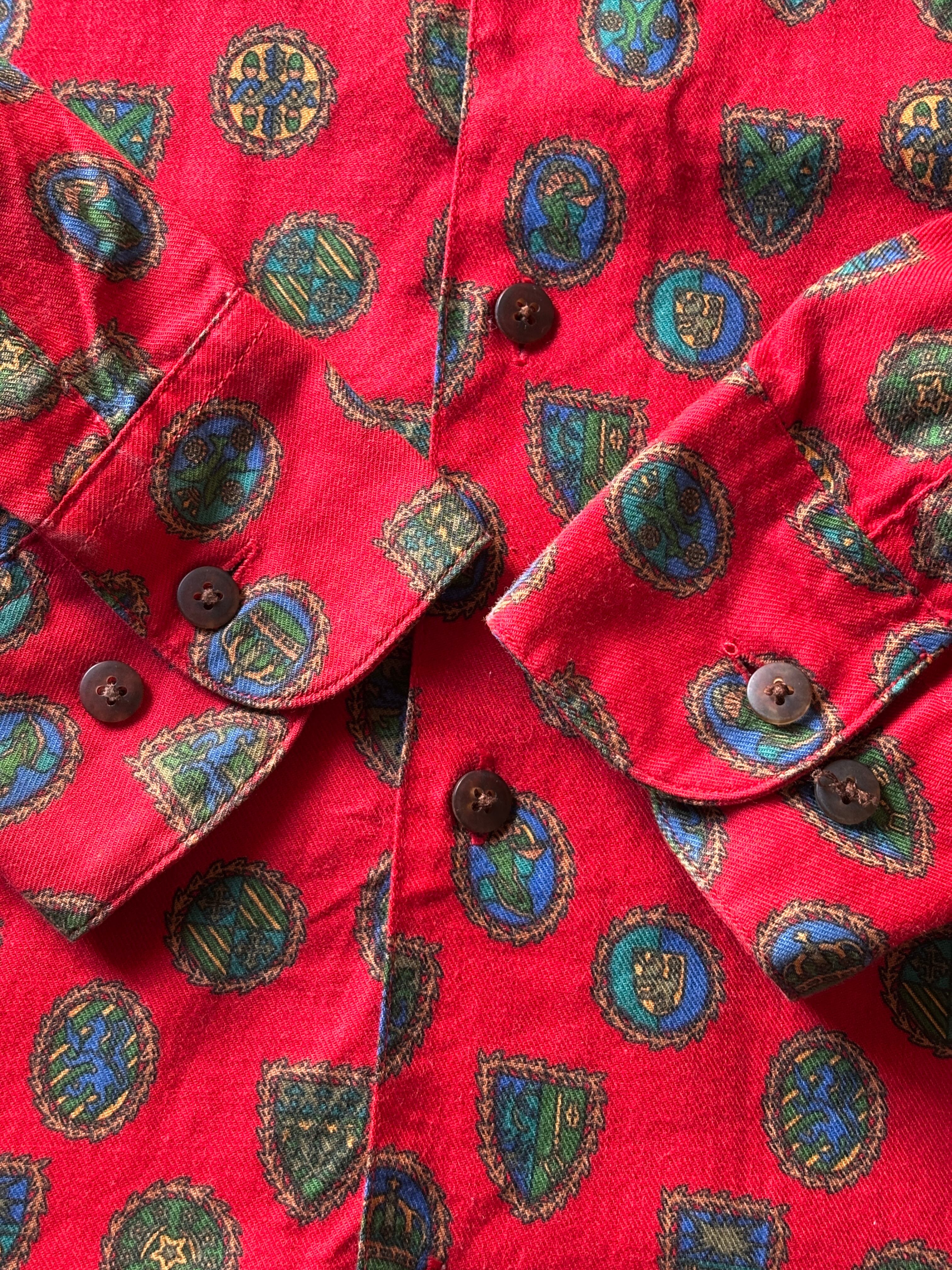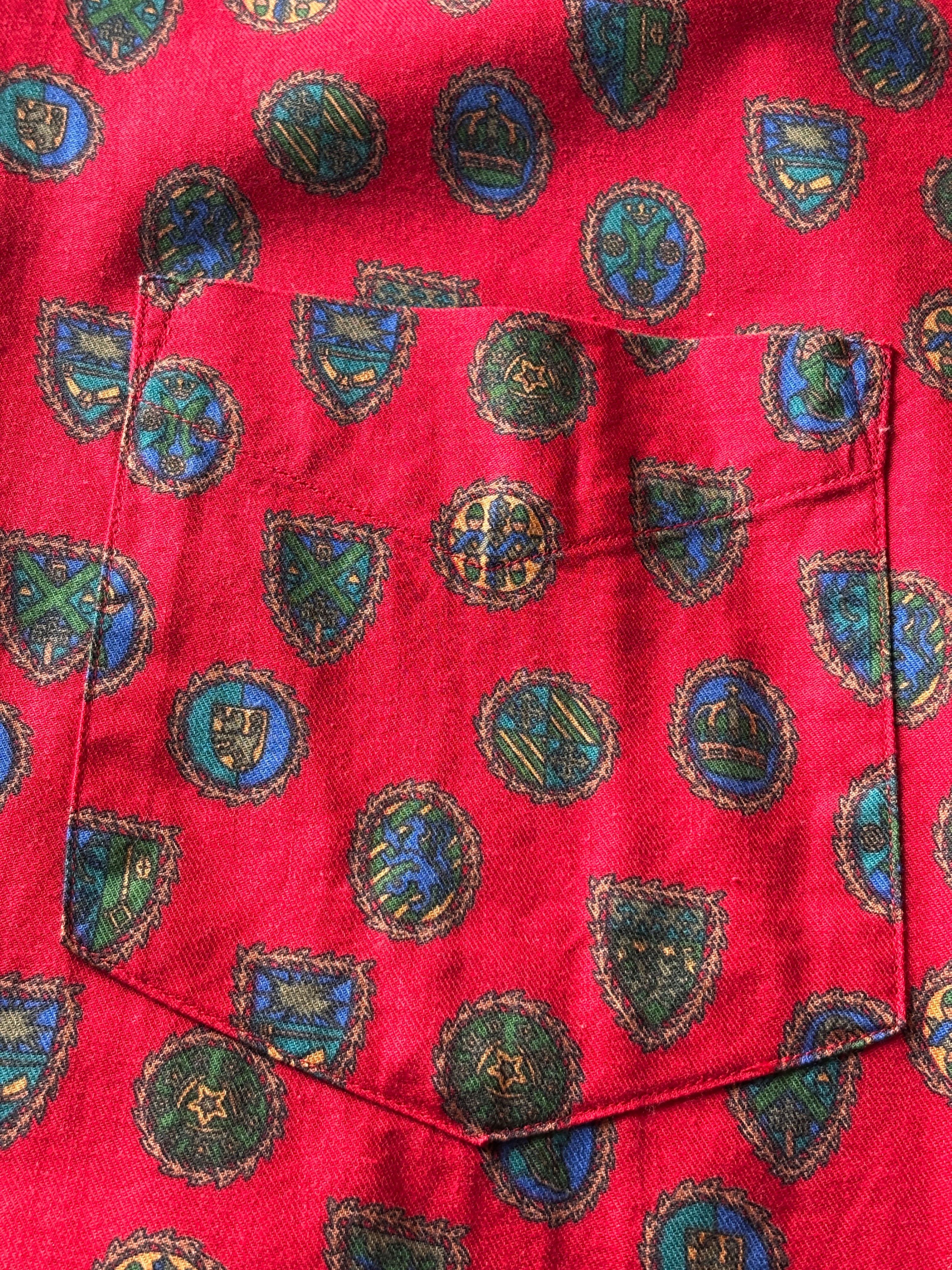 90~00s OLD GAP/Emblem print BD Shirt/L相当/エンブレム柄ボタンダウンシャツ/長袖シャツ/レッド/オ-ルドギャップ/古着