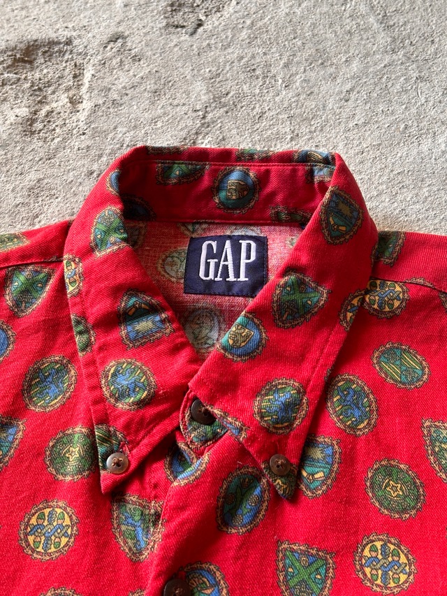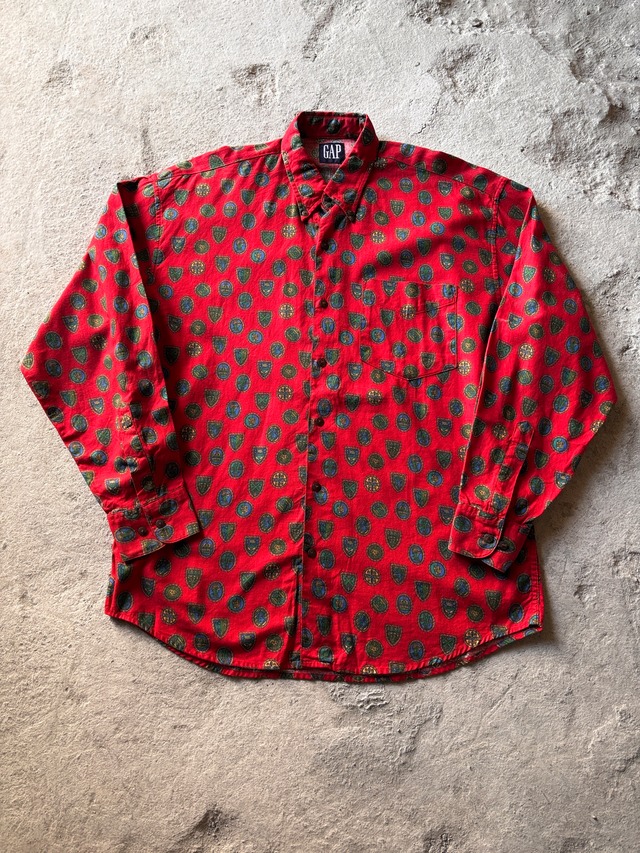 90~00s OLD GAP/Emblem print BD Shirt/L相当/エンブレム柄ボタンダウンシャツ/長袖シャツ/レッド/オ-ルドギャップ