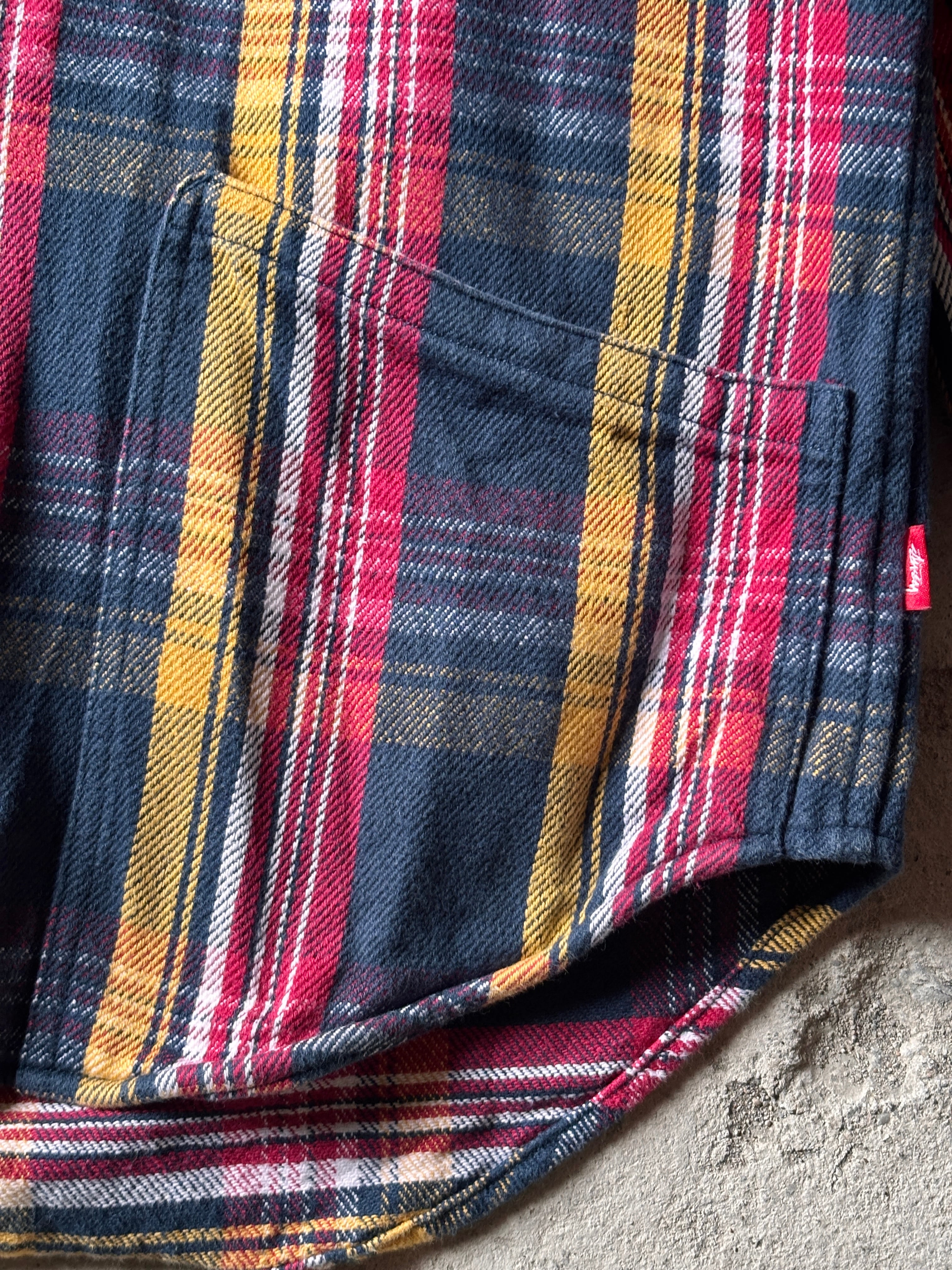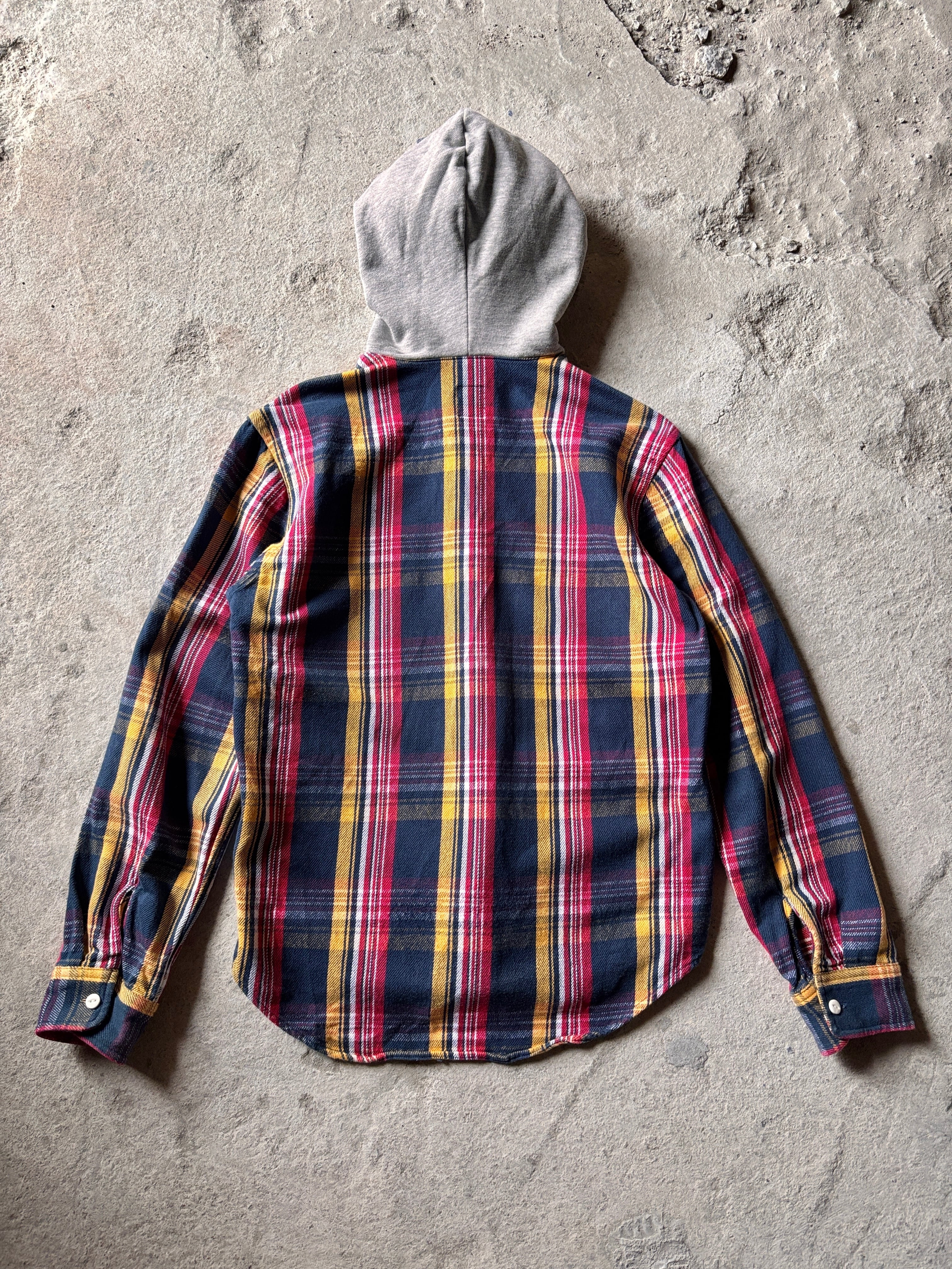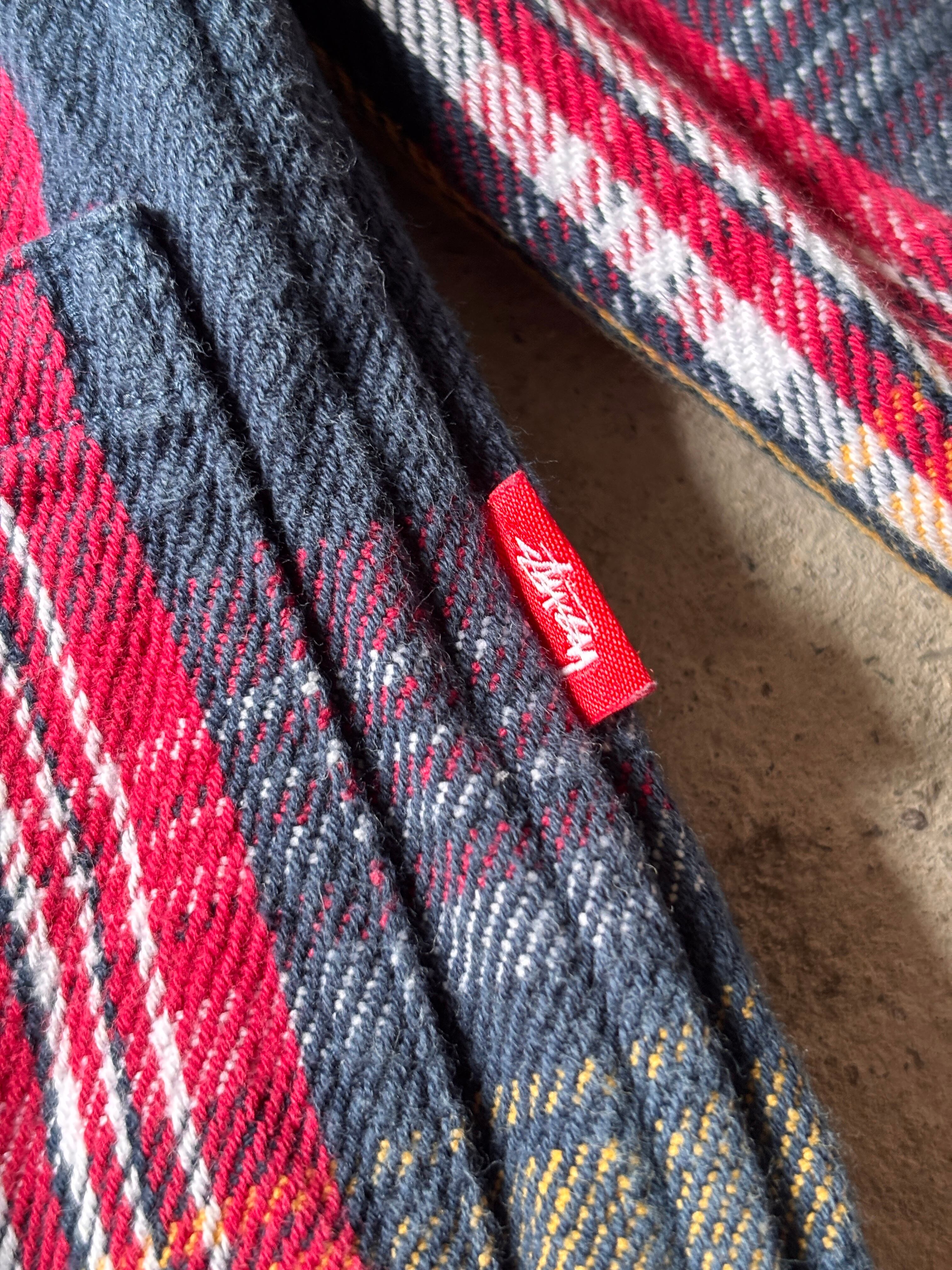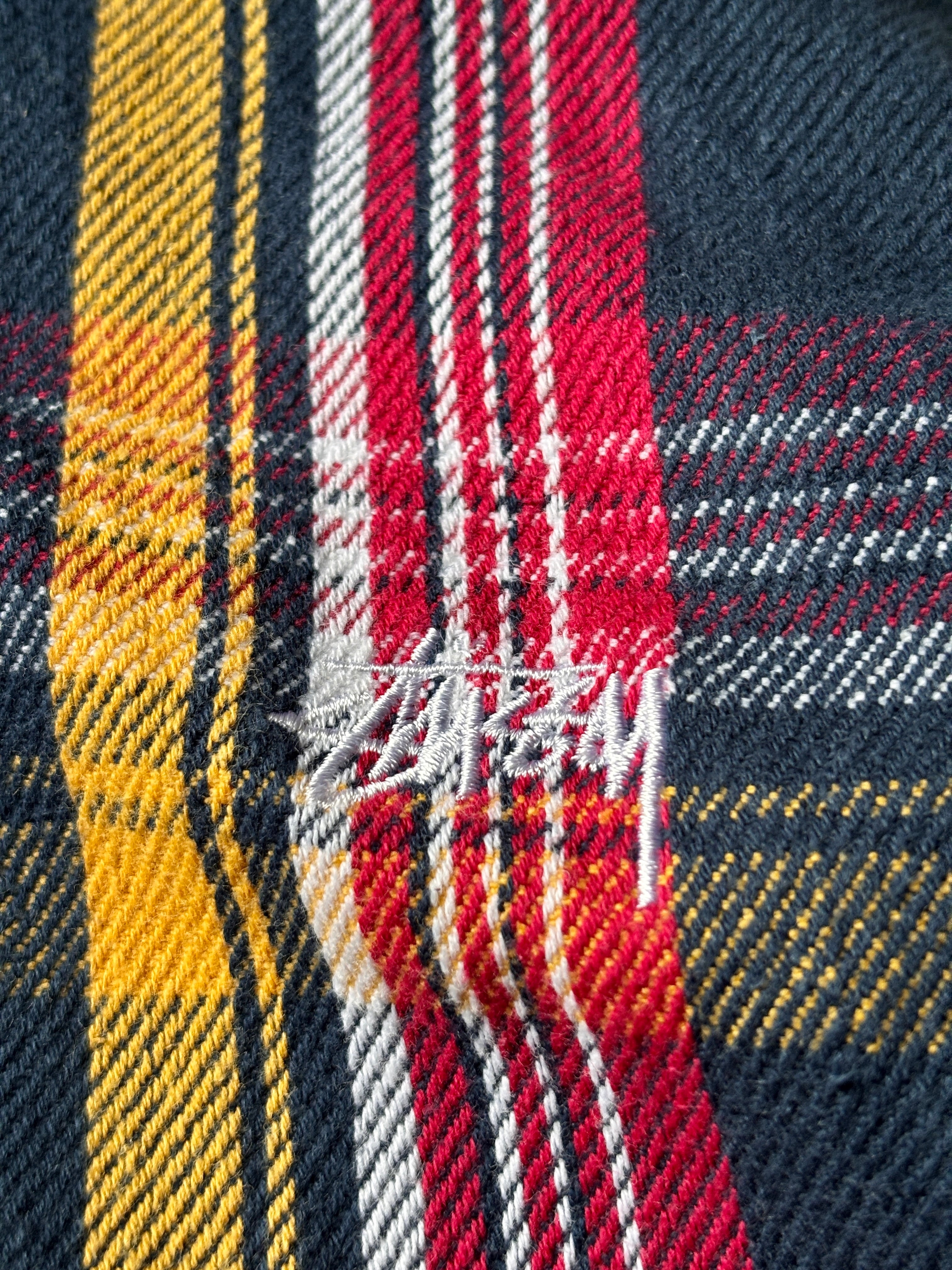 10s STUSSY/Hooded Flannel Shirt/M/フード付きネルシャツ/刺繍ロゴ/ストックロゴ/長袖シャツネイビ-/レッド/イエロ-/ステューシー