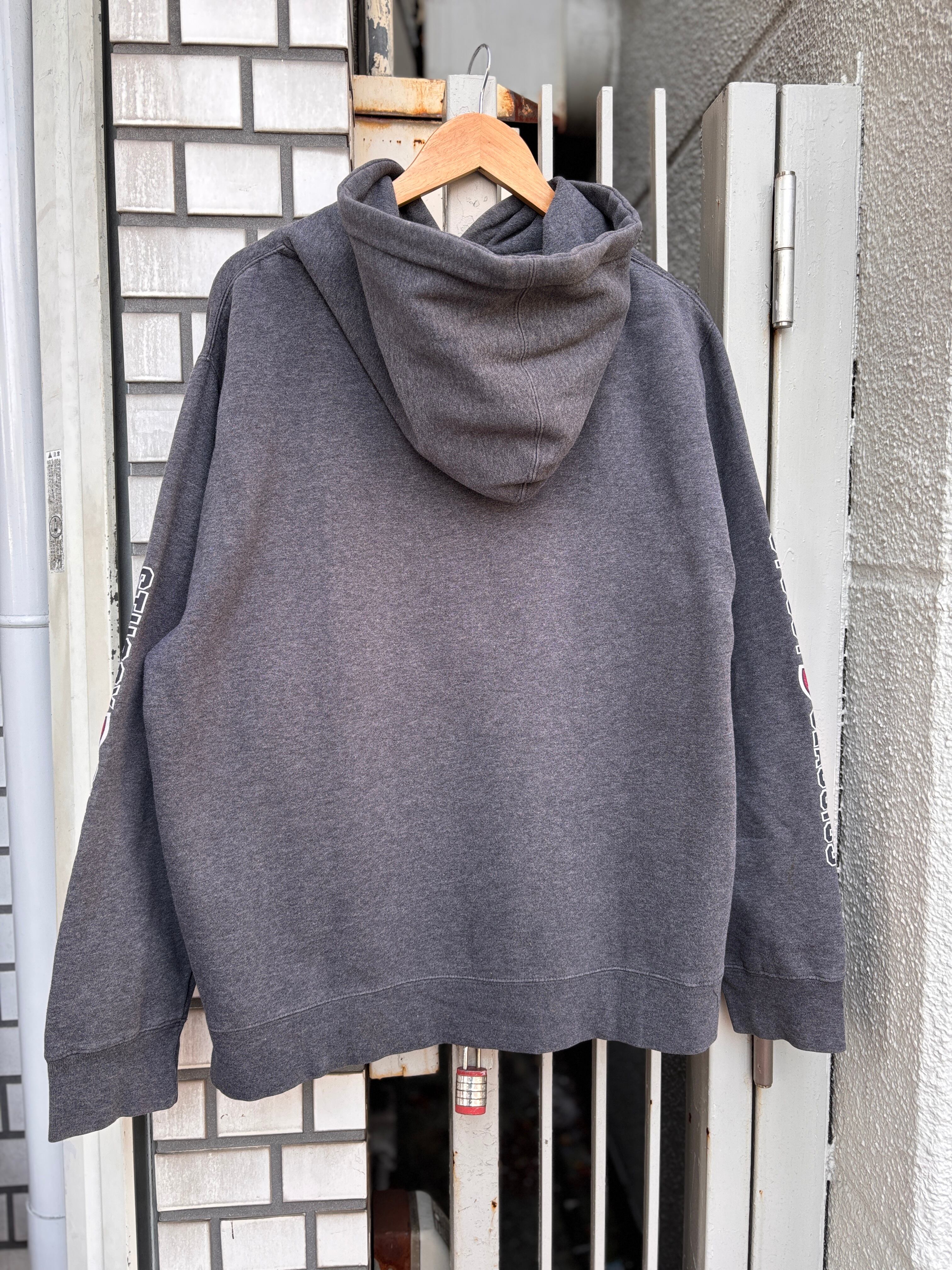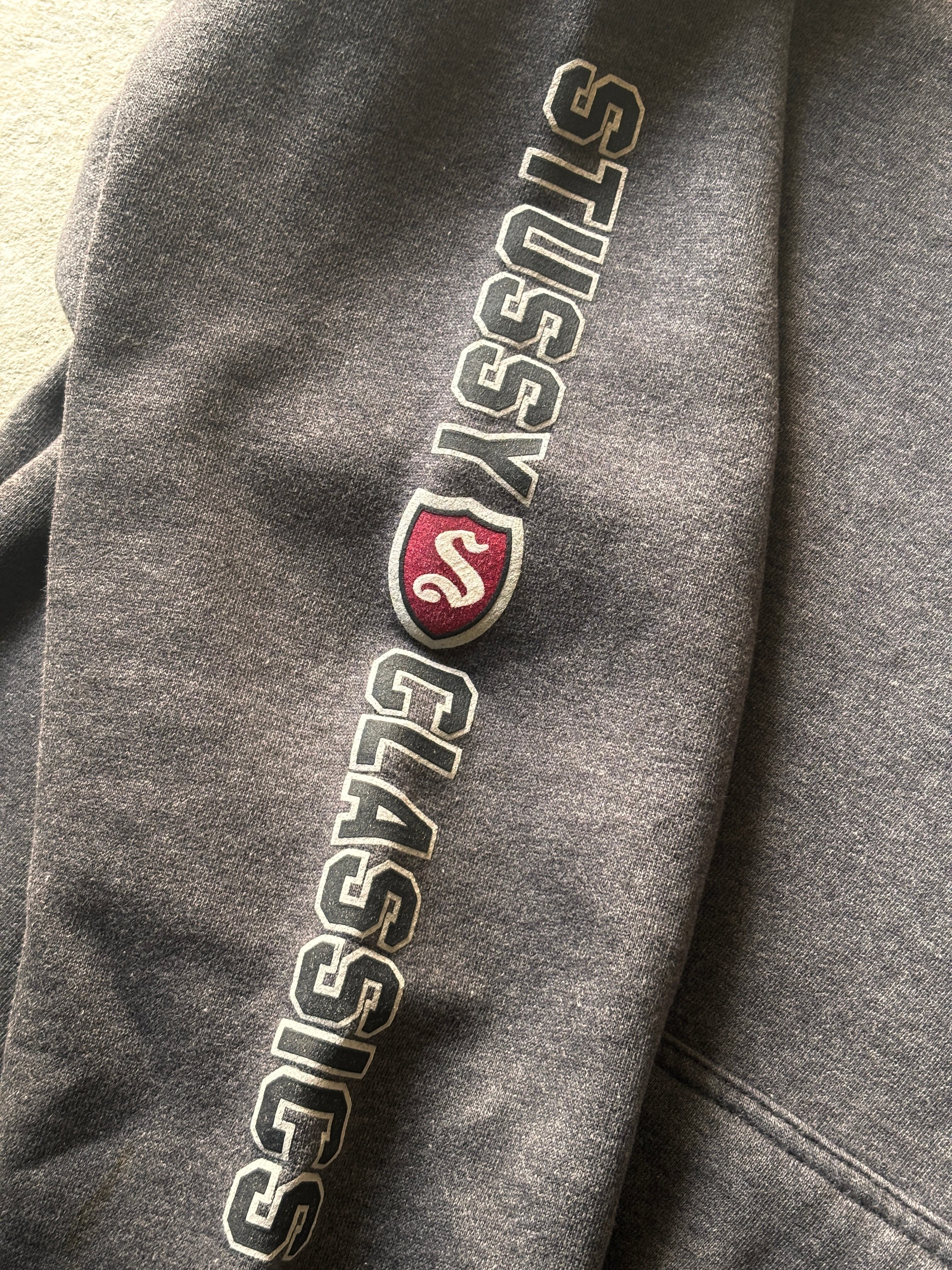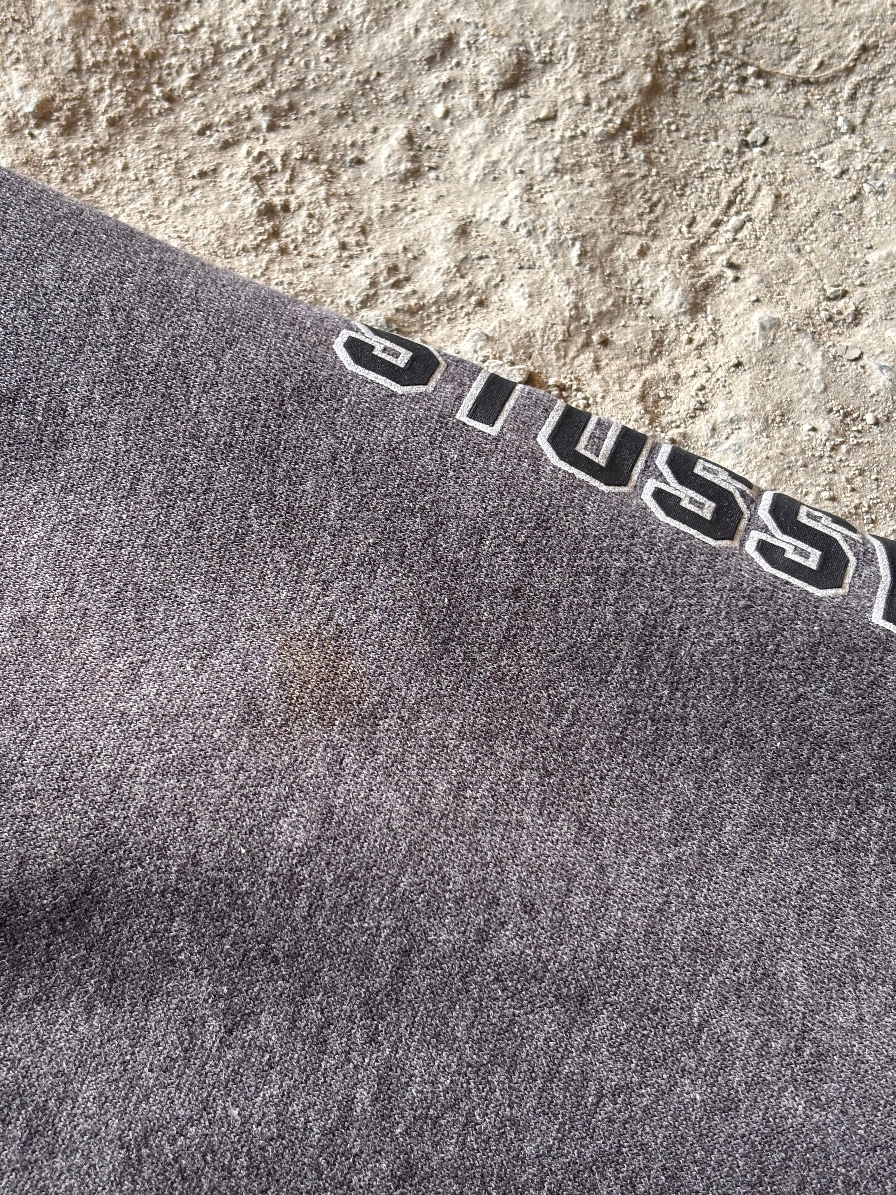 90~00s OLD STUSSY/Logo print Hoodie/紺タグ/L/ロゴプリントフィ-ディ-/パ-カ-/袖プリ/グレ-/ステューシー/オ-ルドステューシー/古着/ア―カイブ