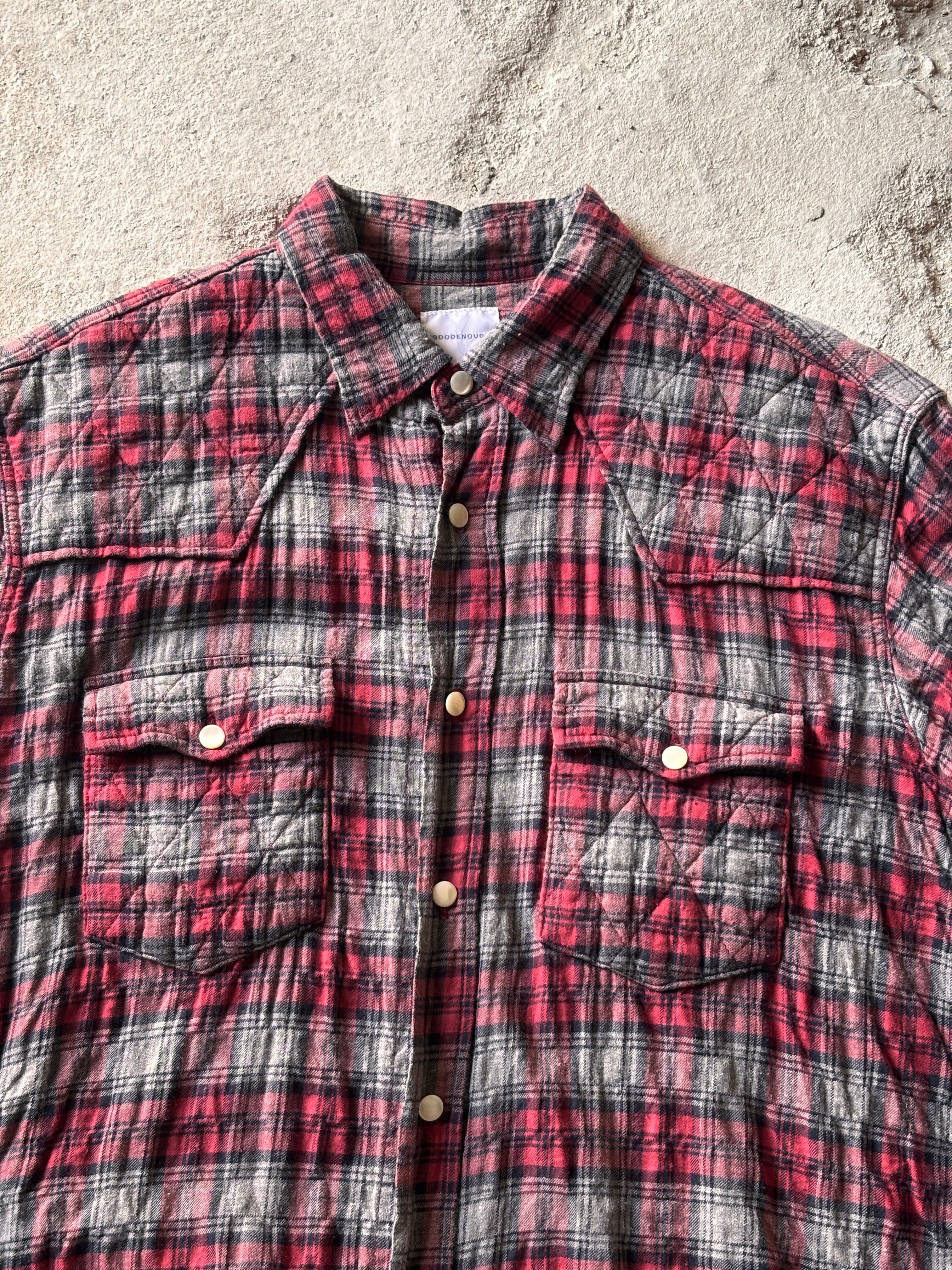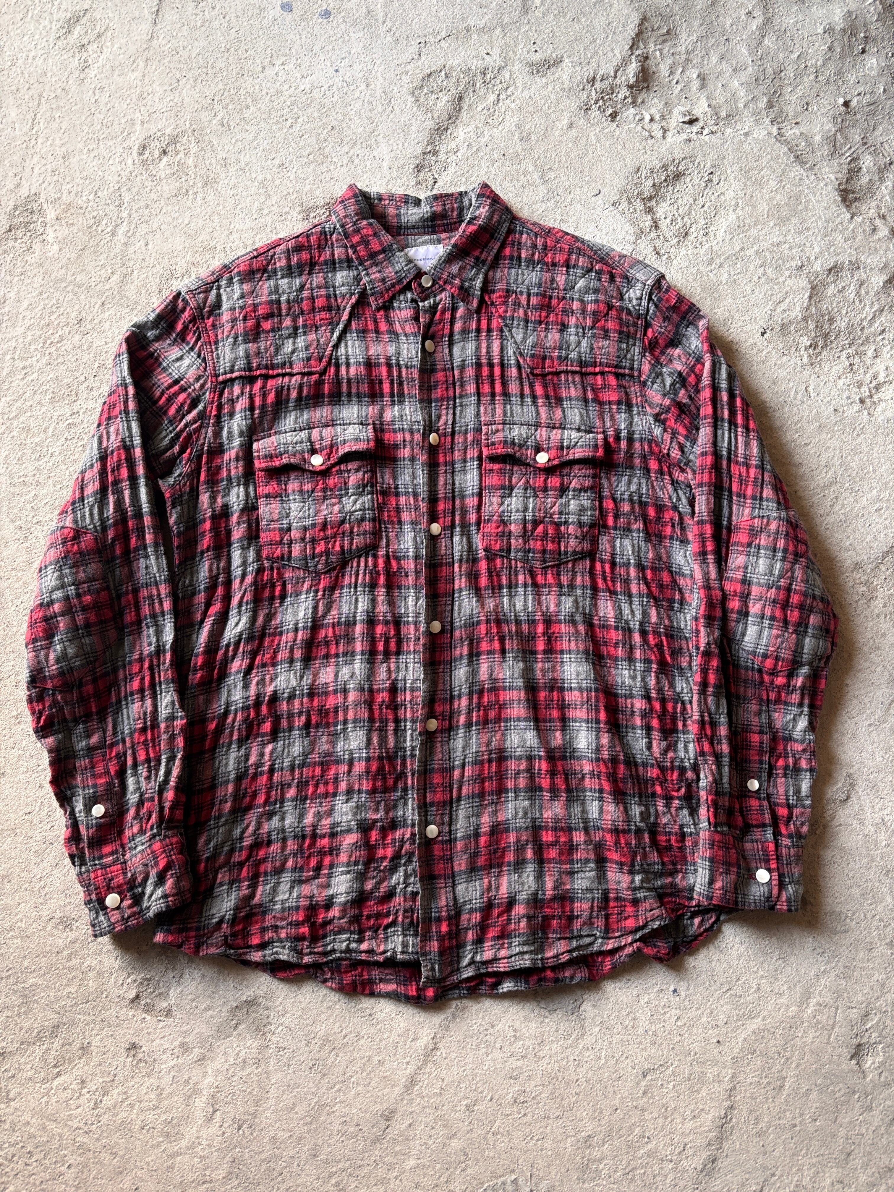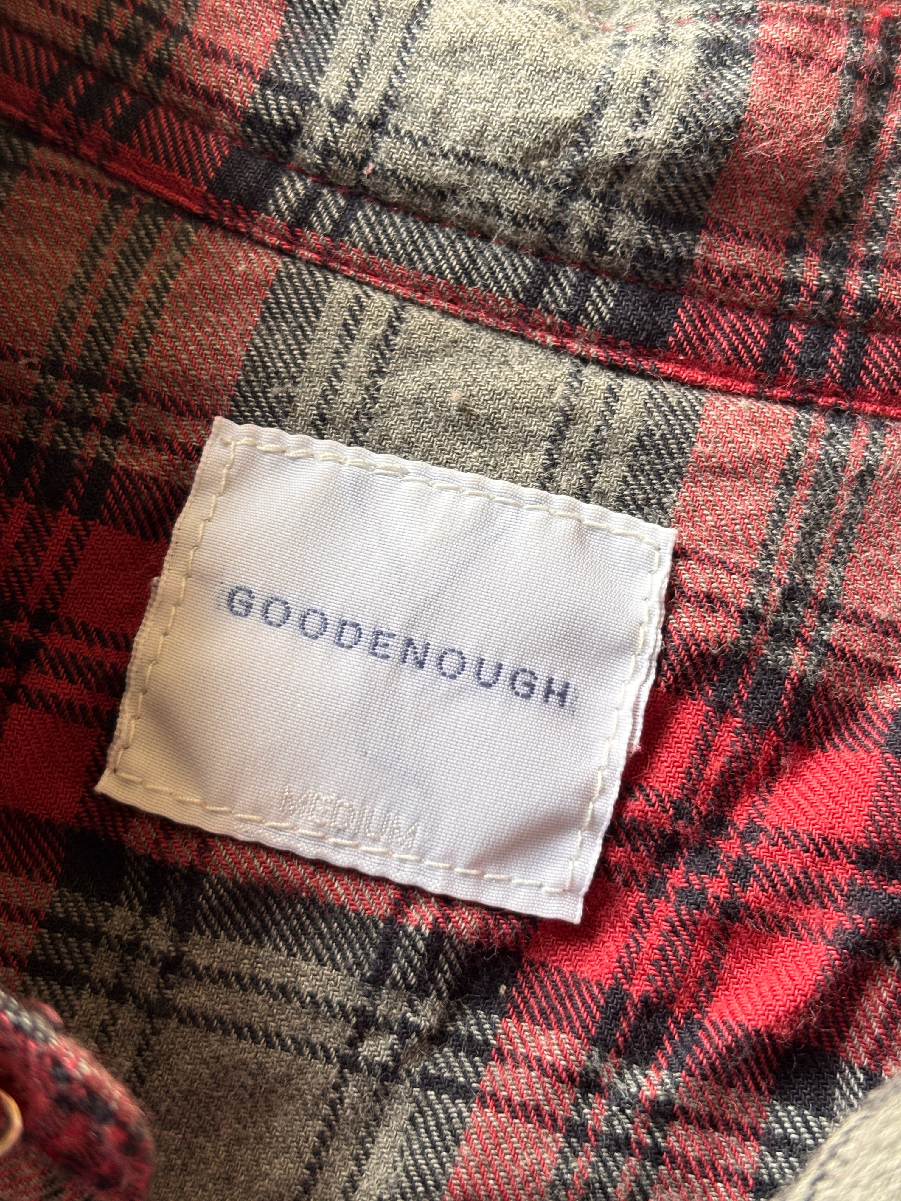 00s GOODENOUGH/Check Flannel Shirt/M/チェック柄ネルシャツ/ウエスタンシャツ/長袖/グレ-/レッド/GDEH/グッドイナフ/裏原/古着/ア―カイブ